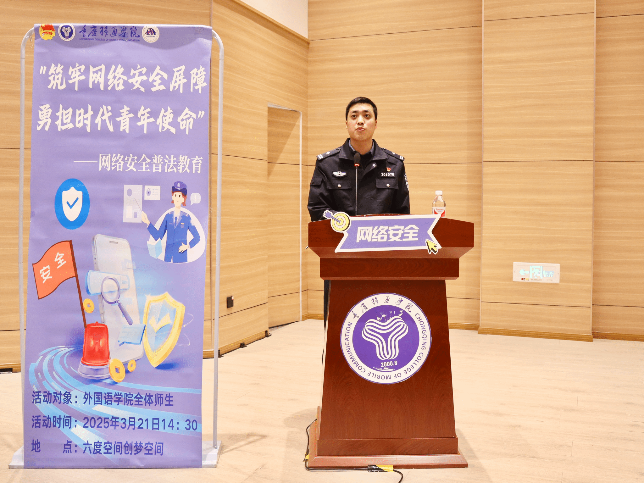 在数字化浪潮席卷的当下,网络深度融入生活,带来便捷与活力的同时,网络安全问题也愈发突出。为提升青年学生网络安全意识,重庆移通学院外国语学院于2025年3月21日14:30在六度空间·创梦空间举办了“灯塔计划第一期辅导员讲党课——筑牢网络安全屏障,勇担时代青年使命”活动,通过多元形式激发青年学子守护网络安全的使命感。
