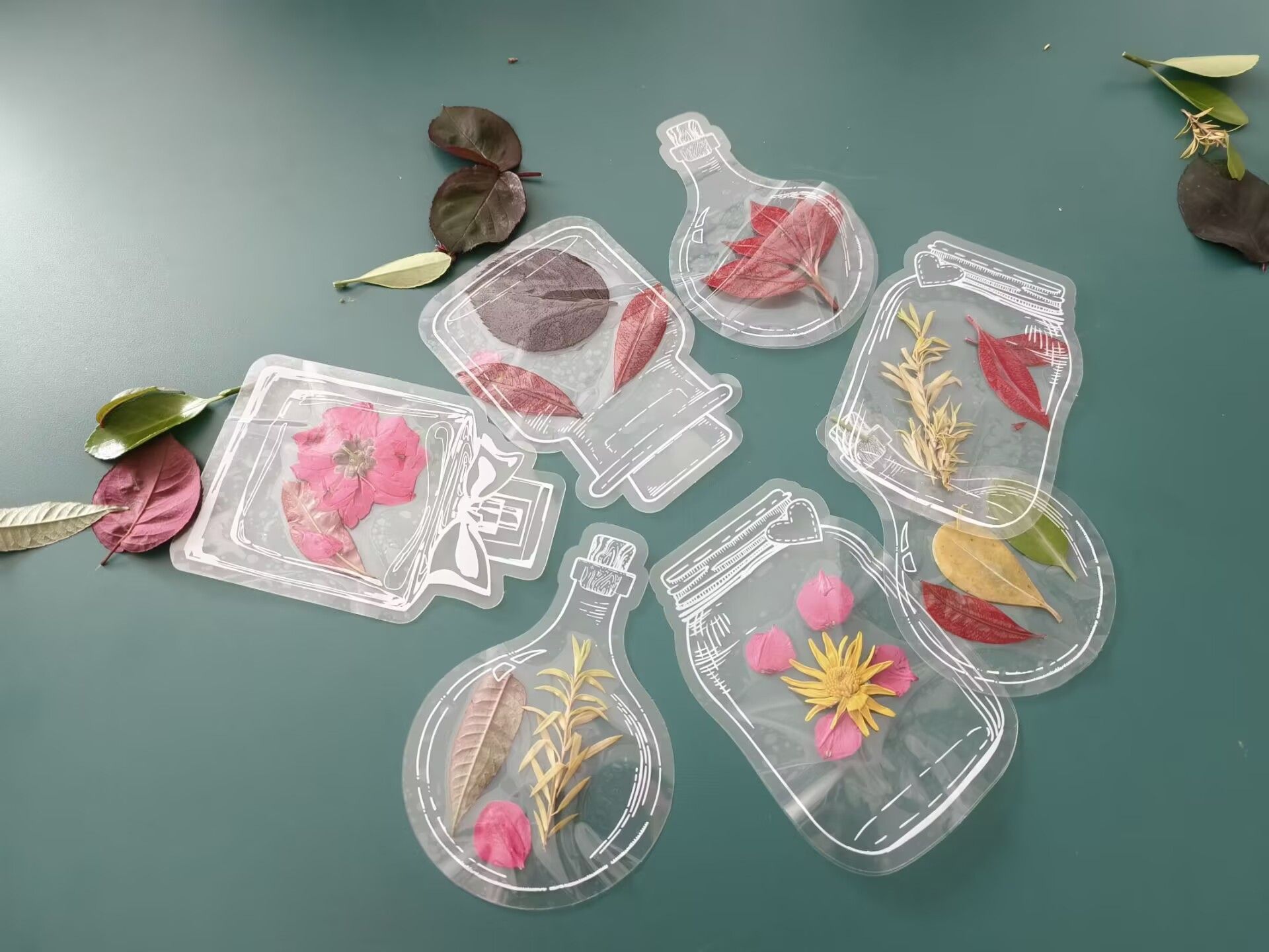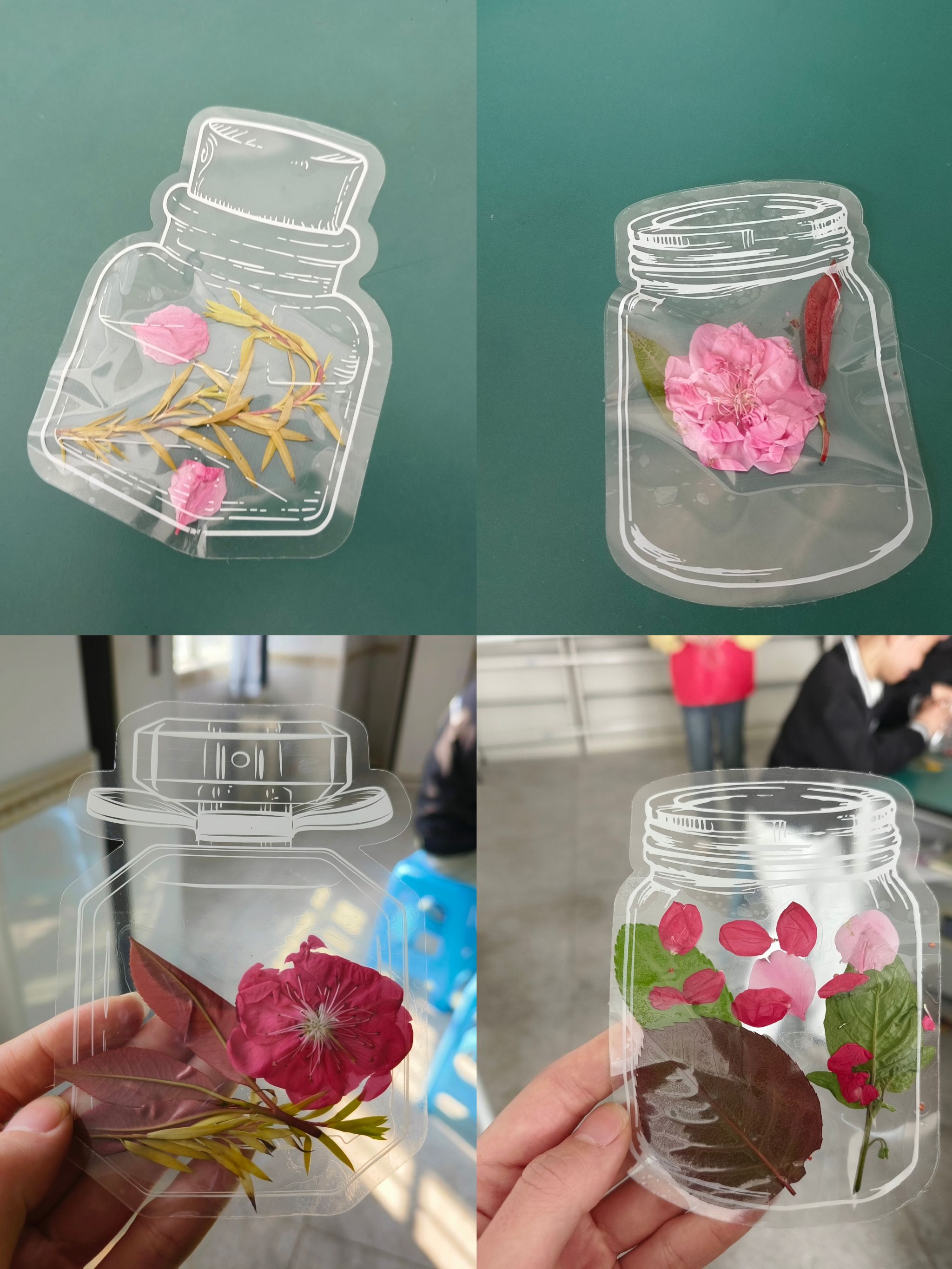 课堂结束后,志愿者与学员们共同利用树叶、花瓣制作精美的透明书签。大家将鲜花和树叶点缀在书签上,创作出精美又独一无二的成品。一张张书签成为学员与志愿者心灵对话的桥梁,也寄托了对未来的美好期许,每一个书签都承载着学生们独特的创意和成就感。在制作过程中,志愿者们也穿梭于各个小组之间,耐心地协助学生们解决遇到的问题。
