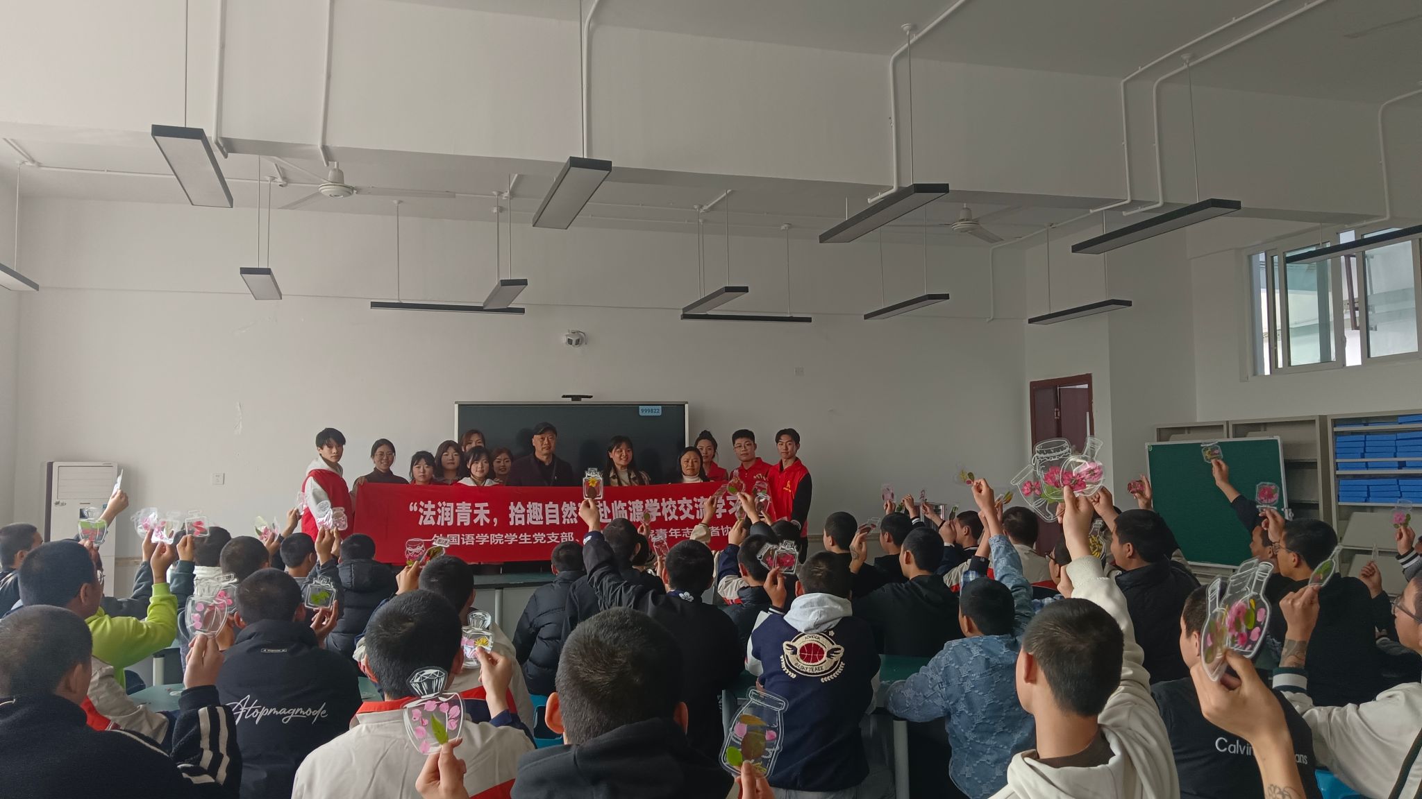 随后,志愿者们以“认识大自然”为主题,为临渡学校的学生们带来了一场生动有趣的英语教学活动。在课堂上,志愿者们巧妙地运用多种教学方法,帮助学员们掌握与大自然相关的基础英语词汇,像“sun”“cloud”“flower”“tree”等。为了让学生们能够正确发音,志愿者们亲自示范,耐心纠正每一个音节,并利用单词卡片让学员们在轻松愉快的氛围中加深记忆。