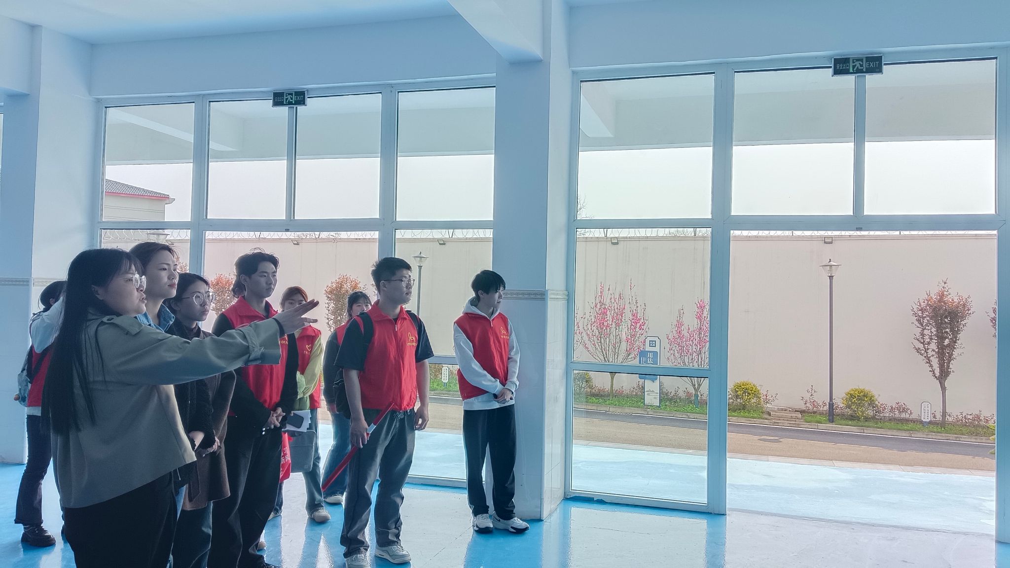 活动伊始,临渡学校的邓副校长热情地带领老师和志愿者们参观了整个学校。步入临渡学校,首先映入眼帘的是高墙铁门,森严的氛围瞬间让大家神情肃穆。在参观过程中,邓老师详细地介绍了学校的基本情况与各项管理规章制度,也解释了学校取名为临渡的含义。“半步临渊谁渡我,一朝展翅志凌云”,在临渡学校就读的孩子们,在半步临渊时得以继续接受教育,得到教化,让他们懂得一时犯错并不会决定一生,只要及时止步改正,也一样能拥有天高任鸟飞、海阔凭鱼跃的美好前程。同时,充满创意的文化墙和整洁有序的教学环境给志愿者们也留下了深刻的印象。