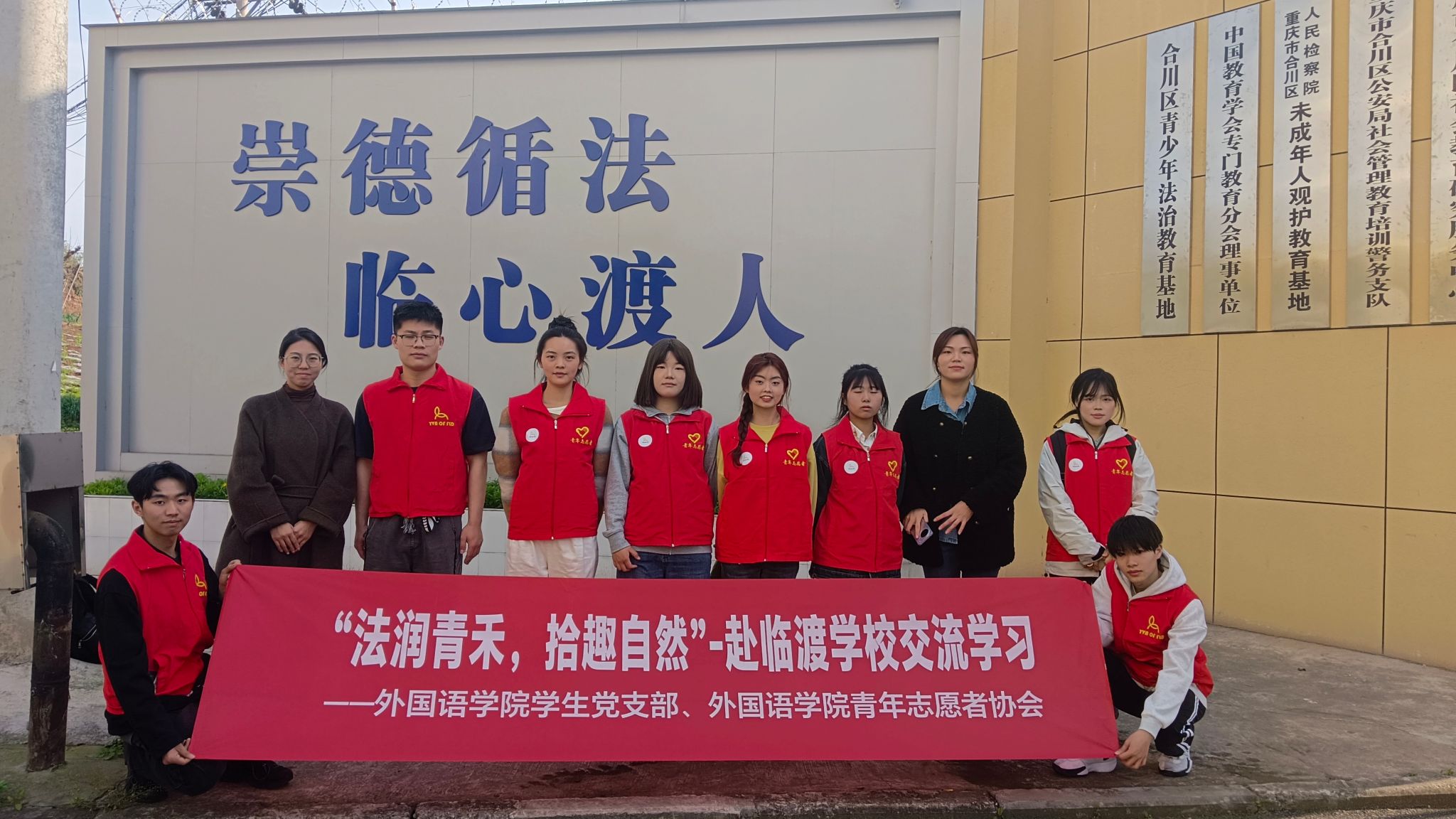 为深入贯彻落实法治教育精神,强化大学生法治观念,同时助力失足青少年重塑人生信念,2025年3月23日,重庆移通学院外国语学院学生党支部联合外国语学院青年志愿者协会前往合川临渡学校开展了本次“法润青禾,拾趣自然”普法教育暨志愿服务活动。本次活动通过法治宣讲、志愿服务与互动交流相结合的形式,与临渡学校的学员们共同开启了一段充满趣味与知识的治愈之旅。