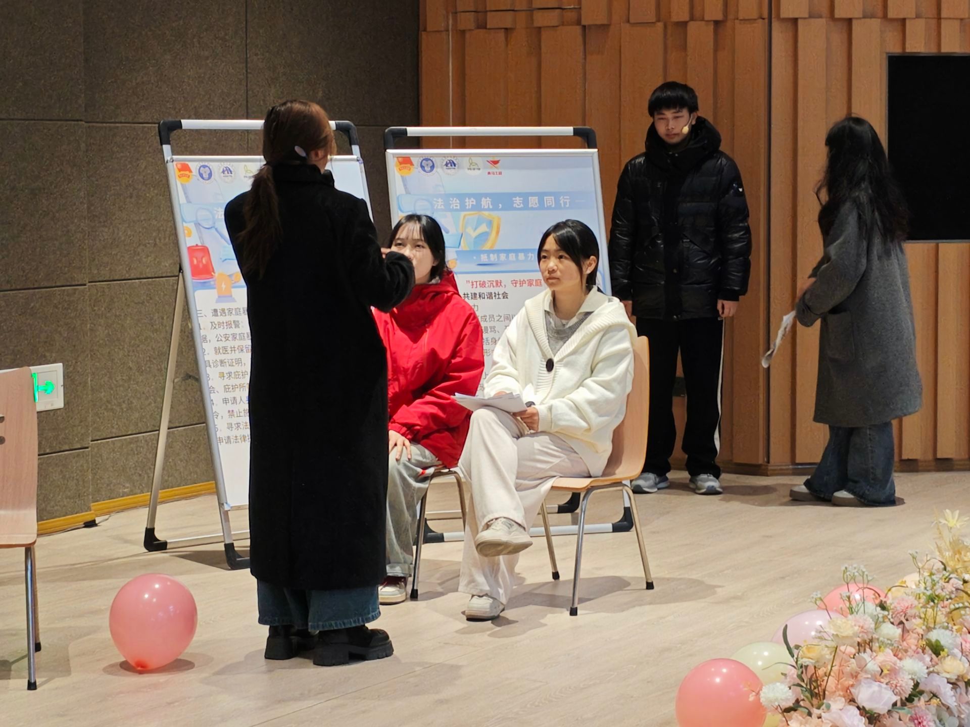 致力于让同学们更好地理解,现场还特别开展现场情景演绎和模拟法庭环节。志愿者依据《中华人民共和国反家庭暴力法》,模拟家庭暴力案件的审理过程,清晰阐释受害者可采取的法律途径,这让大家直观地认识到,法律是保护自己的有力武器,家庭暴力绝不是“家务事”,而是违法行为。