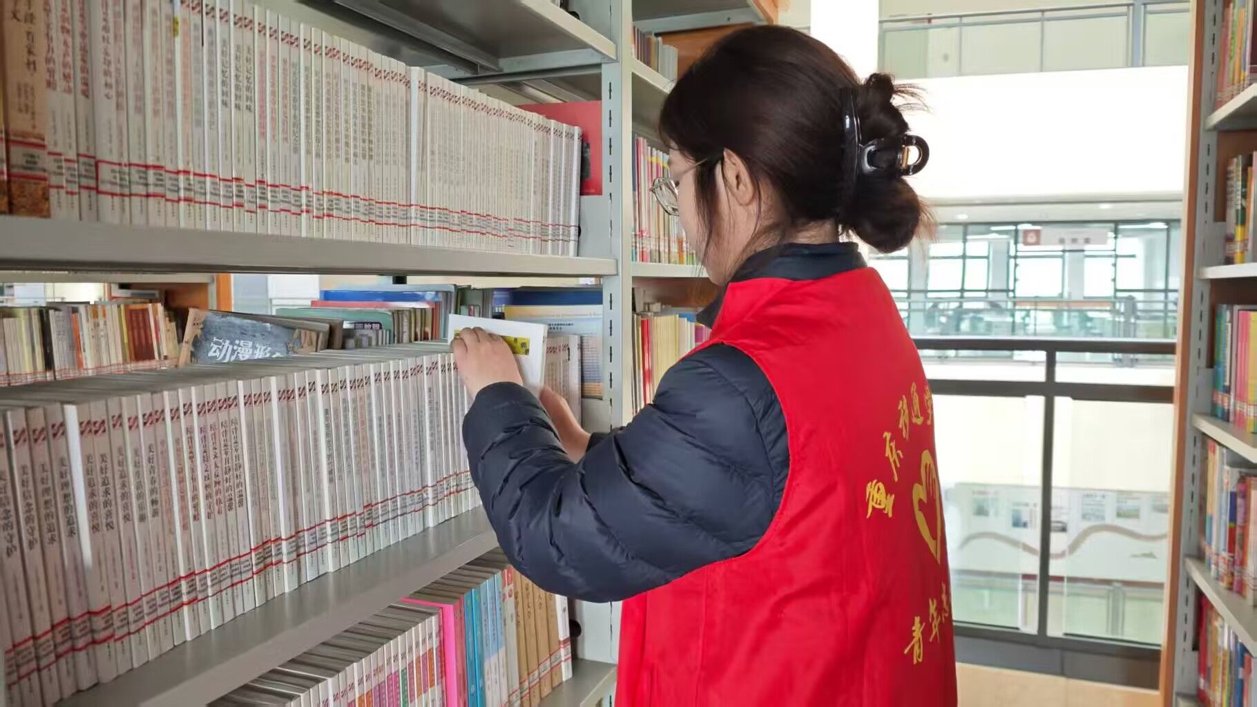 活动伊始,志愿者们在图书馆工作人员指导下有条不紊地投入到整理工作中,志愿者们分工明确让整个图书馆焕然一新。即使归位工作频繁且复杂,但大家都凭借着耐心与毅力逐一克服各种困难。在儿童阅读区域,志愿者们以亲切友好的姿态与小朋友们互动,耐心细致地给小朋友们答疑解惑,为志愿服务增添温馨与乐趣。志愿者在图书馆的整理图书工作中起到不可或缺的作用,为社会营造更加便捷、舒适的借阅环境。