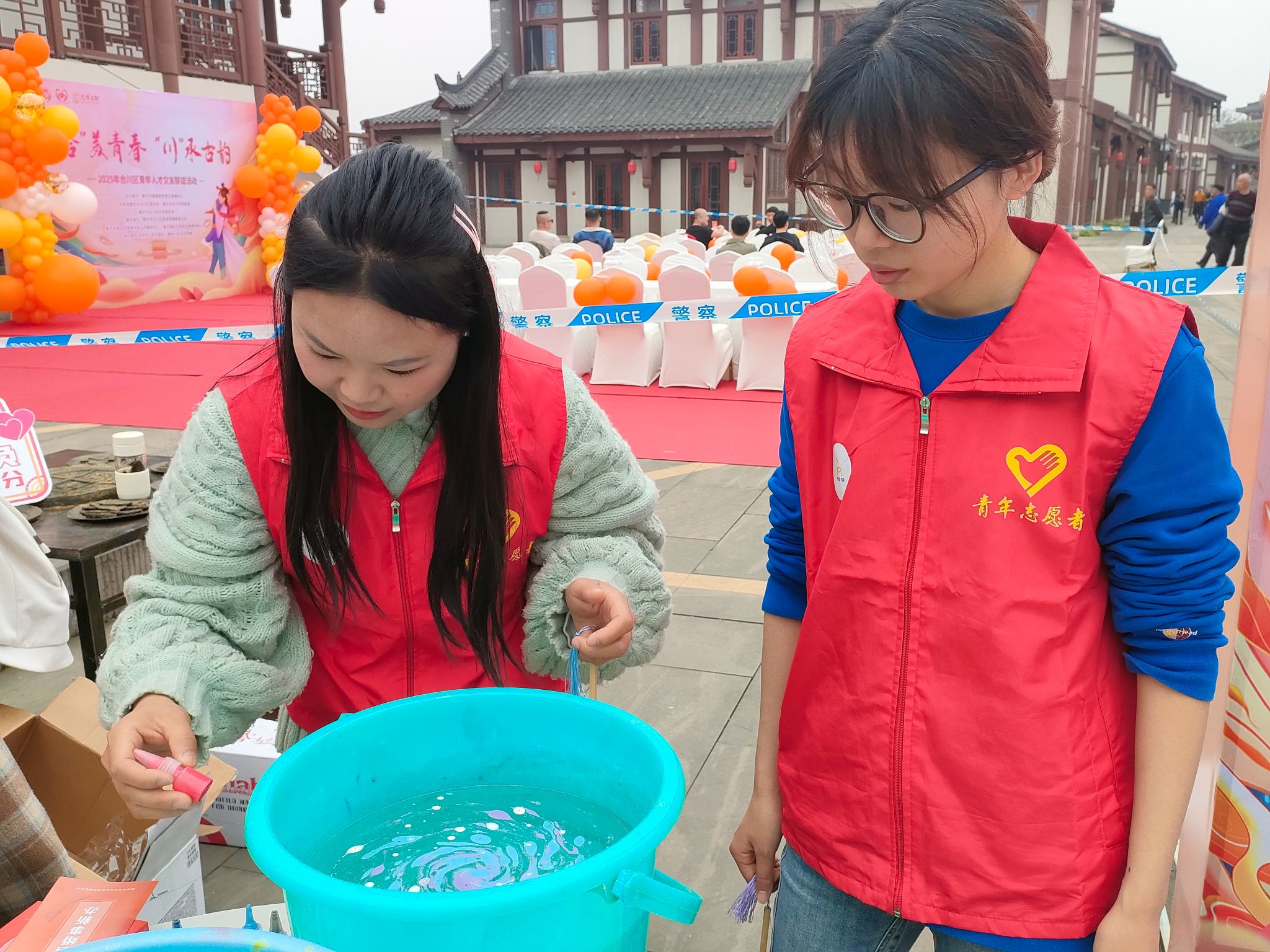 暮春三月的合川文峰古街,黛瓦飞檐浸润千年文脉,重庆移通学院外国语学院青年志愿者协会携手合川民政局,于4月6日开展一场别开生面的志愿活动。60位才俊身着锦绣,执漆扇、挑明灯,于三江交汇处共谱鸾凤佳话。活动以漆艺为媒、古韵为凭,让青年才彦在非遗传承中缔结良缘,为“青年发展型城市”建设注入文化清流。