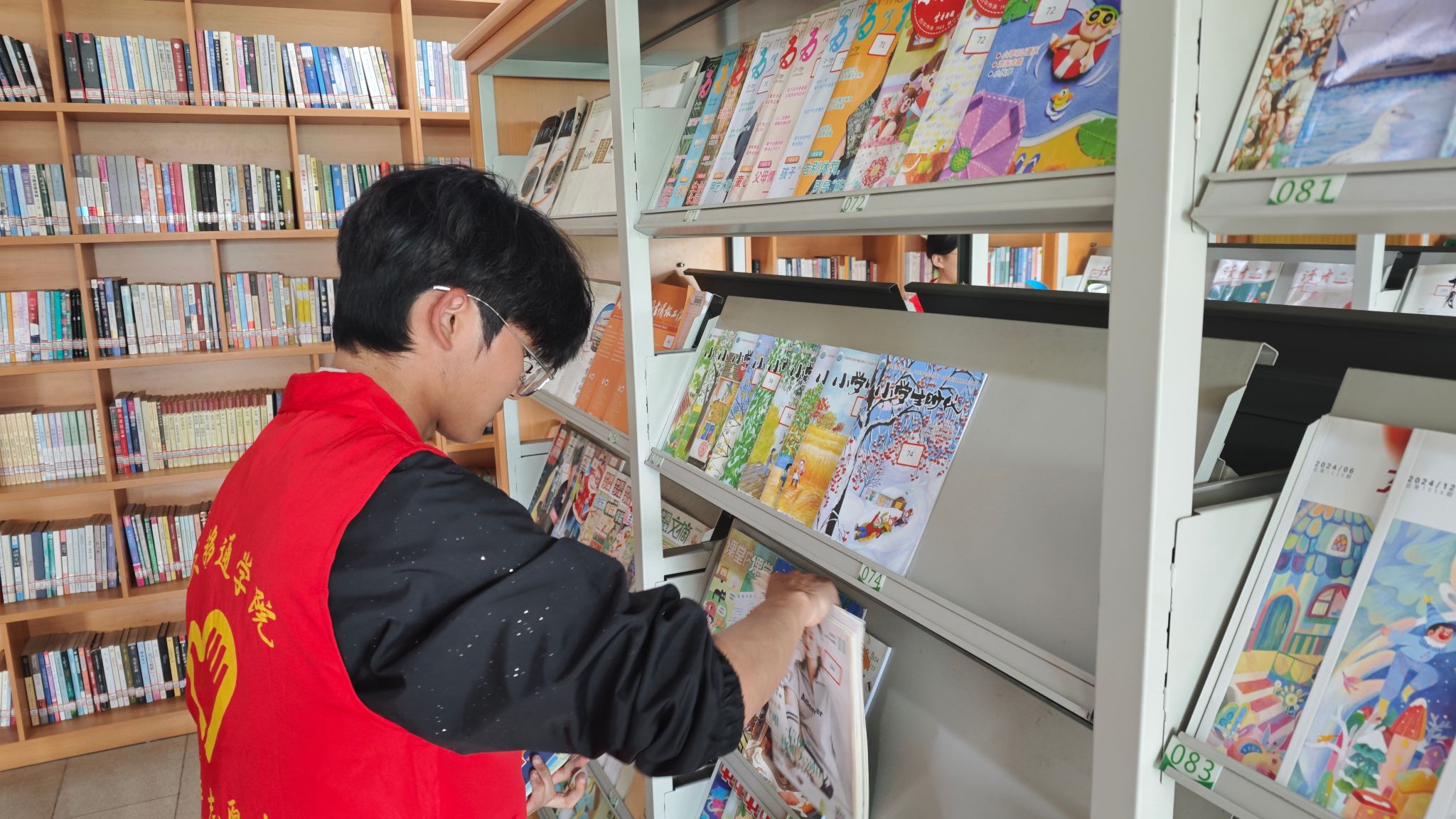 活动伊始,图书馆工作人员向志愿者们详细讲解图书分类规则与整理流程,大家迅速分组投入到紧张有序的工作中。志愿者们分工明确让整个图书馆焕然一新。即使归位工作频繁且复杂,但大家都凭借着耐心与毅力逐一克服各种困难。在儿童阅读区域,志愿者们以邻家哥哥姐姐的形象与小朋友们积极互动,耐心且准确地解答小朋友们提出的每一个疑问,为志愿服务活动增添温暖与欢乐。志愿者在图书馆的整理图书工作中起到不可或缺的作用,为社会营造更加便捷、舒适的借阅环境。