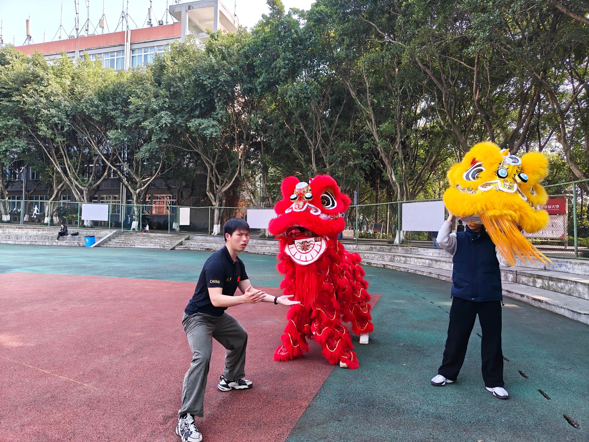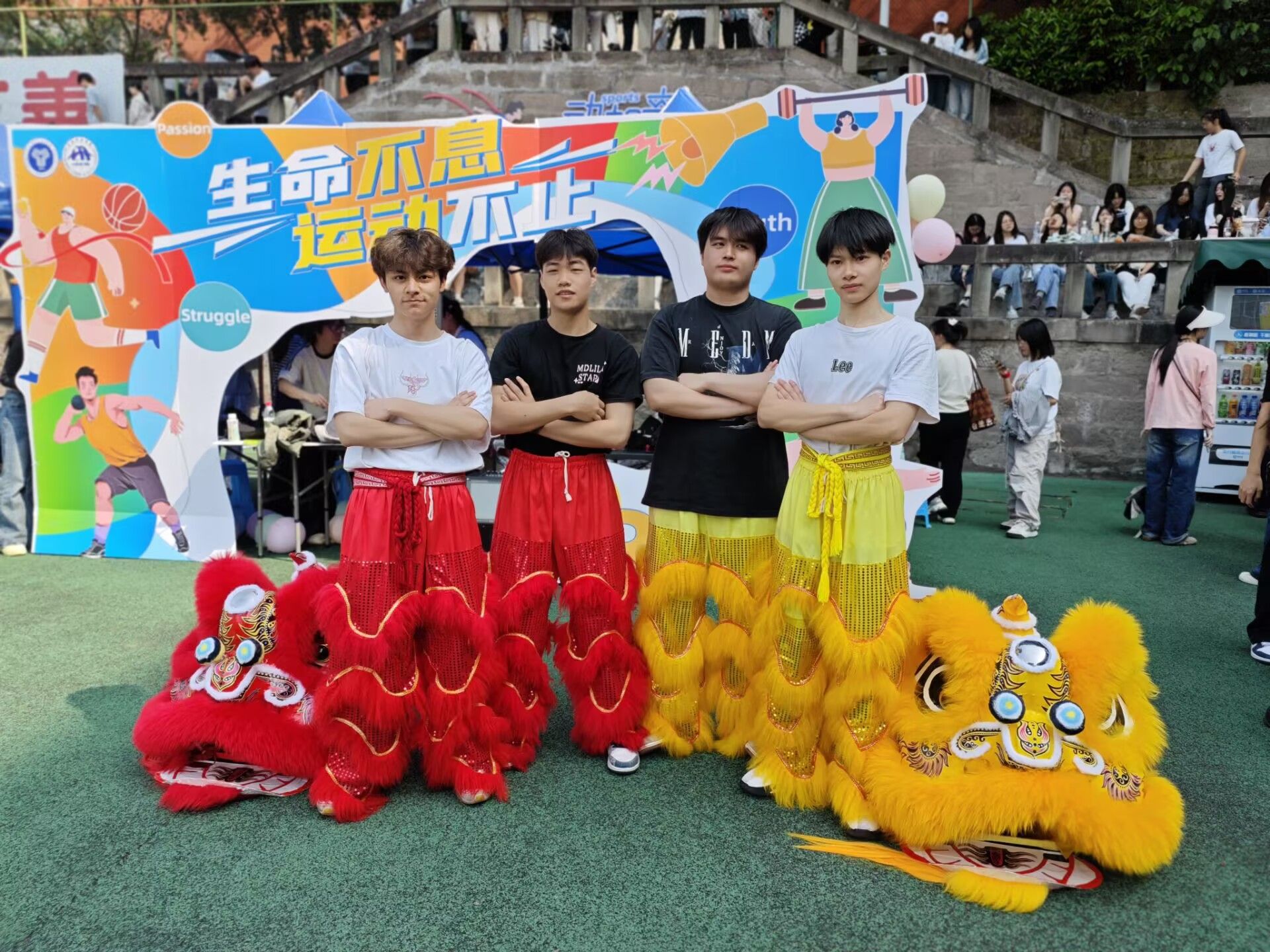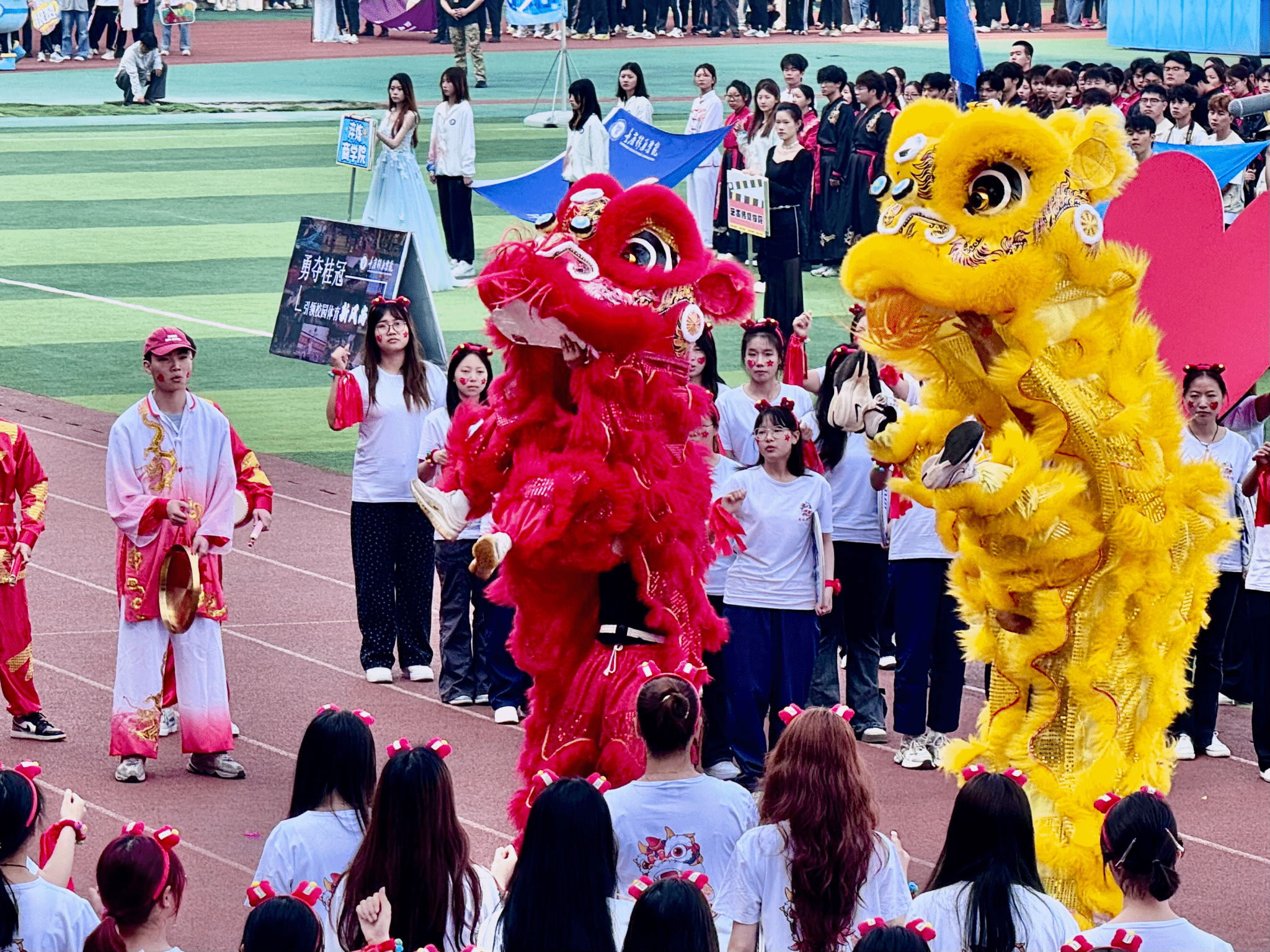 当鼓点划破晨雾,当鎏金狮头昂首云霄。在大学校园的多彩生活中,总有一些经历如璀璨星辰,镶嵌在我们的记忆长河中。在本届运动会中,来自外国语学院2023级英语1班的王庆航与2023级德语1班的李乾坤、李薪金、胡博宇为大家献上了精彩的舞狮表演,让舞狮这一传统文化在校园里绽放出别样绚烂的光彩。