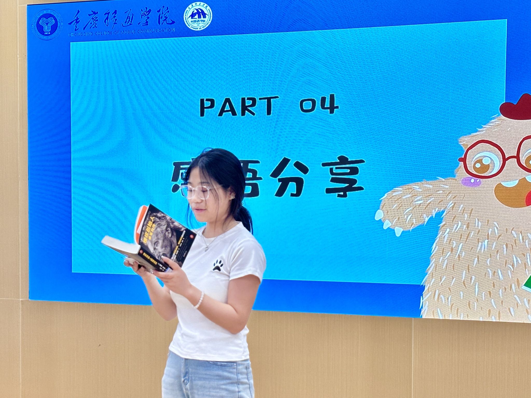 如果说抢答是思维的速跑,那么主动分享环节便是思想的漫步。几位同学自告奋勇,登上讲台诉说阅读带来的心灵震荡。第一位分享者手捧《维珍创始人亲笔自传》,以理查德·布兰森的传奇经历为引:“‘如果你有一个疯狂的想法,那就立刻去做’,真正的创新,始于打破‘不可能’的勇气。”第二位同学带着《Shoe Dog》登上讲台,“所有伟大,都始于微不足道的开始,成于日复一日的坚持。”最后登场的分享者捧着《一个广告人的自白》,她谈道:“作为外语学习者,跨越文化鸿沟的关键,正是像奥格威那样‘深入理解受众,用他们的语言讲好故事’。”