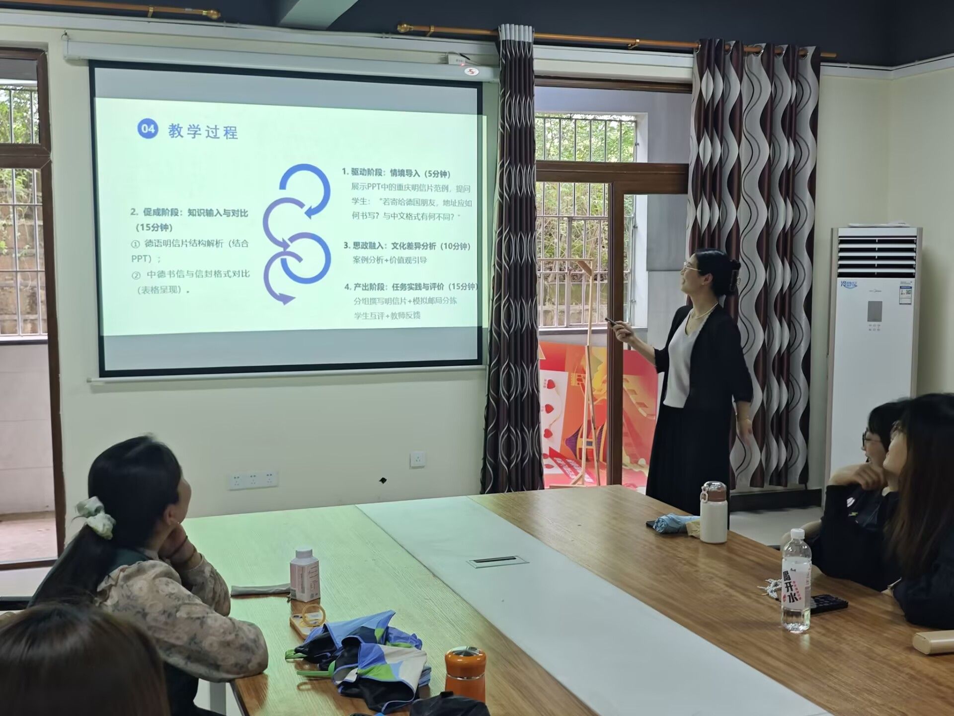 为深入贯彻《重庆移通学院“教育教学三提三创”主题年活动方案》(移通[2025]78号)以及《重庆移通学院教师磨课工作实施方案》(移通[2024]391号)文件要求,外国语学院德语专业教研室于4月16日在荷悦112会议室成功举办“以说促研,以研促教”主题说课活动。活动由教研室主任熊光源主持,全体德语教师参与。作为学院磨课系列活动重要环节,本次活动旨在通过教学研讨提升育人实效,为培养复合型应用人才蓄力赋能。