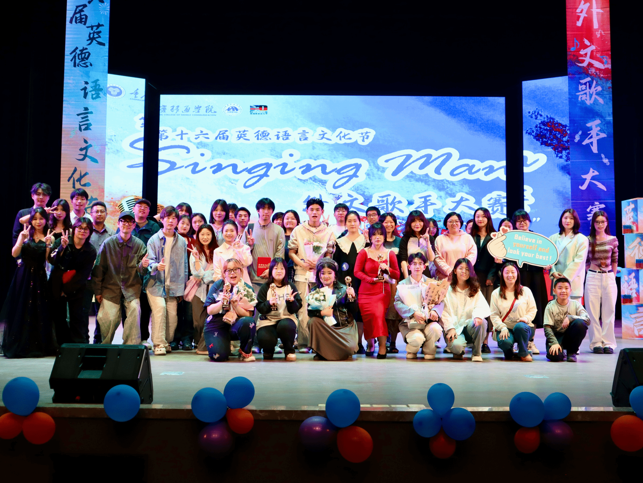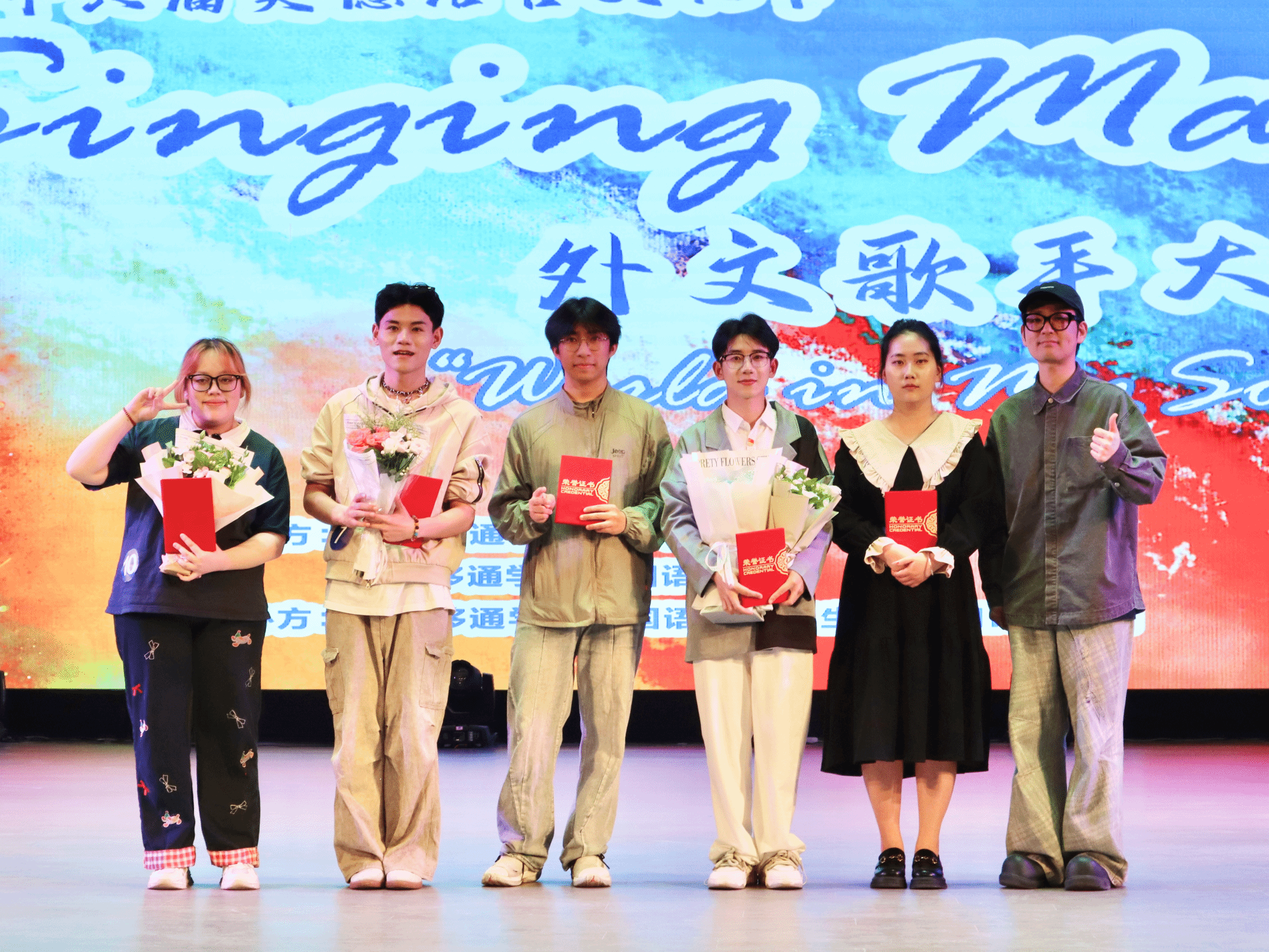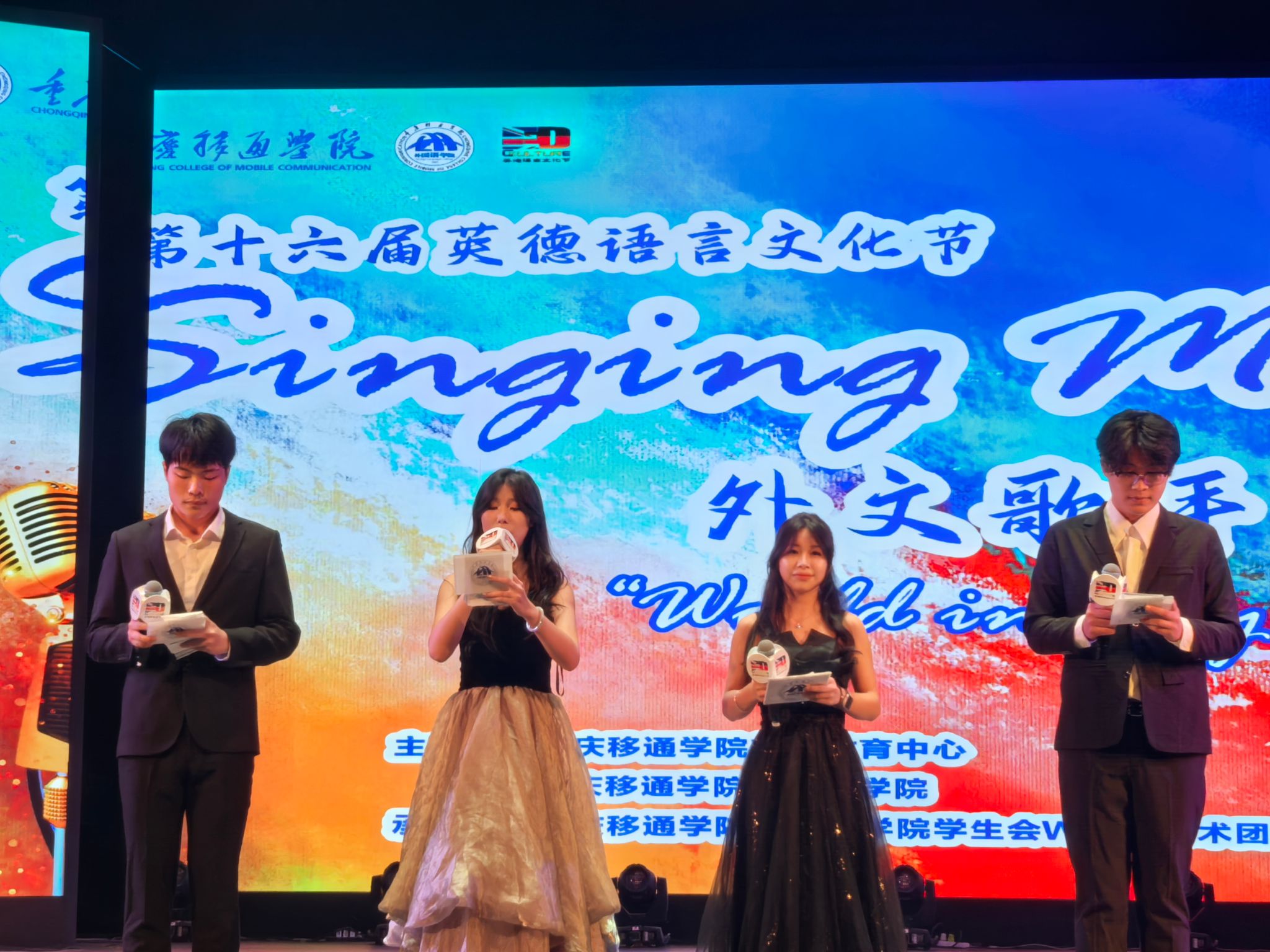 4月25日晚,重庆移通学院第十六届英德语言文化节之“Singing Man”外文歌手大赛在缤果大剧院落下帷幕。从青春洋溢的舞蹈开场,到紧张激烈的三轮竞演;从观众席即兴迸发的互动火花,到往届冠军的温情返场——这场持续近两小时的沉浸式音乐盛宴,不仅展现了移通学子的音乐技艺,更是文化交流的青春盛会。
