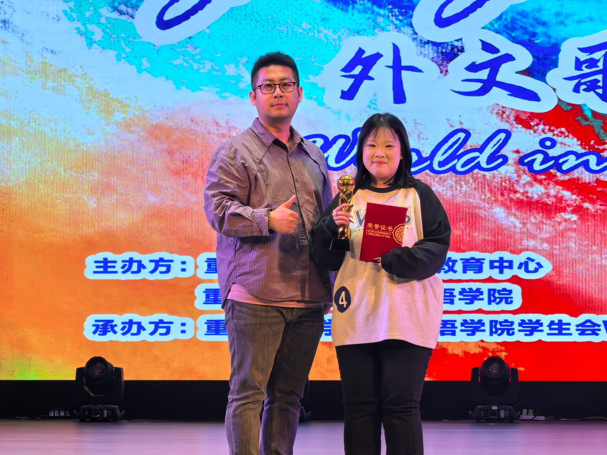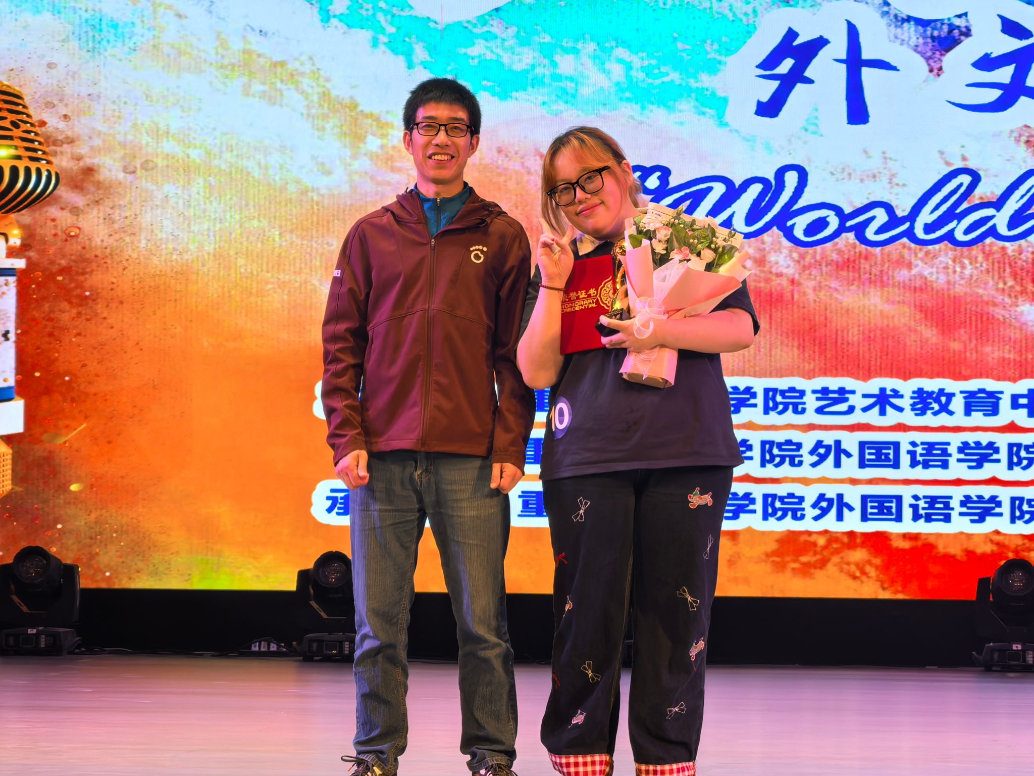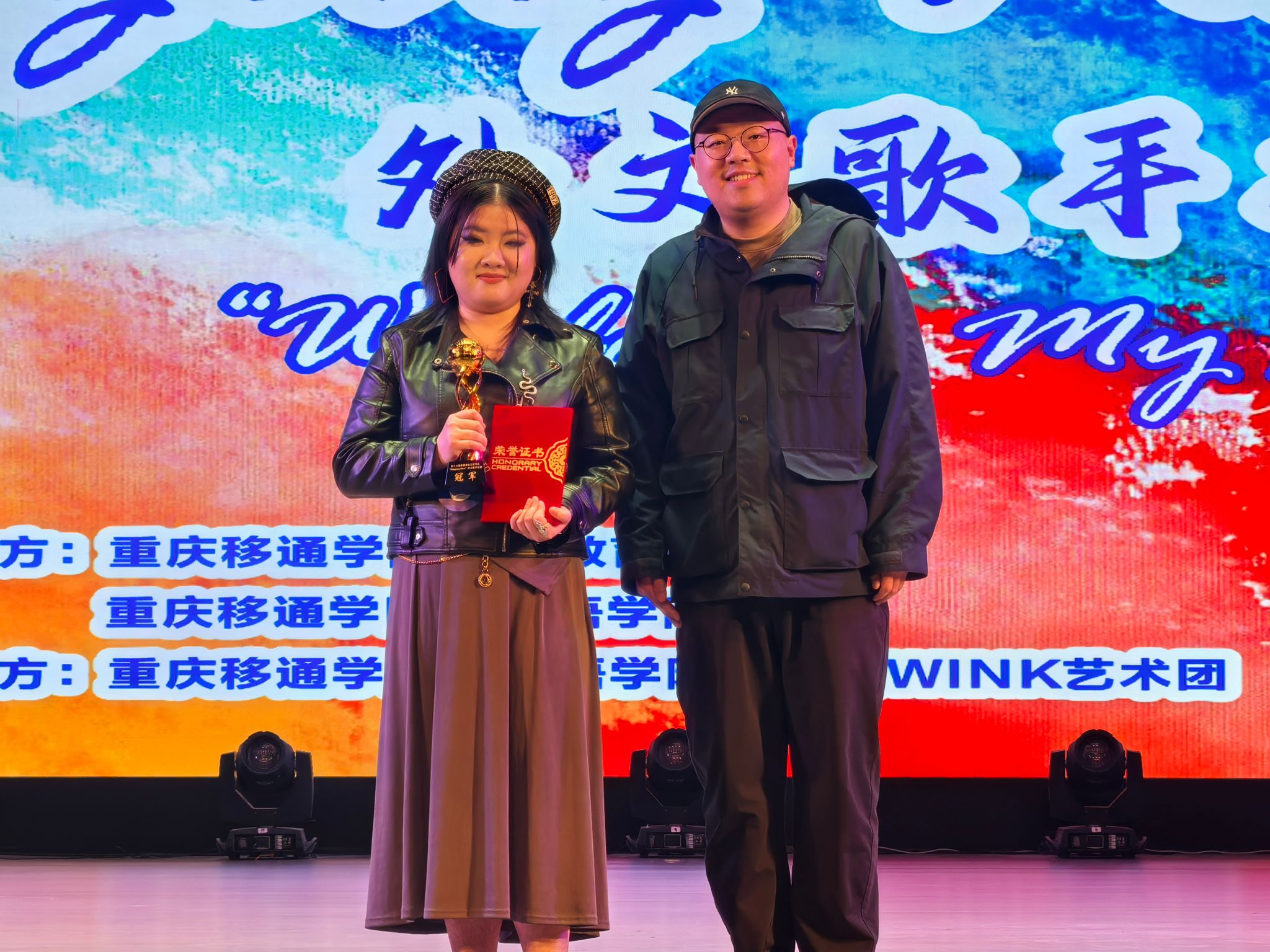 4月25日晚,重庆移通学院第十六届英德语言文化节之“Singing Man”外文歌手大赛在缤果大剧院落下帷幕。从青春洋溢的舞蹈开场,到紧张激烈的三轮竞演;从观众席即兴迸发的互动火花,到往届冠军的温情返场——这场持续近两小时的沉浸式音乐盛宴,不仅展现了移通学子的音乐技艺,更是文化交流的青春盛会。