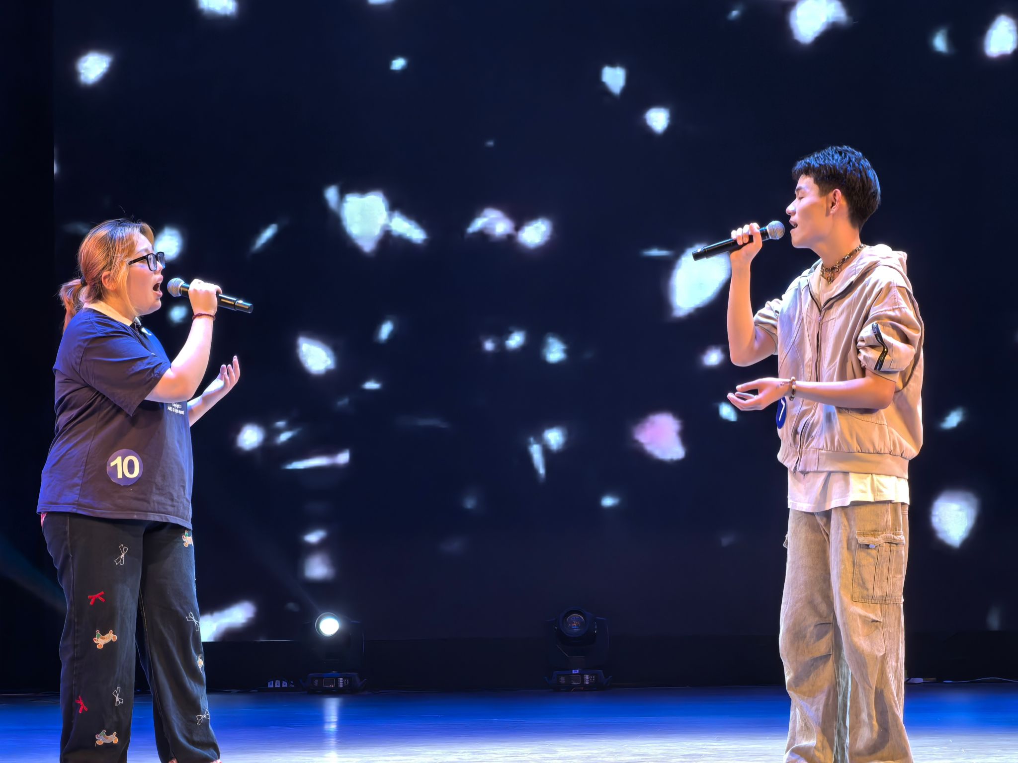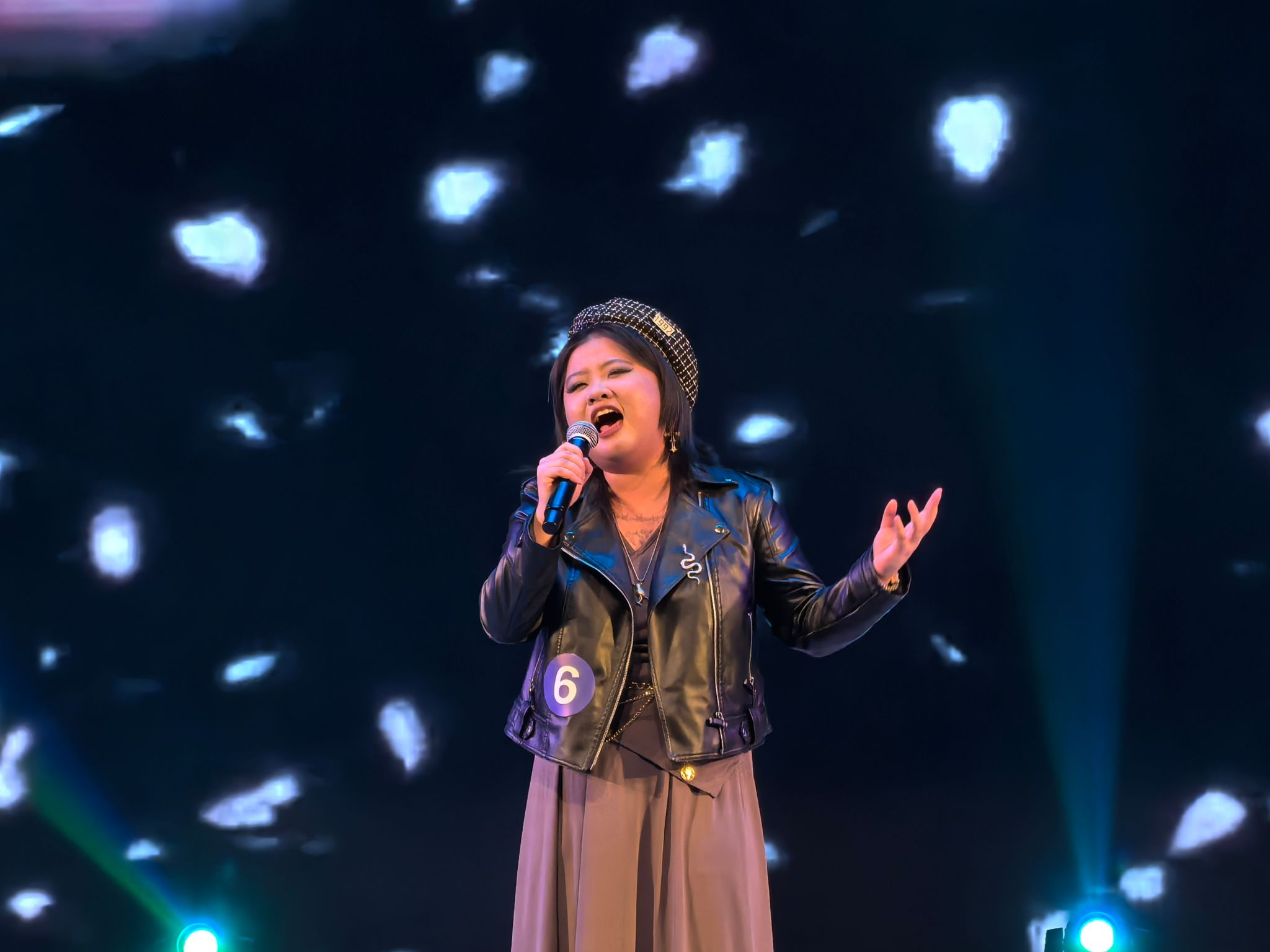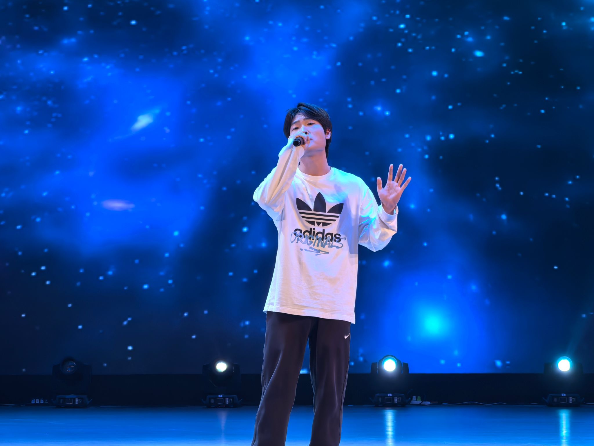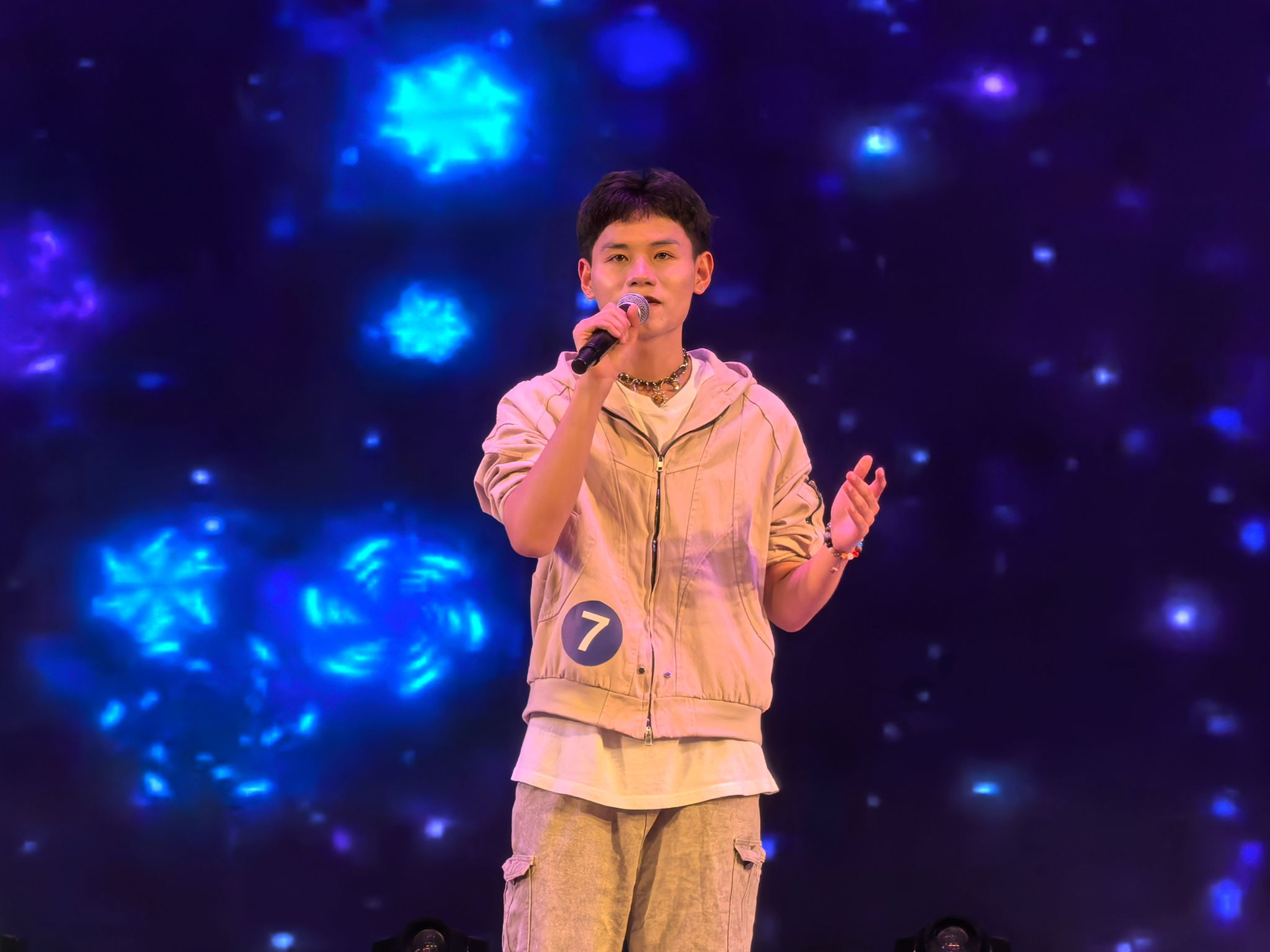 三强争夺战中,潘秋洁以《All by Myself》展现情感张力,高潮部分的长音如银河倾泻;雷轩逸将原创改编《叹息》与电子乐融合,构建出迷幻声场;祝星怡借《The Way I Still Love You》的爆发力点燃全场。观众席的荧光棒随节奏起伏,织就一片流动的星海。