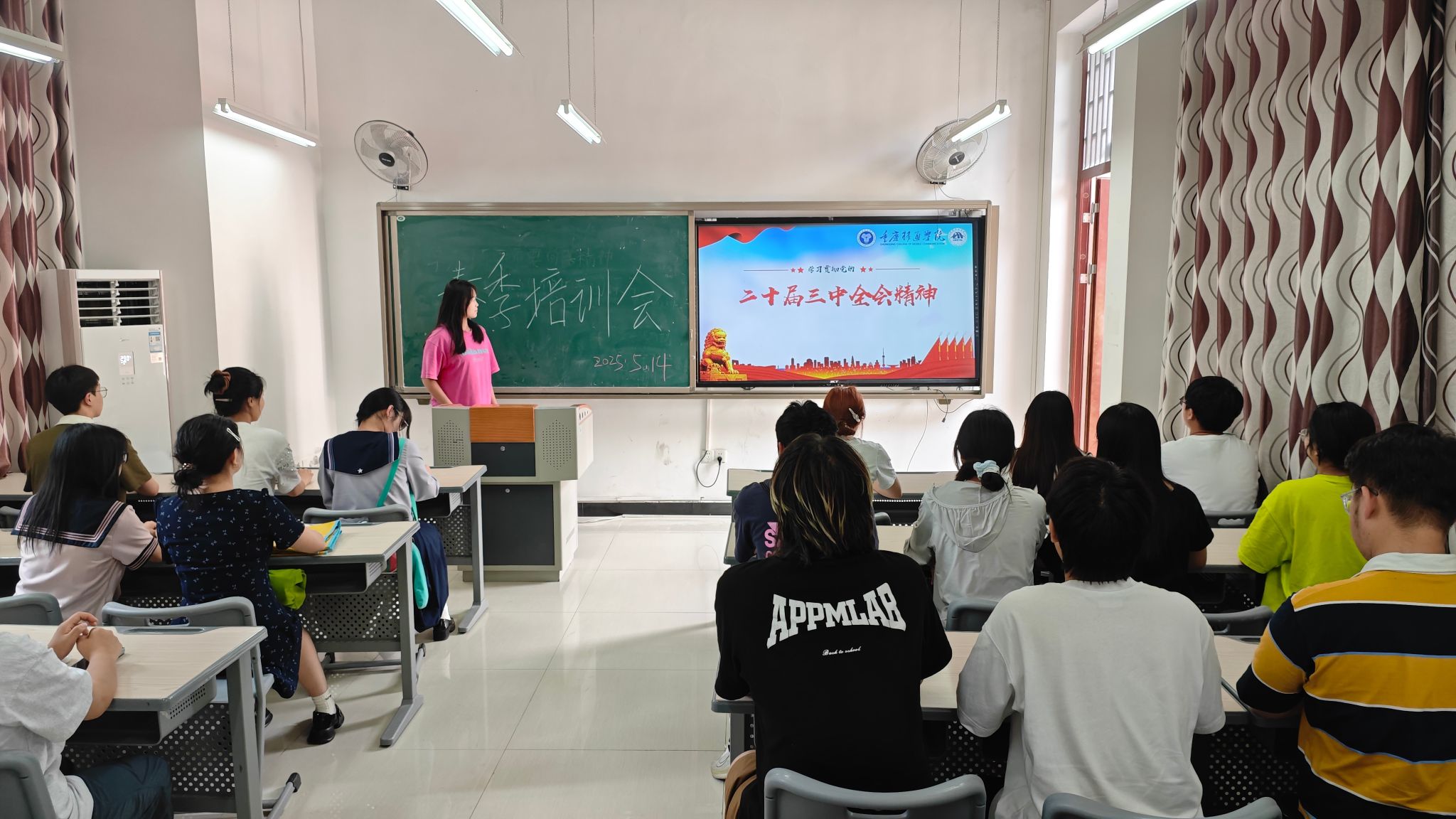 5月13日,外国语学院学生会在天渠书院开展2025年春季培训会,据统计本次会议约有50名代表参与培训。培训以“思想铸魂、能力赋能、实践增效”为主线,融合党的二十届三中全会精神学习、大学生就业指导、心理健康教育及实践活动交流四大板块,依托学校“四位一体双院制”人才培养模式,旨在通过理论学习与实践结合提升学生综合素质,强化思想引领与就业心理建设,展现了双院制下学生自主策划、自我管理的创新活力,为深化书院与学院协同育人、探索实践育人新路径提供了生动范例。