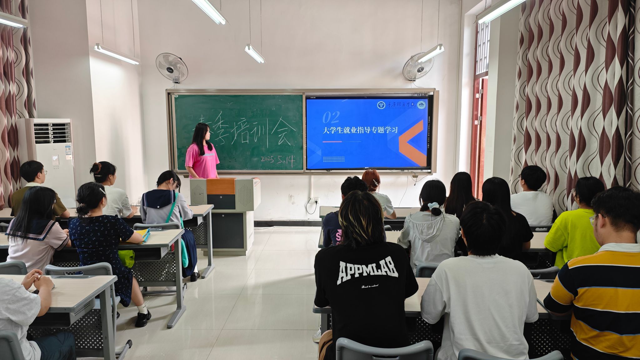 培训会以党的二十届三中全会精神专题学习为开篇,聚焦“进一步全面深化改革、推进中国式现代化”的战略部署。学生代表通过分组研讨、案例剖析,深入探讨如何将国家战略转化为职业发展动力,例如结合“一带一路”倡议分析外语人才的国际视野培养路径,强化“家国情怀”与“专业使命”的双重意识。通过“青年说”微论坛形式,学生自主设计互动环节,将政策学习融入专业教育,形成“理论学习—案例分析—实践转化”的闭环思维训练。针对2025届毕业生需求,培训会推出“政策解读+技能实训+资源对接”三位一体就业指导方案。外国语学院也开展书院导师一对一职业规划咨询,将就业指导融入书院生活,实现服务的个性化与常态化。