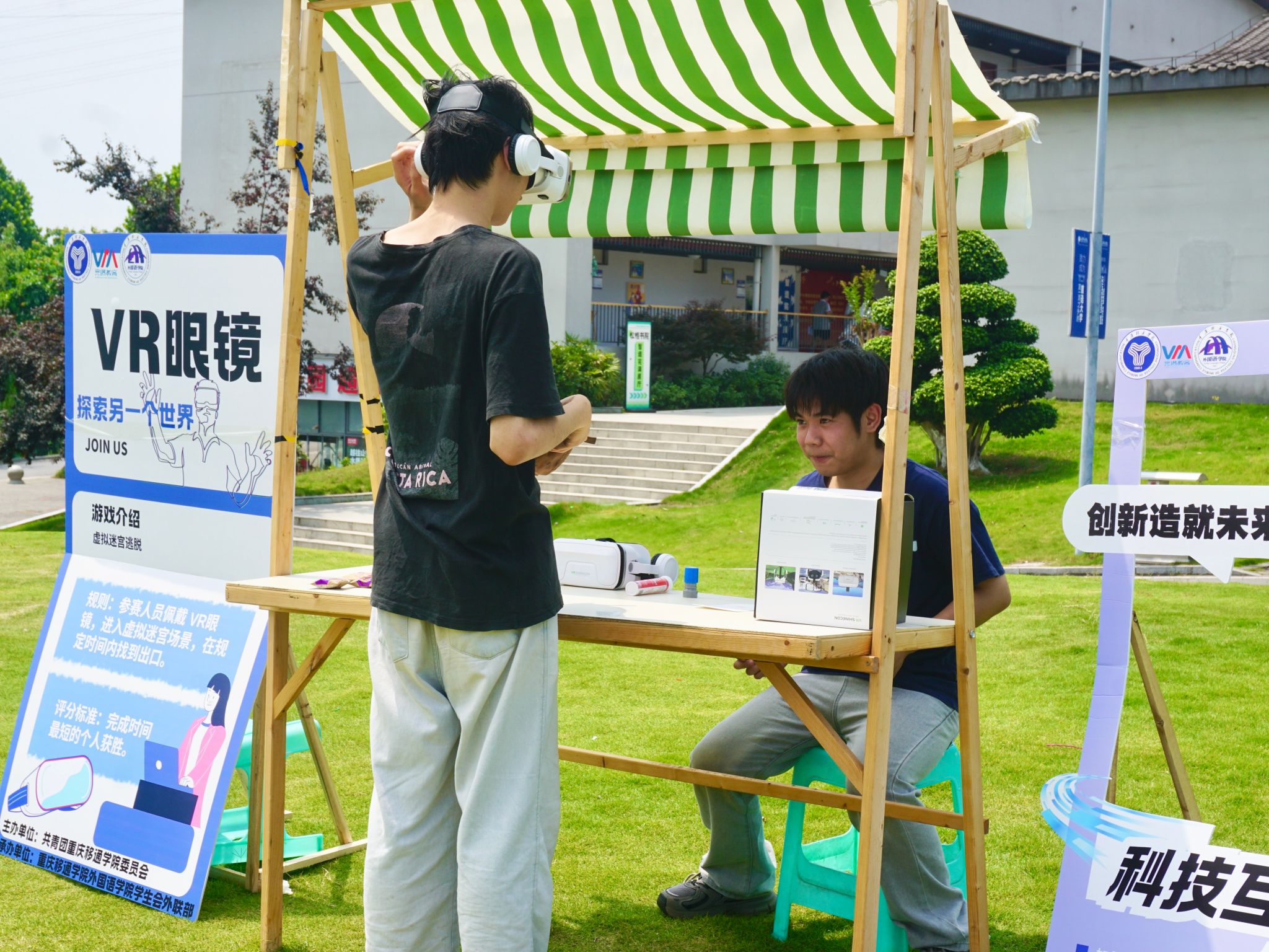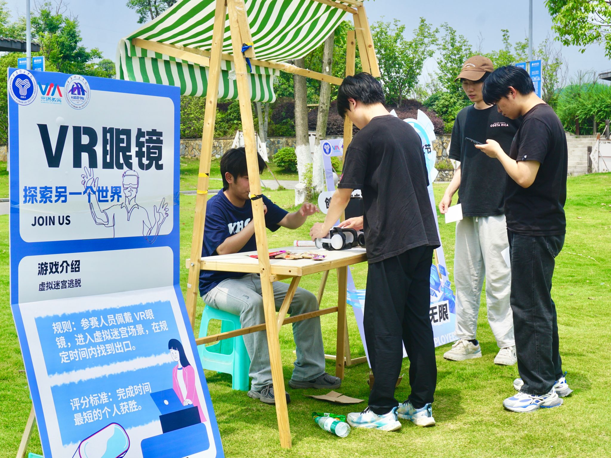 重庆移通学院外国语学院外联部承办的第九届科技文化节于5月21日在行者草坪成功举办!本次活动以"科技互动,创意无限"为主题,设置五大特色活动区,通过虚实结合的交互体验、寓教于乐的科普实践,打造了一场集科技性、趣味性、教育性于一体的校园科技盛事。