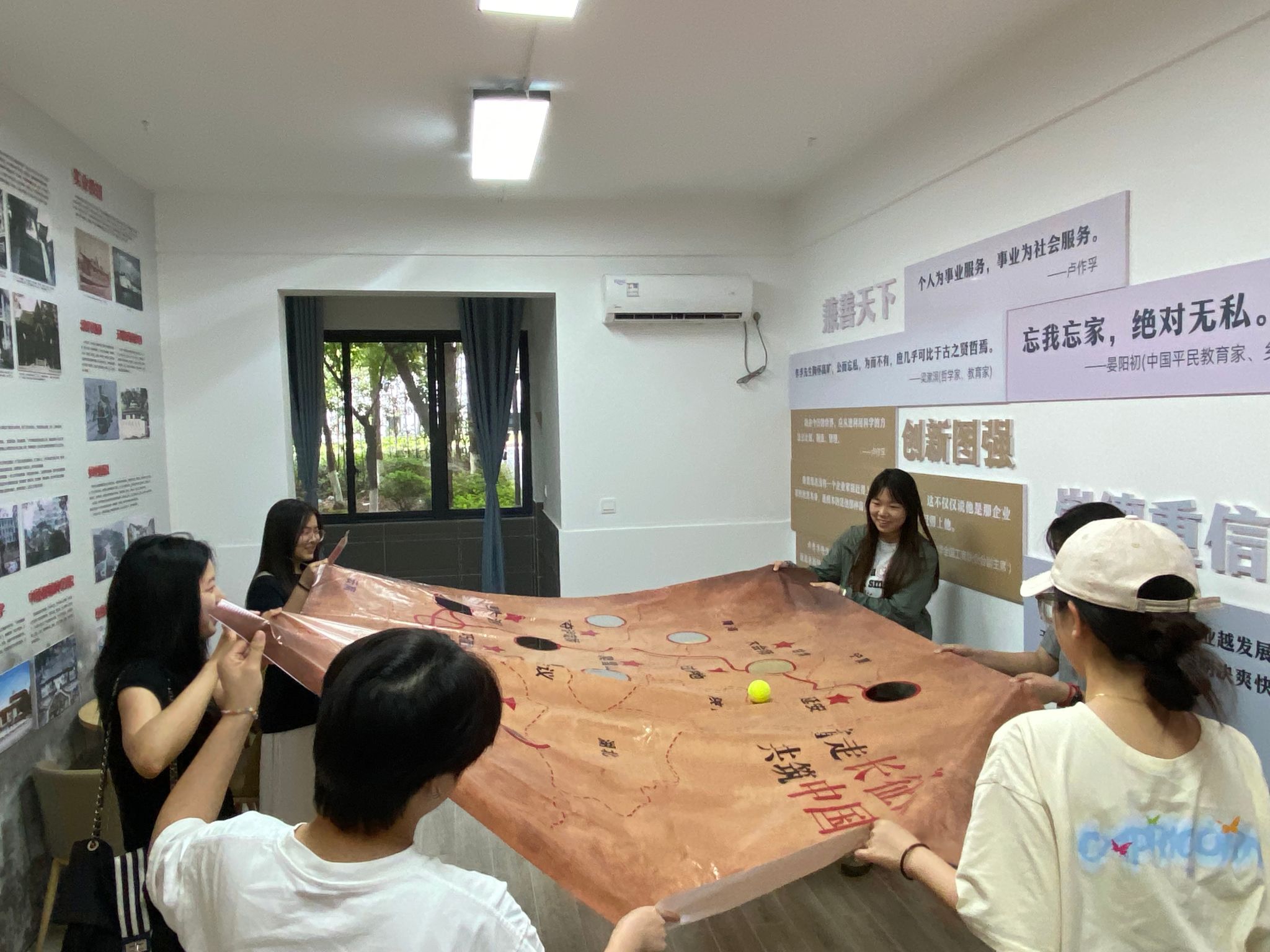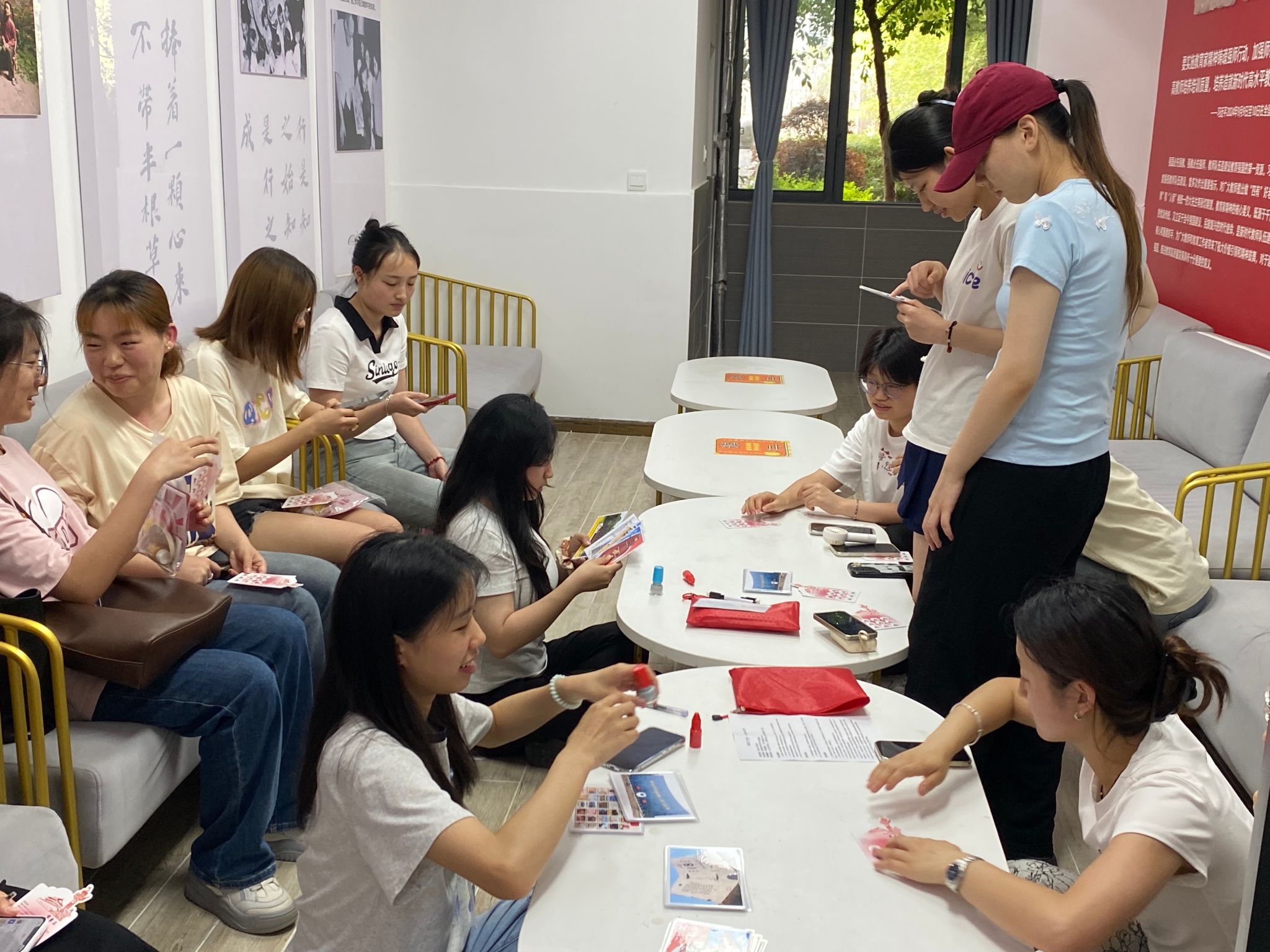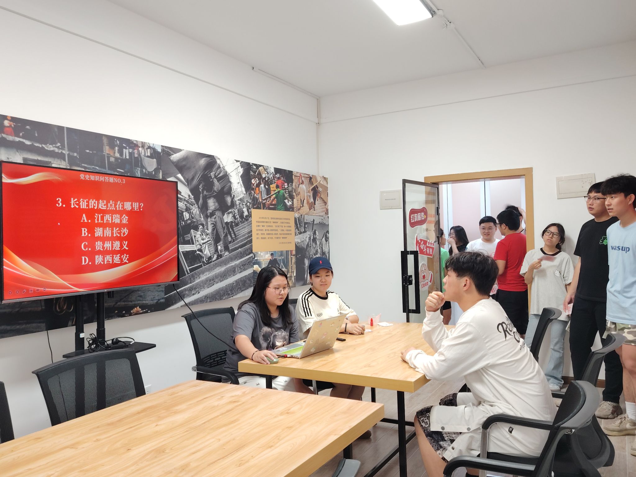 五大沉浸式体验区成为红色教育的“活教材”,将党史学习转化为可感知、可触摸的实践体验。同学们在红色主题剪纸、党史知识问答闯关、红色剧本杀环节中,通过动手实践与角色扮演身临其境地感受革命历史情节;“时光排序”中将百年党史卡片按照时间轴依次还原,深化对党史的理解与进一步学习;在“征途再现”沙盘长征中,同学们6人一组操控网球穿越“飞夺泸定桥”“翻雪山”等关卡,挑战完成后,外国语学院颜同学感慨到“每一次颠簸都像踩着先烈的脚印,更像完成了一次精神上的‘会师’”。
