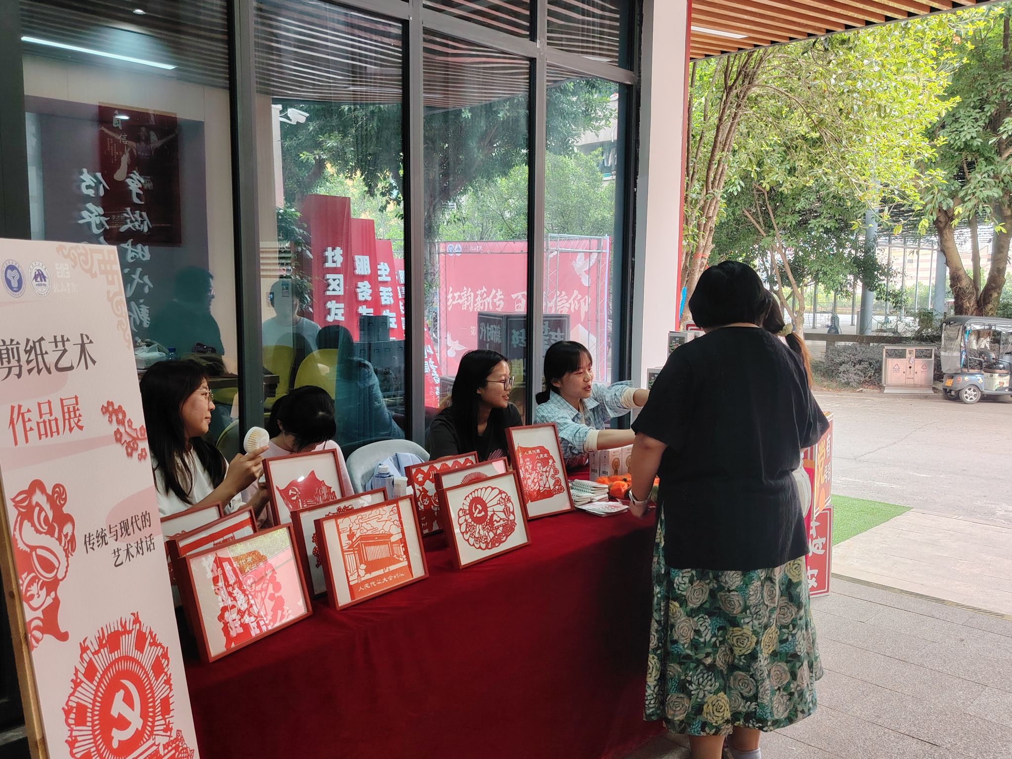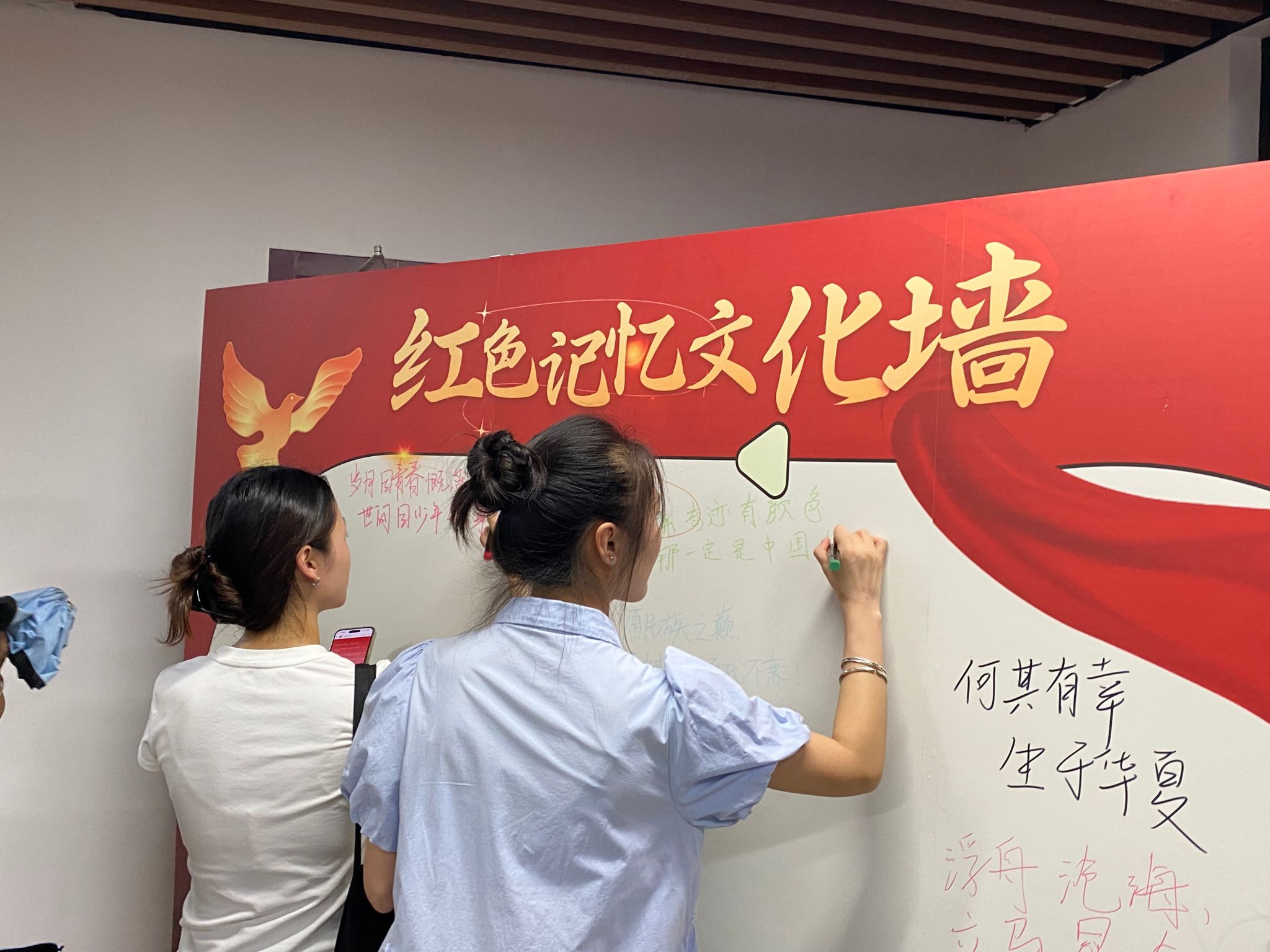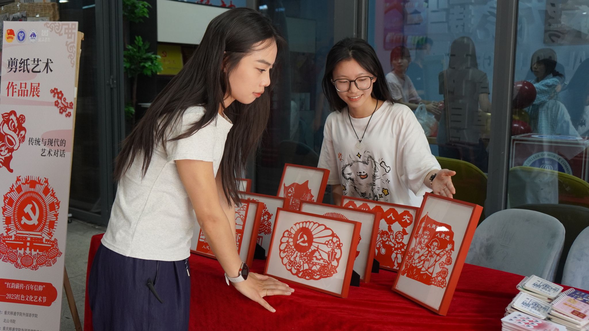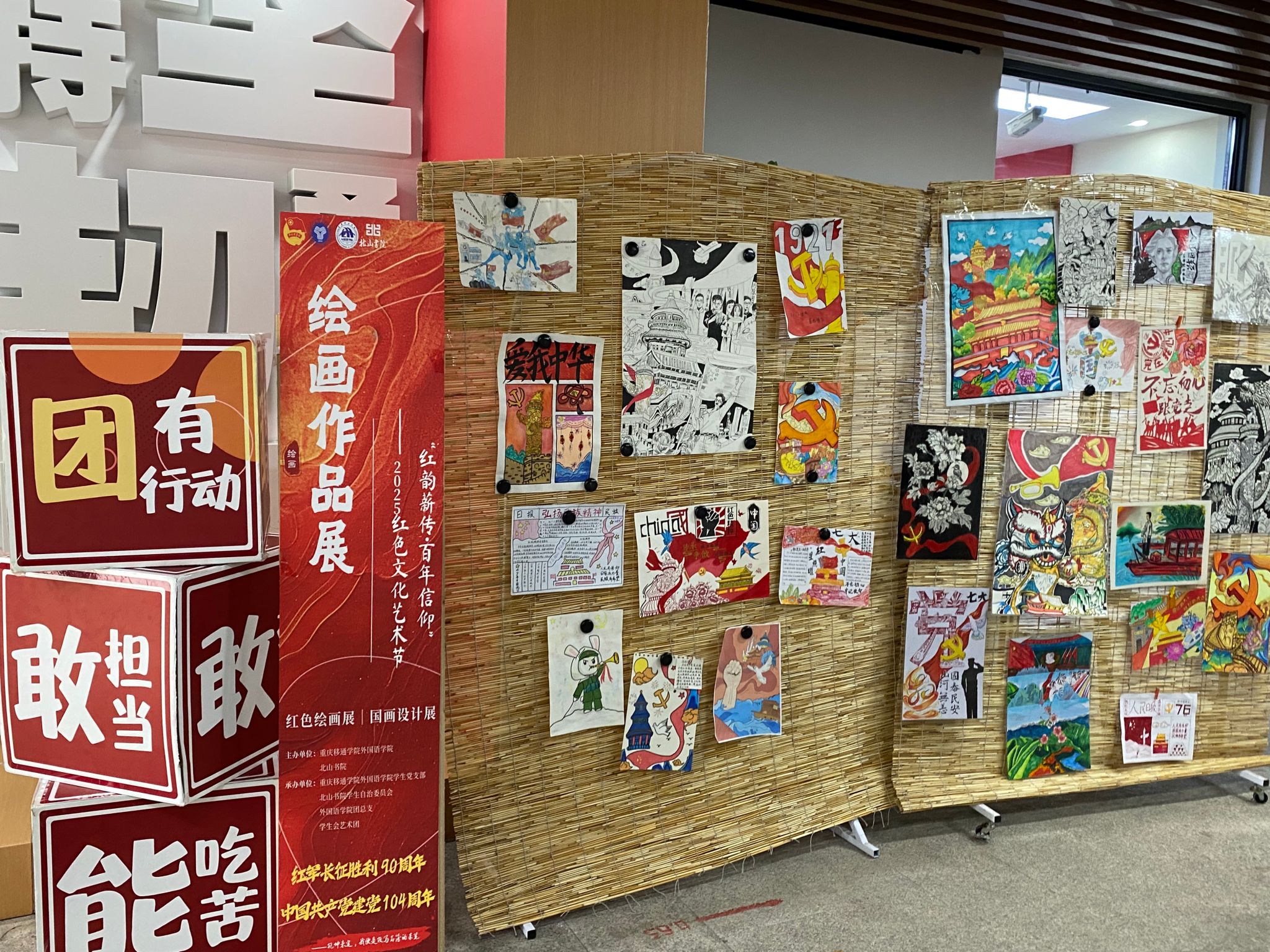 走进北山书院,书院大厅内陈列着红色主题绘画、版画、剪纸等50余件师生原创作品。《长征路上》剪纸作品用非遗技法解构雪山草地的险峻、《红岩魂》手绘海报以写实笔触再现革命前辈奋勇斗争场景;“红色记忆文化墙”写满学子的青春誓言:“以吾辈之力,续盛世华章”“何其有幸,生于华夏”,一笔一划,一字一语都传递着新时代青年的爱国情怀。