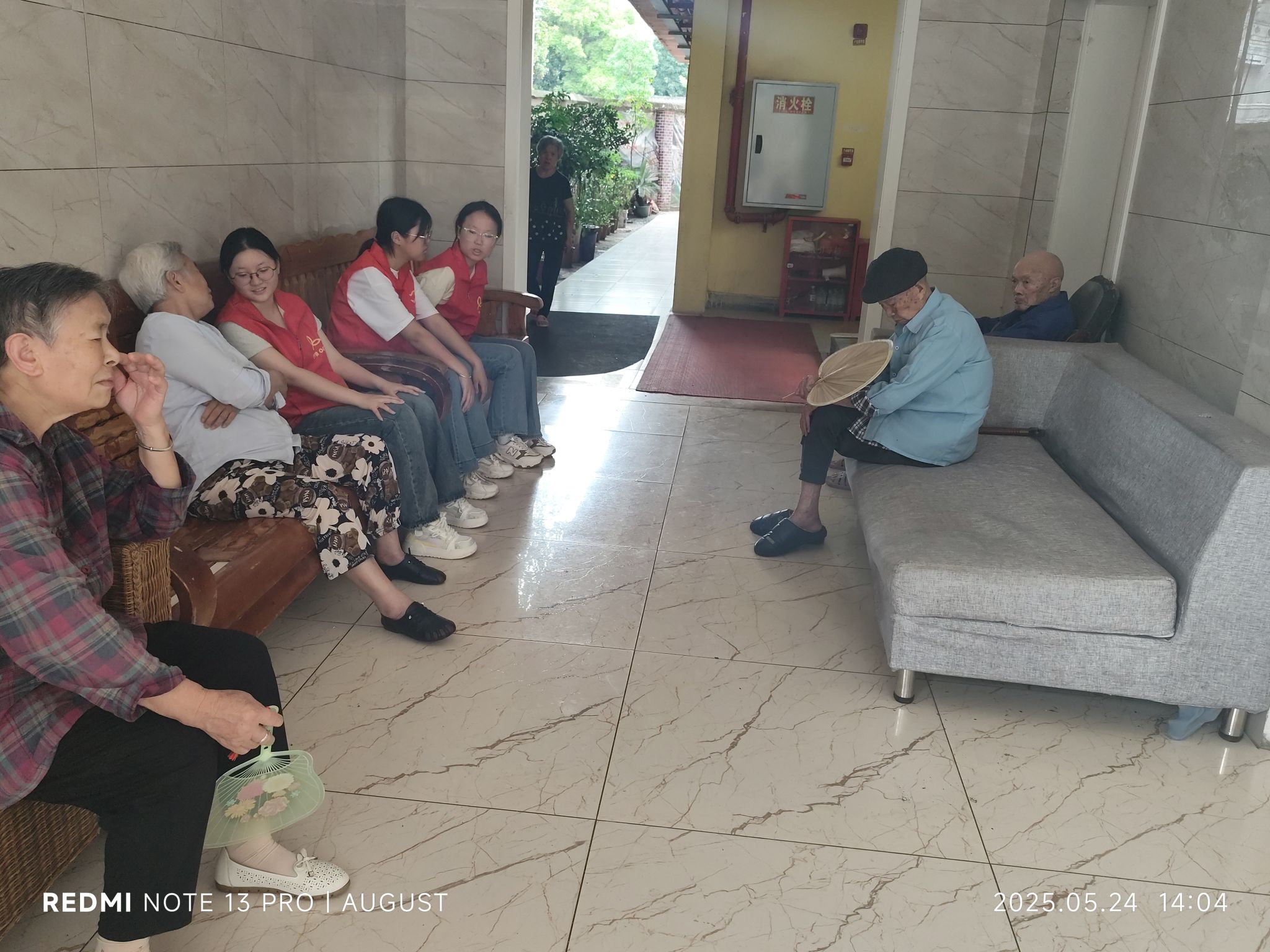 午后,志愿者们围坐在老人身旁,开启一场跨越时代的夏日对话。老人们回忆着年轻时夏日的时光,在田间劳作、在树下乘凉、听蝉鸣、讲故事等,志愿者们认真倾听,不时分享自己的夏日趣事,欢声笑语在房间回荡。这场对话不仅为老人驱散孤独,更让志愿者们在倾听中感受岁月的沉淀,领悟生活的真谛。