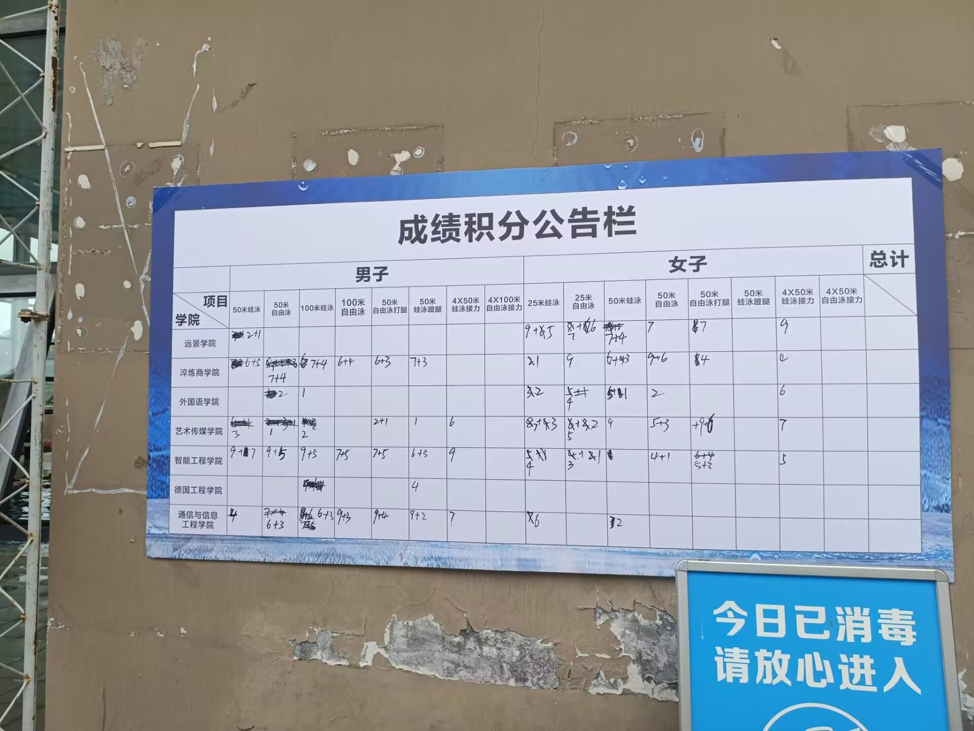 当记分牌上一次次写下分数,这是泳池见证的奋斗印记。有选手虽落后却坚持划完最后一段,有队员在接力赛中交接棒时沉稳默契,更有人克服紧张在参赛中实现自我突破。记分牌上的不仅仅是一个个普通的数字,更是拼搏的证明。这些闪耀的瞬间,无不生动诠释着外院学子坚韧不拔、团结协作、勇于挑战的卓越精神。