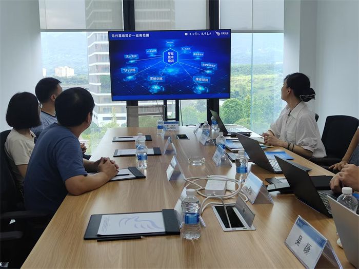 随后,双方举行了校企合作交流座谈会,重庆移通学院外国语学院吴世银院长向企业介绍了学校的办学特色、专业设置、人才培养模式以及近年来的就业情况。他表示,学校一直致力于为学生提供优质的实践机会,通过与企业的紧密合作,能够更好地将理论教学与实践相结合,提升学生的就业竞争力。此次走访希望能够与华夏航空公司在人才培养、实习就业、课程开发、科研合作等方面达成深度合作意向,实现学校、企业和学生的三方共赢。华夏航空公司负责人吴宇恒老师介绍了公司的人才需求情况,强调了对于具备扎实专业知识、良好沟通能力和团队协作精神人才的渴望。同时,公司对移通学院学生的综合素质给予了充分肯定,并希望能够与学校建立长期稳定的合作关系,共同培养适应航空行业发展需求的应用型人才。