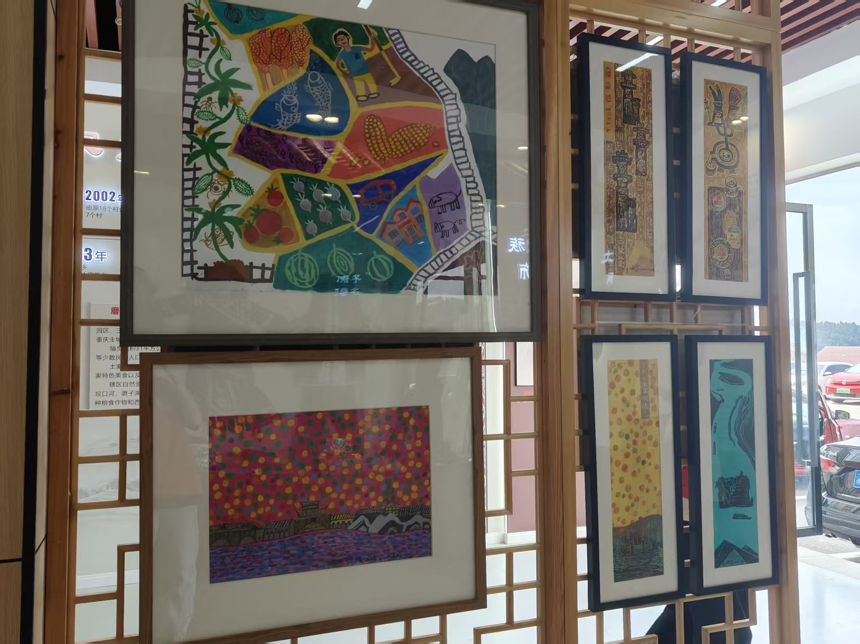 7月7日下午14点,“语润土家,乡音焕彩”推普实践团走进忠县磨子土家族乡人民政府服务中心,开启首日文化探访活动。同学们驻足观赏展厅内的村民画作,笔触间的质朴满是土家儿女的生活印记;服饰蓝布对襟衫灵动的刺绣纹样,尽显民族工艺独特韵味;村民画作里的烟火日常是土家文化鲜活的注脚。同学们认识到:普通话推广不是简单的语言普及,而是要以乡音为桥,让土家故事传得更远,民族文化才会在交流互鉴中愈发璀璨,乡村文化振兴才会不断注入青春动能。