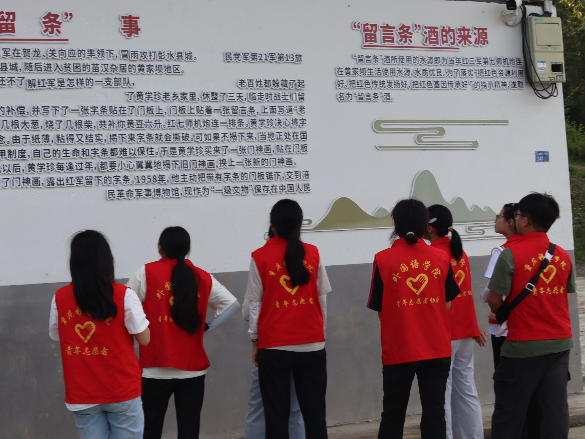 陈列室内,泛黄照片、陈旧酒具都一一勾勒往昔片段。志愿者们品味浓郁的佳酿,更深挖背后深厚的红色故事:这酒不仅是军民同心的见证,其背后留言条的故事彰显着红军纪律严明、秋毫无犯的精神,更是艰苦奋斗、无私奉献的中华儿女拳拳爱国精神的具象体现,与烈士陵园中先烈们的家国担当一脉相连。当地创办的“留言条”酒厂作为村集体经济,充分将这份珍贵的红色记忆和精神融入当地酒文化与集体文化之中,让红色精神从历史叙事走向产业传承,在酒香中得以发展延续。
