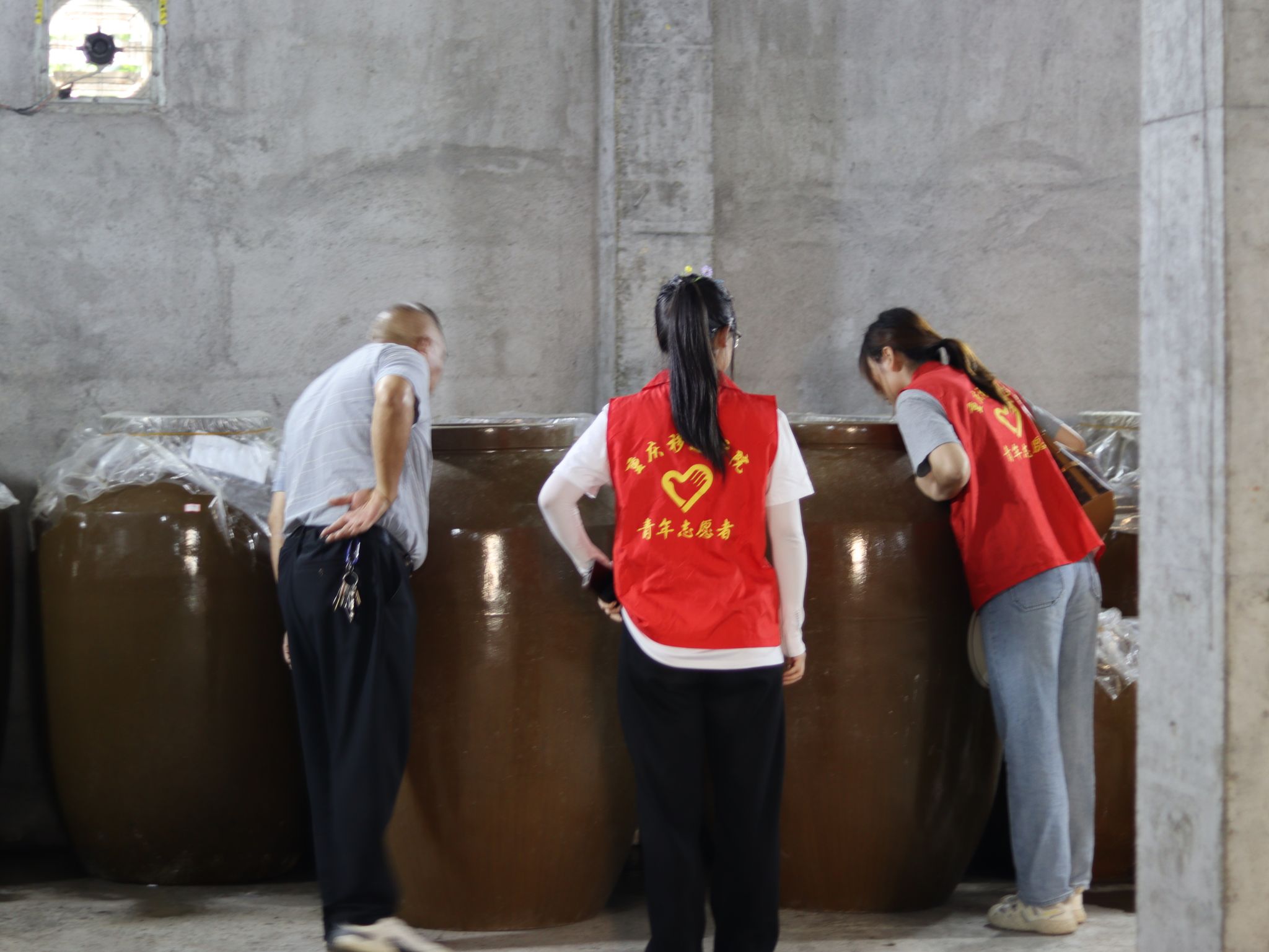 踏入酒厂,醇厚酒香裹挟着红色记忆扑面而来。田忠书记引领志愿者们了解流程:本地红高粱经泡粮、蒸煮、发酵等传统工序,蜕变为风味独特的佳酿。而在酒香背后,红色故事熠熠生辉——1934年,红七师机炮连一排转战黄家坝,借宿黄学珍家后,主动将屋子收拾干净、挑满水缸,并留下“吃用物品折价补黄豆六升”的留言条。黄学珍冒风险将其珍藏多年,直至1958年献予中国人民革命军事博物馆。每当红军过境时,乡亲们以高粱酒慰劳战士,军民鱼水情就此深植。从抗战壮行到凯旋庆贺,高粱酒从一而终地见证家国情怀的一脉相承,成为连接历史与当下的情感纽带。