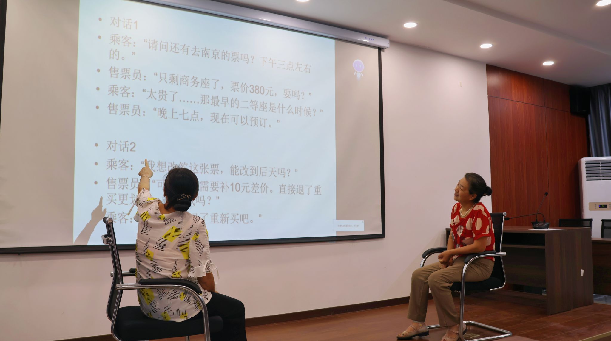 用普通话为钥,让新观念扎根土地。推普团队成员们在竹山村党群服务中心会议室与留守老人们开展了一场别开生面的普通话情景教学活动。志愿者们通过耐心指导、逐字纠正,帮助老人们提升普通话表达能力,让“乡音”与“国音”在互动中温暖交融。课堂上,志愿者们结合老人日常生活场景,设置了“医院看病”、“赶集”、“买票”等情景对话。年长老者试着说出“现摘的很新鲜”短句时,将“鲜”字读成了方言谐音,志愿者耐心地示范正确发音,并拆解拼音声调反复带读。遇到发音困难的老人,队员们便用手势辅助示意口型,或结合实物加深记忆。老人们学得认真,不时互相纠正、捧腹大笑。情景教学模式不仅让老人们初步掌握了常用普通话表达,更拉近了与外界沟通的距离。那些从普通话课堂里流淌出的标准音节,正像春日的细雨,浸润着乡土。志愿者们将会用持续的耐心帮助他们打破语言隔阂,让普通话成为连接老人与时代的“暖心桥”。