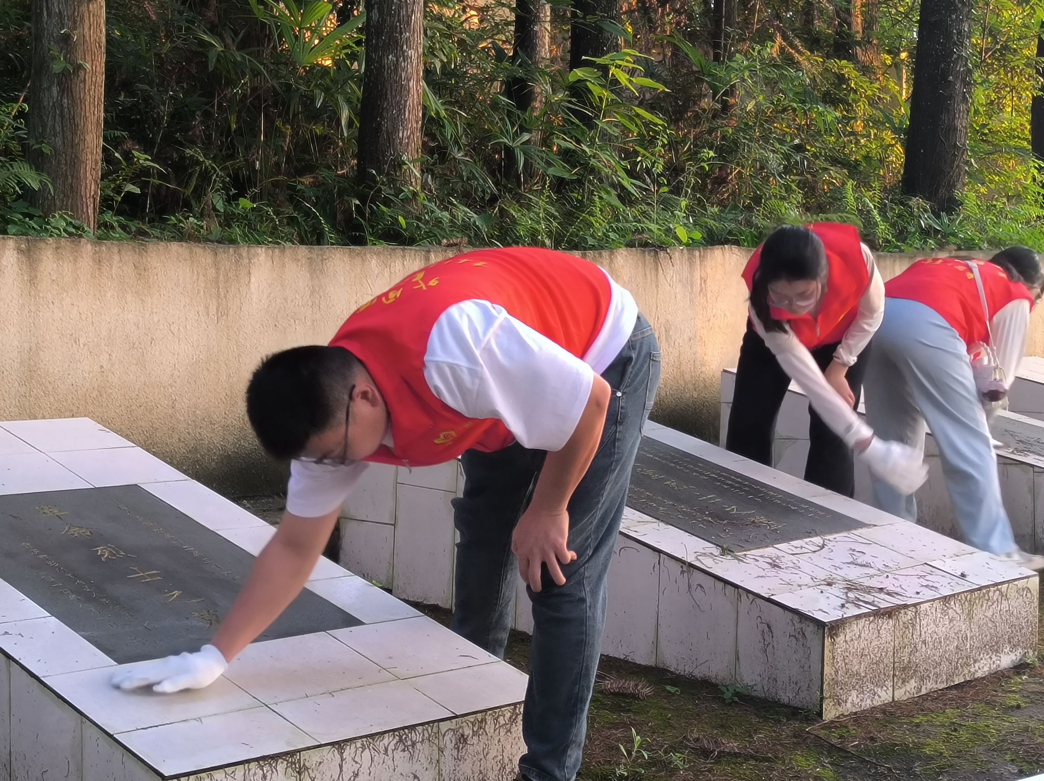 笔架山烈士陵园松涛低咽,调研团队列队纪念碑前举行庄重的祭扫仪式。在指导老师的讲解下,队员认真清扫28位英烈的墓碑并分别为其献上亲手折好的白花。当团队成员们指尖抚过碑身风化的纹路,誓言在浮雕前铿锵回响,历史的星火穿透时空点燃青春的理想。黄家镇的风雨征程在乡村振兴的沃土上熠熠生辉,纪念碑矗立处,既是历史的回音壁,亦是未来的起跑线。此刻,红色基因早已融入乡土血脉,成为滋养新时代的精神根系。