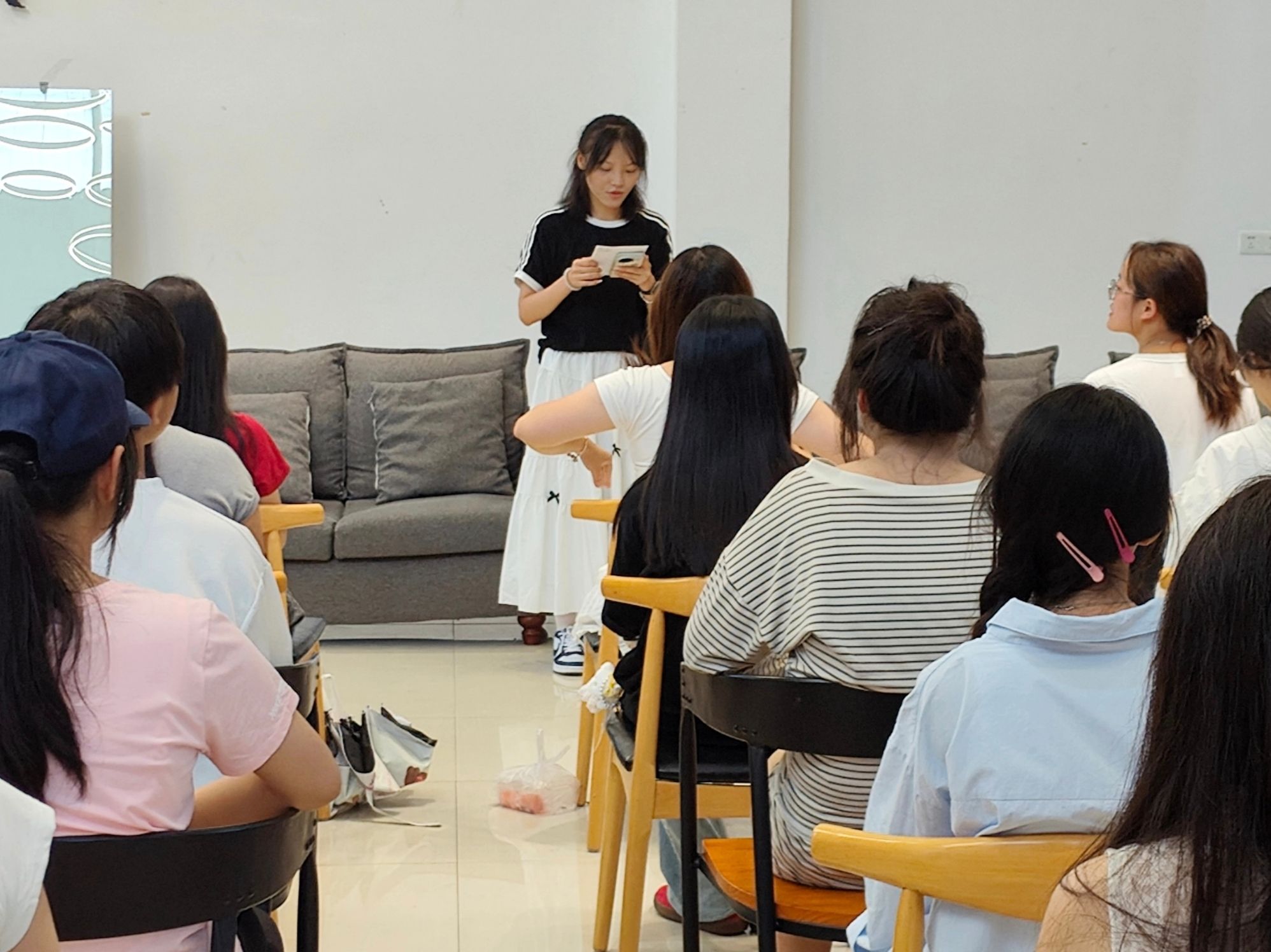 见面会在轻松的氛围中拉开帷幕。首先,各部门及支队负责人依次上台自我介绍,从姓名、负责板块到对新学期志愿服务的期待,简明又生动的分享,不仅让在场新成员快速厘清青协的组织架构——从职能部门到服务支队的分工一目了然,也和各板块的核心负责人进行初步认识,为后续开展工作时的沟通协作打下坚实基础。