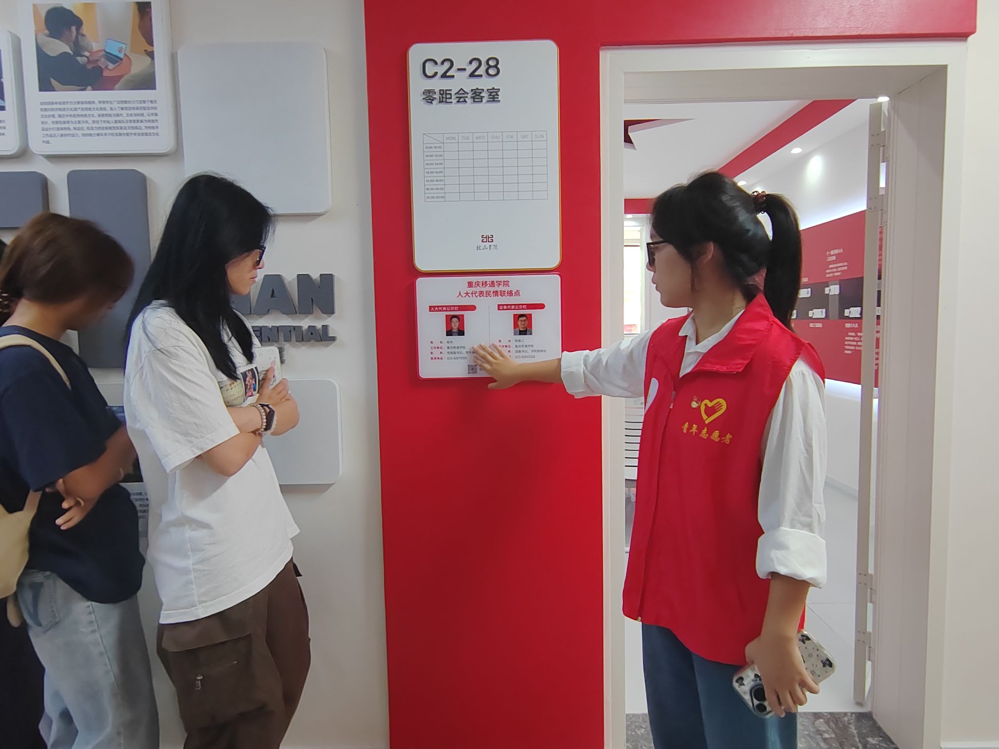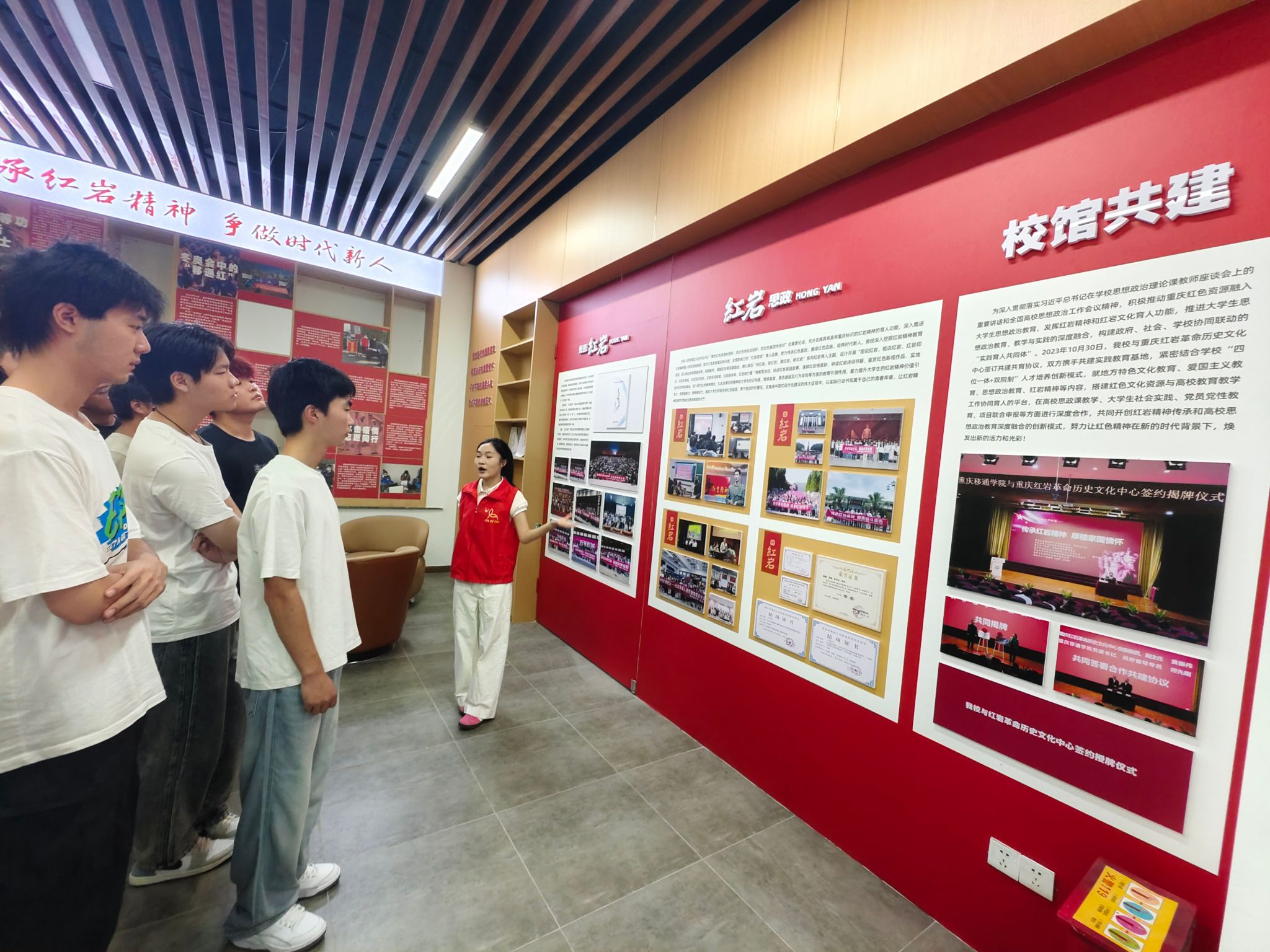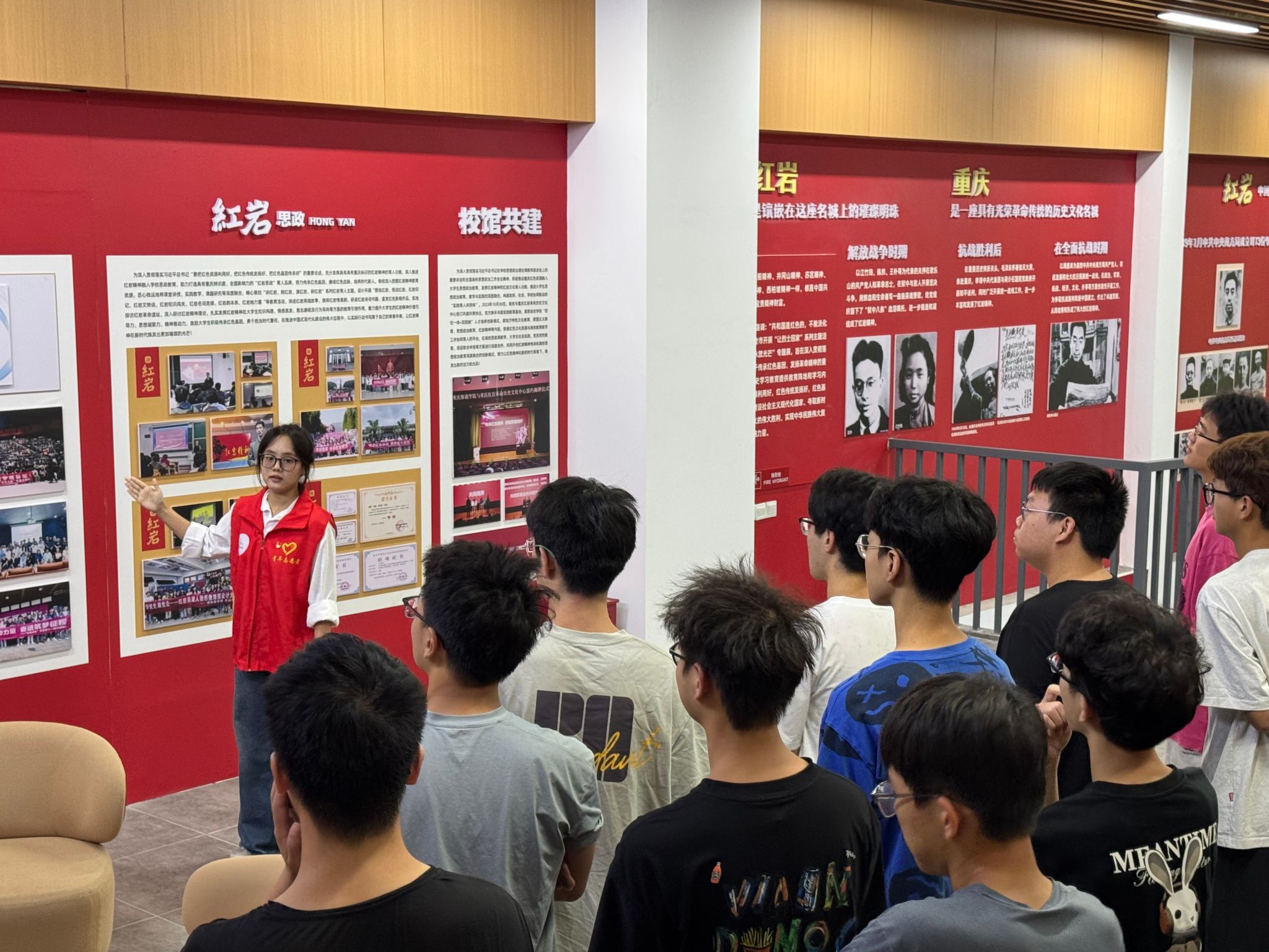 校地融合区内,“本土英烈故事”同样打动人心。在绍影回响室,志愿者讲述合川籍烈士左绍英的事迹:“她在狱中生下‘监狱之花’,面对威逼利诱,把最后一口粮留给孩子,依然严守组织秘密——这是母亲的大爱,更是革命者的忠诚。”海空先锋室中,舒积成将军的传奇经历吸引了大批新生驻足。“将军驾驶落后战机,凭‘敢打必胜’信念击落多架敌机。”志愿者结合战例解读,“这种迎难而上的韧劲,正是你们攻克专业难题的底气。”在山城印巷、川江声影室,老照片里“棒棒爬坡”“纤夫拉纤”的场景前,志愿者说道:“红岩精神也藏在普通人的奋斗里,是重庆人刻在骨子里的坚韧。”