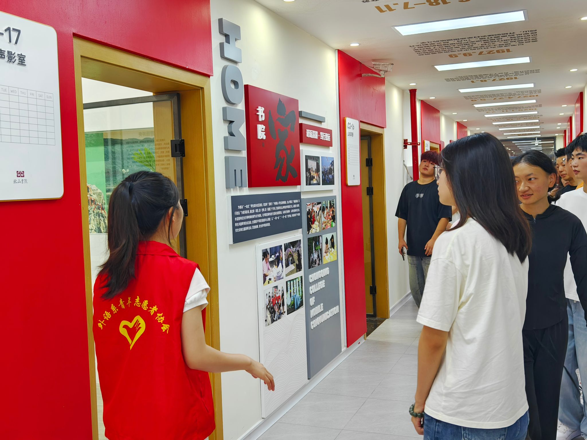 为帮助2025级新生扣好大学生涯“第一粒扣子”,厚植家国情怀、传承红色基因,9月8日-16日,外国语学院、北山书院双院共建的“红语新声”先锋志愿服务支队以书院红色场馆为阵地,以“红心向未来,北山启新程”红色文化浸润行动为契机,用“讲解+故事+体验”的沉浸式模式,让新生在聆听中触摸历史、在感悟中汲取力量,开启精神成长新征程。