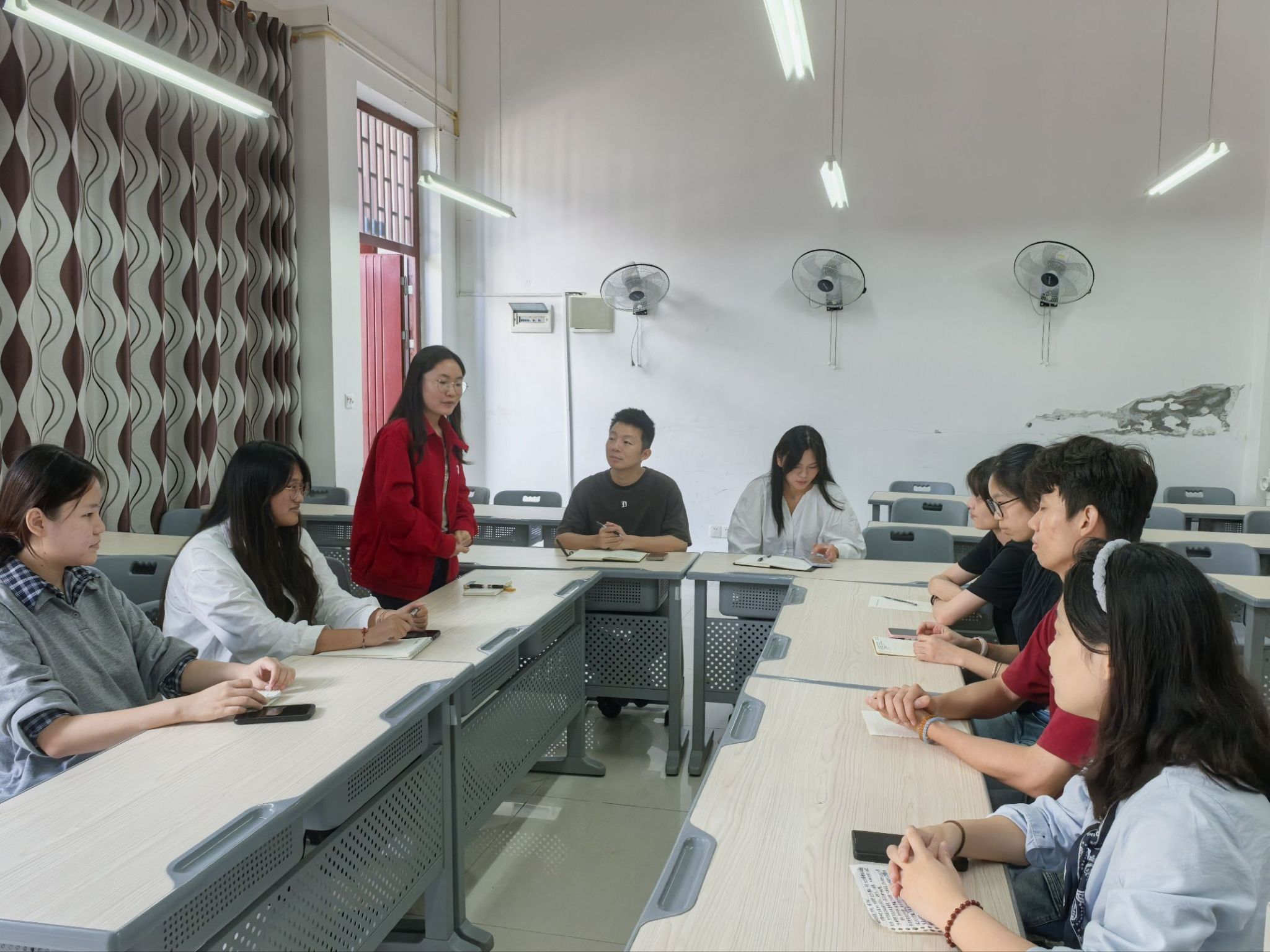 最后,见面会进入工作研讨环节。全体成员围绕队旗、logo设计方案展开热烈讨论,各抒创意;同时针对支队未来活动安排、岗位分工等内容进行细化沟通,在集体献策中凝聚共识。
