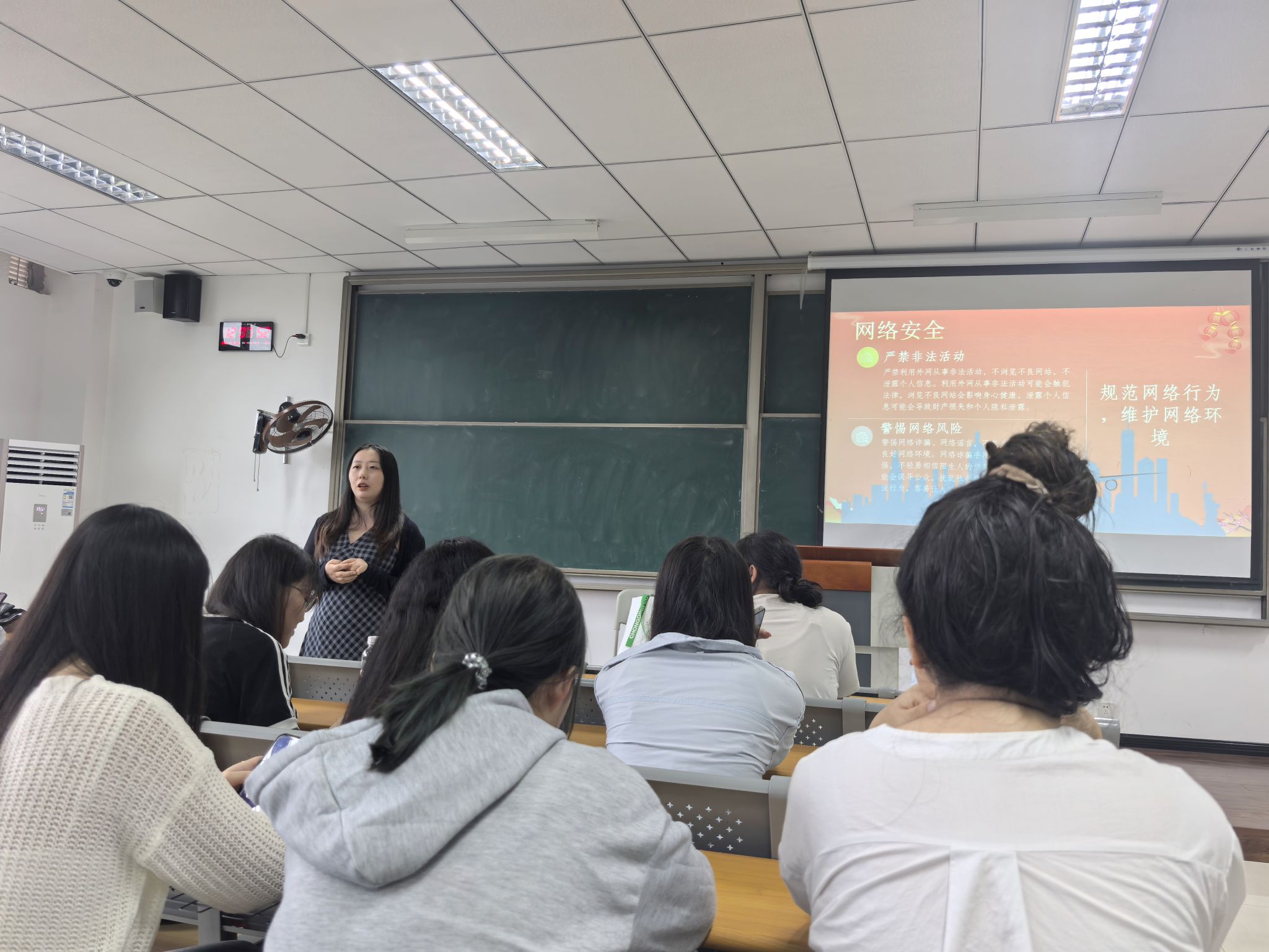 为切实保障学生权益、筑牢安全防线,9月29日,外国语学院2024级于9教9210召开专题年级会。本次会议由年级辅导员兰鹰主持,全体外国语学院2024级学生参会,围绕 “国家奖学金申请指导”“国庆放假安全提醒”“校园防诈骗教育” 三大核心内容展开,为学生新学期成长与假期安全保驾护航。