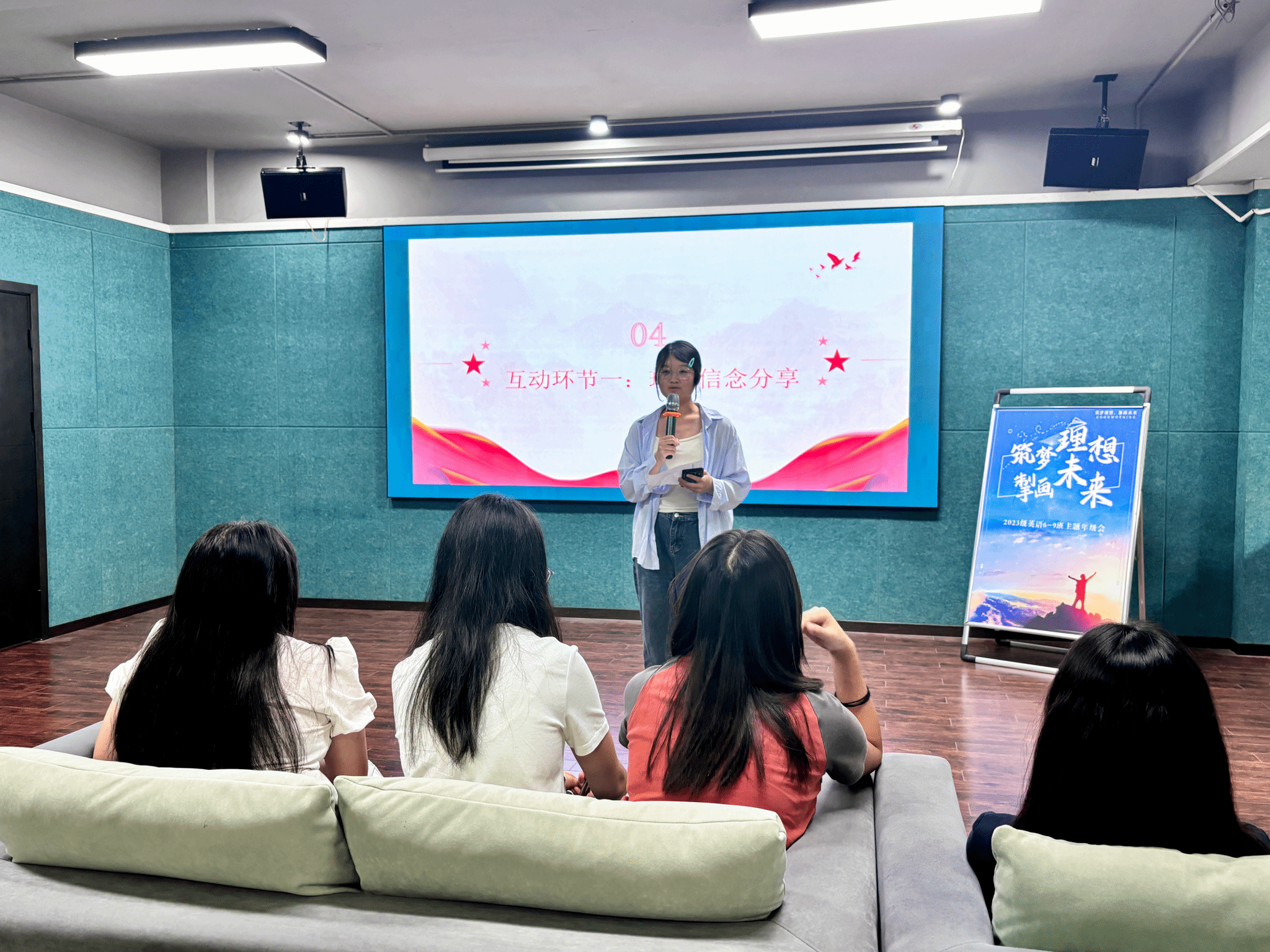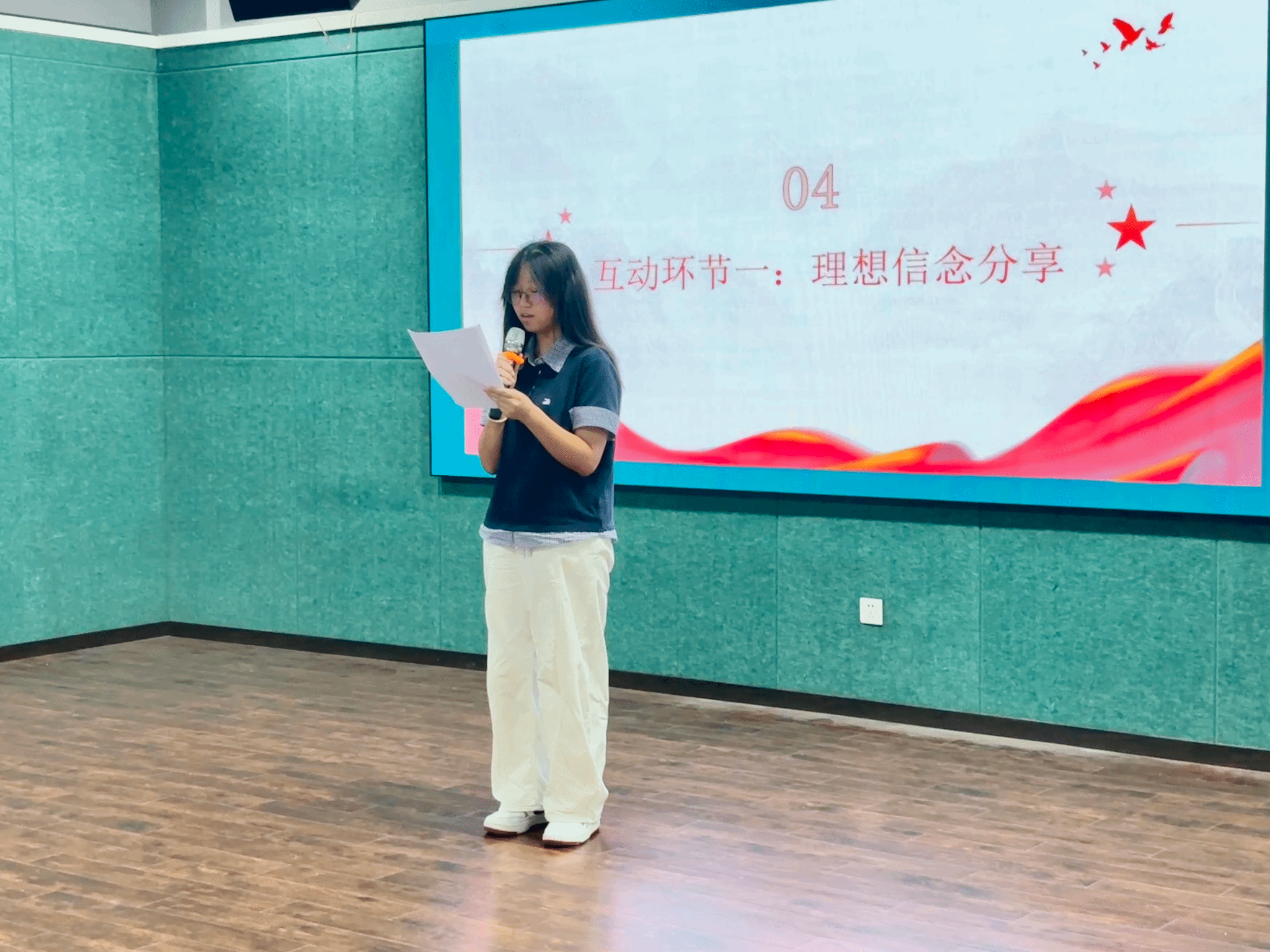 随后,活动进入了“微光汇聚,信念传递”的互动环节。三位来自不同班级的 “隐形信念者”——王雨、黄琼瑶、吕诗艺同学被邀请上台分享。她们虽未站在聚光灯下,却以日复一日的努力和坚持,默默为年级贡献着自己的力量。三位同学的分享,让在场的同学们深刻体会到,每一个小小的努力都是通往成功之路不可或缺的基石。