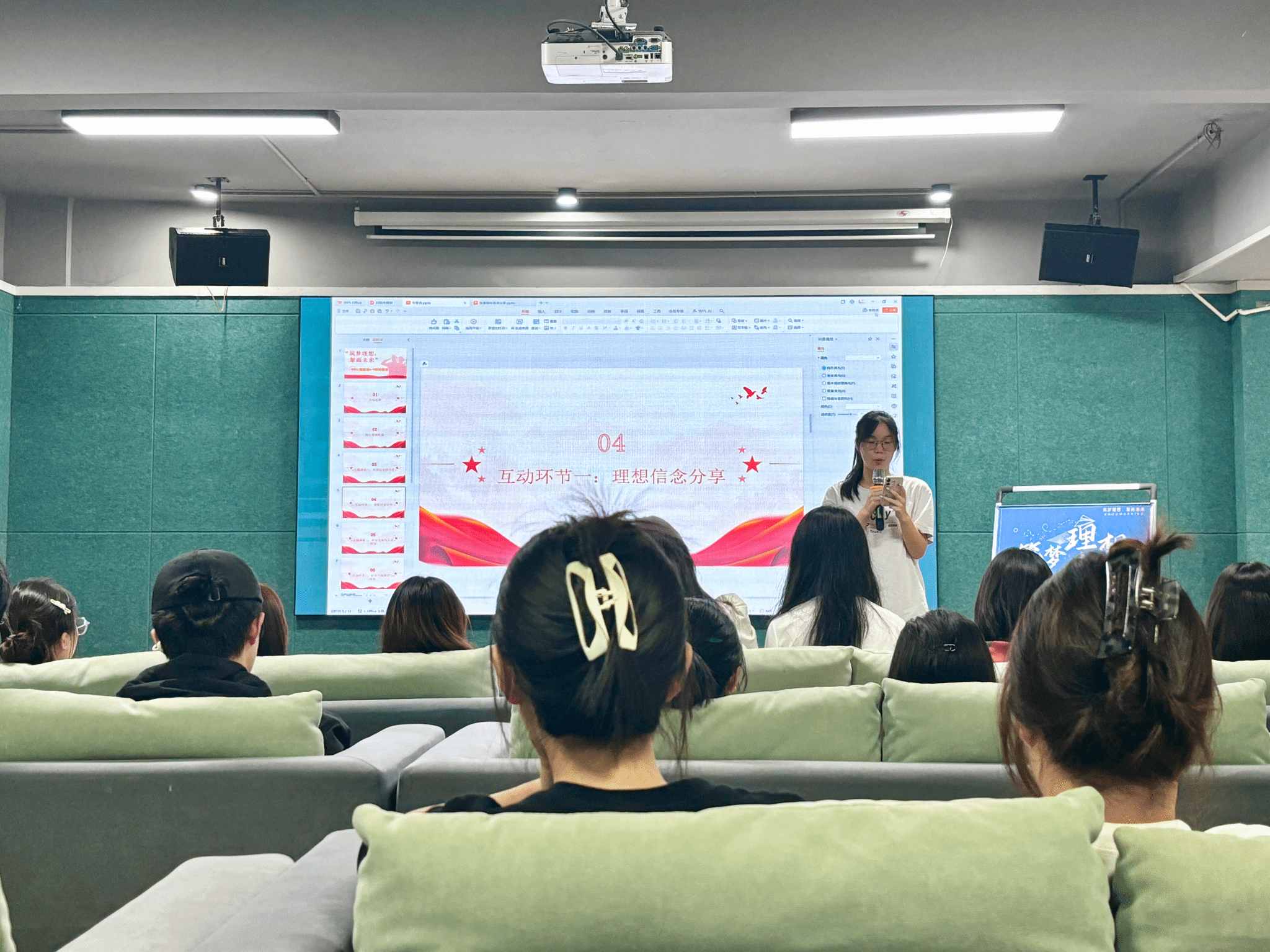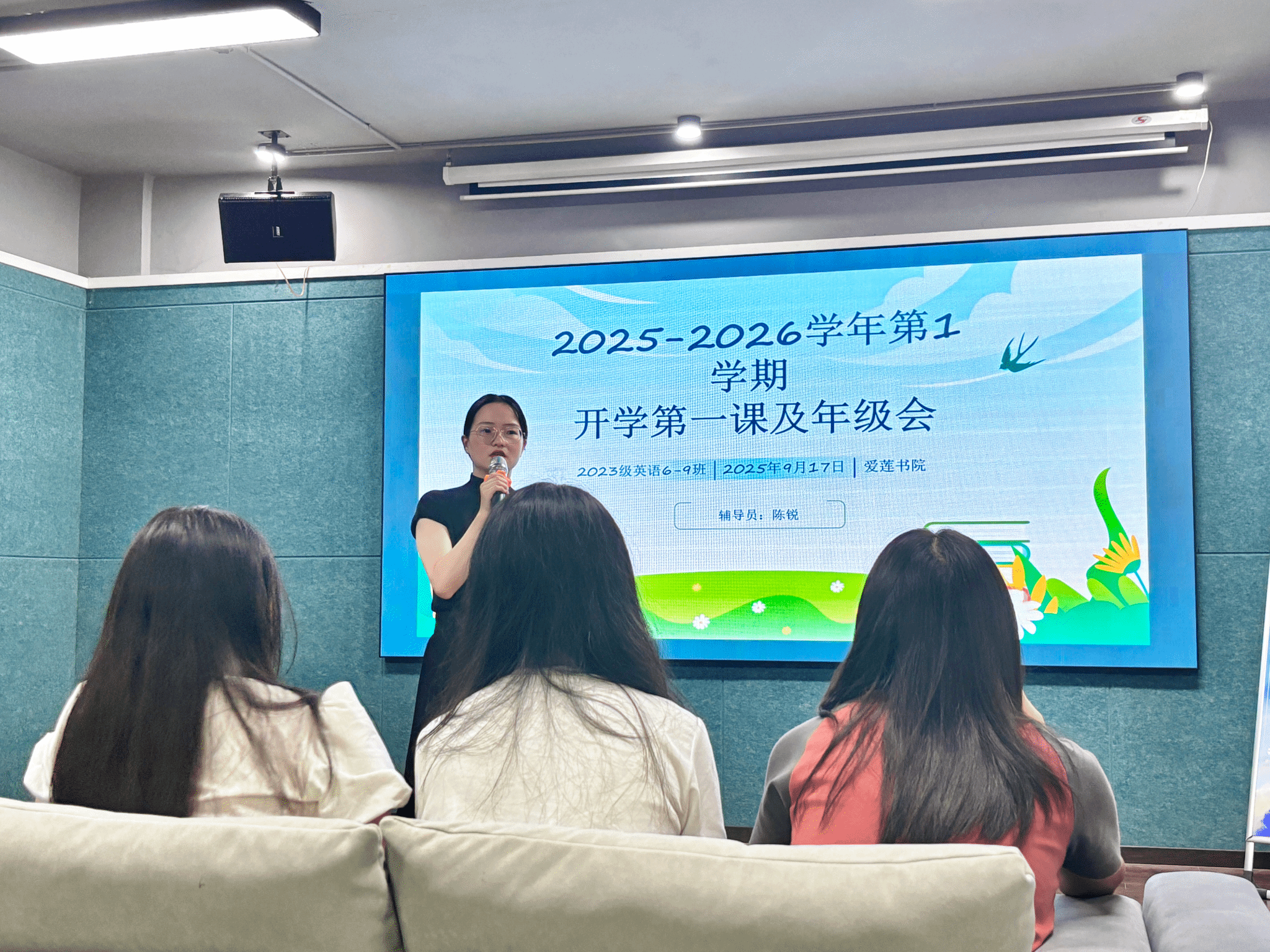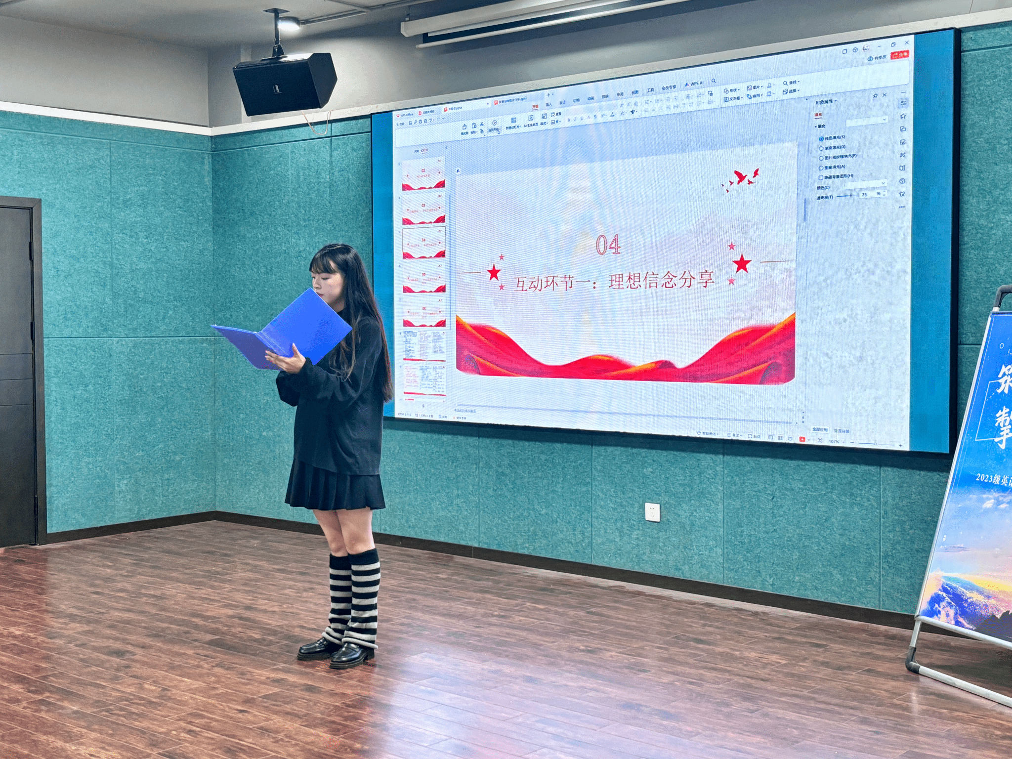 活动在庄严而热烈的氛围中拉开序幕。主持人李凤仪以一段 激情洋溢的开场白,点燃了现场的气氛:“青春因梦想而滚烫,人生因奋斗而璀璨。作为外院学子,我们手握语言的钥匙,更需打开职业的大门。”随后,她介绍了到场的嘉宾:就业创业办公室主任陈锐老师以及来自2023级英语10班的张素琼同学,他们的到来为活动增添了权威性与榜样力量。