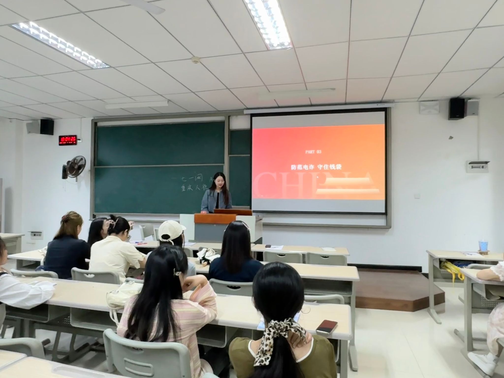针对近期高发的电信网络诈骗,会议结合“刷单返利”“冒充客服”“校园贷”等典型案例,深入剖析了诈骗分子的作案手法。杨雨菡老师特别提醒,在求职季来临之际,务必对“内推缴费”等新型求职陷阱保持高度警惕,并重申“不轻信、不透露、不转账”的三不原则,呼吁同学们一旦遇到可疑情况,第一时间联系辅导员或报警求助。