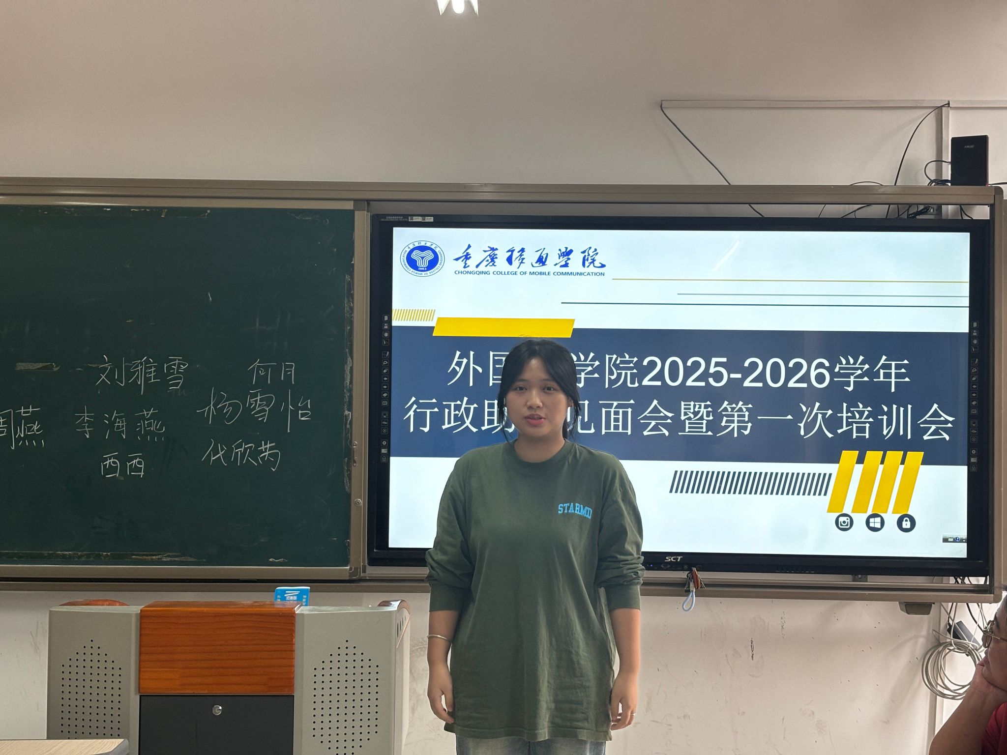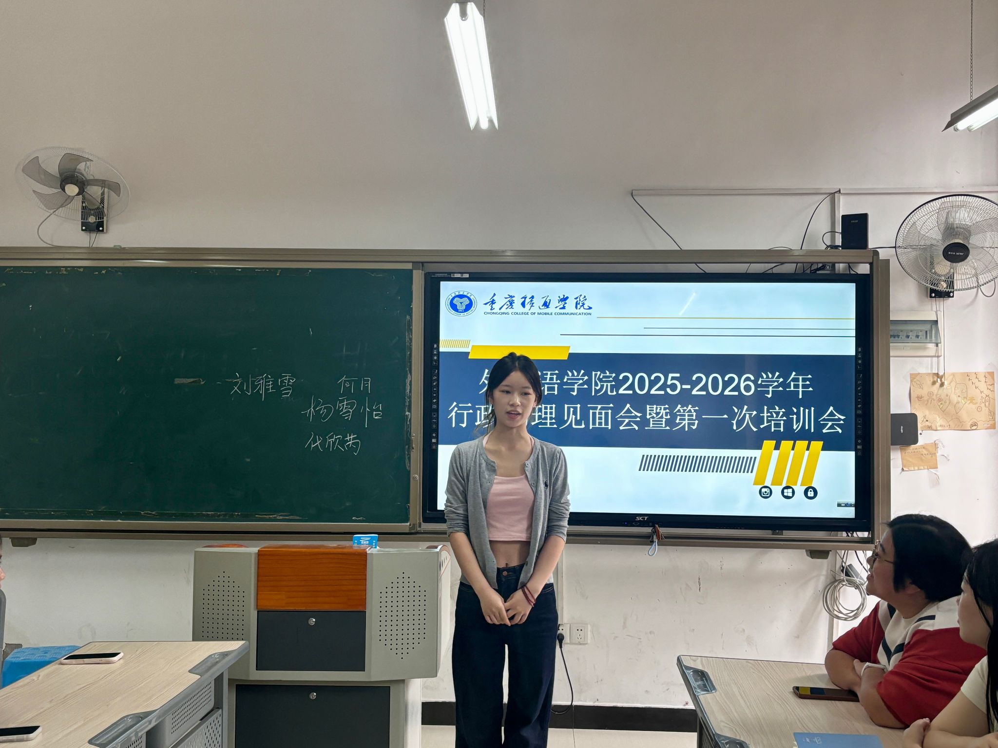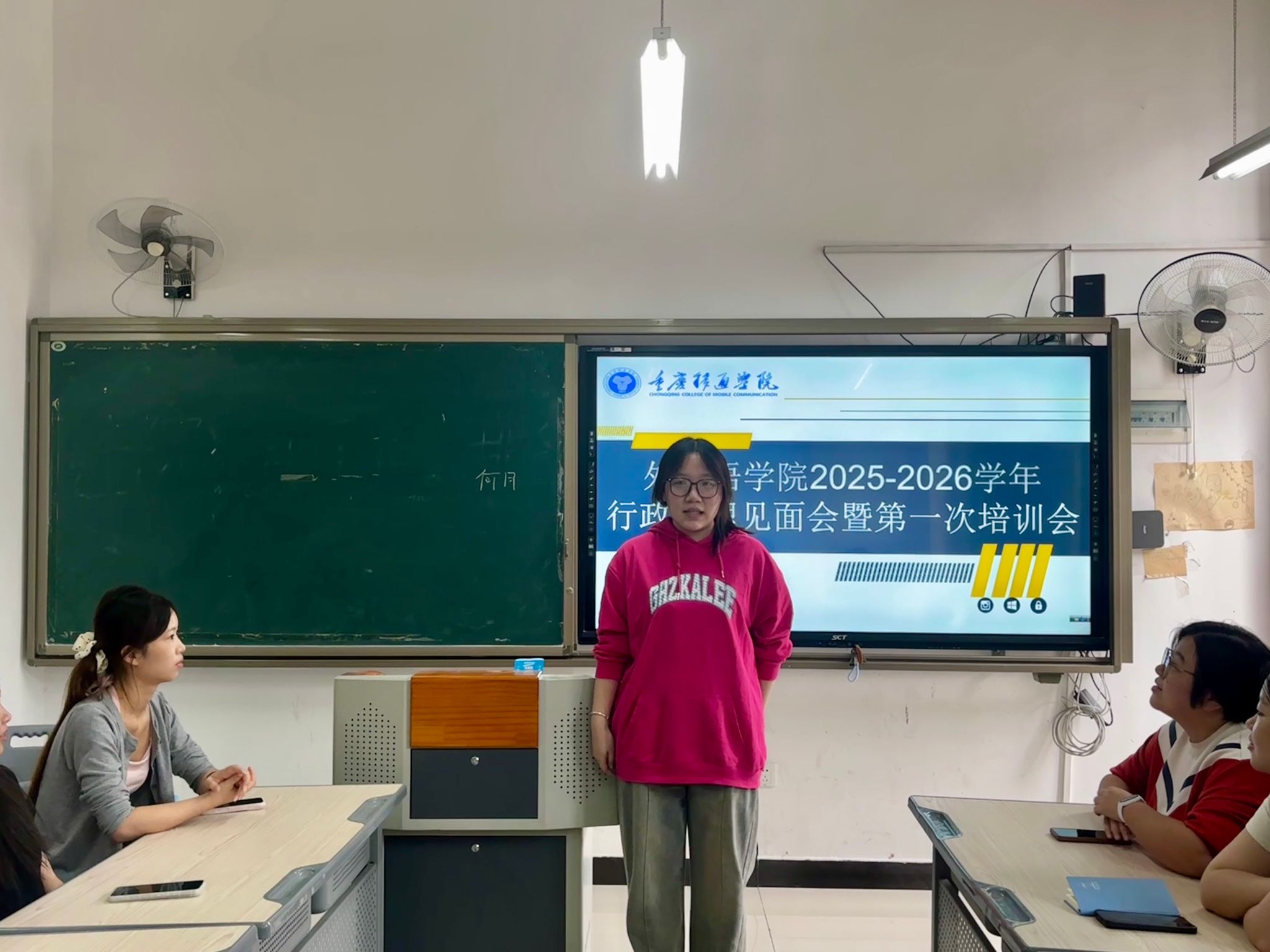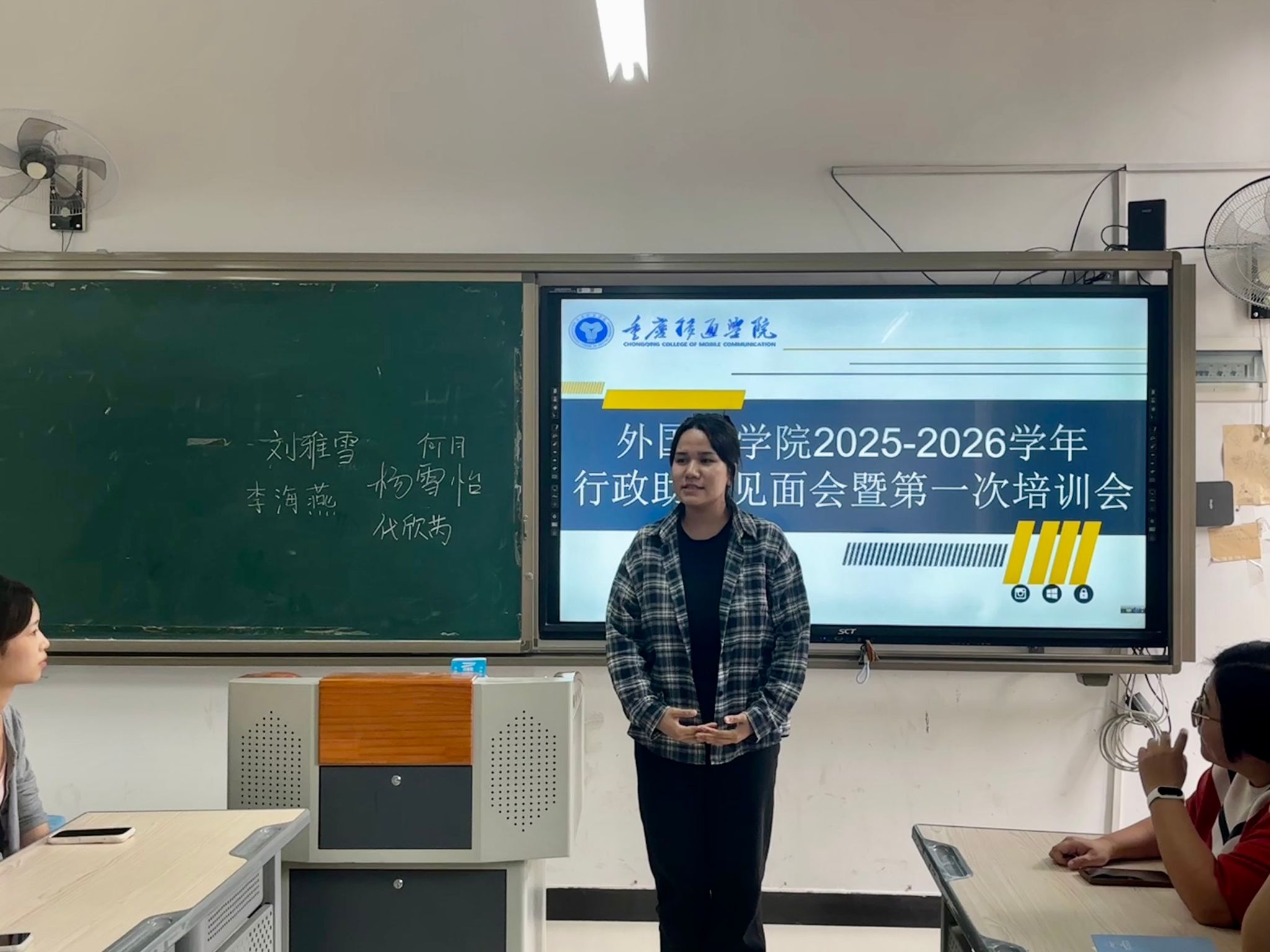 9月30日,外国语学院2025-2026学年行政助理见面会暨第一次培训会在天渠102教室顺利举行。学院学工办主任纪治阳老师与9位新任行政助理共同参会,为新学期行政助理工作拉开序幕。