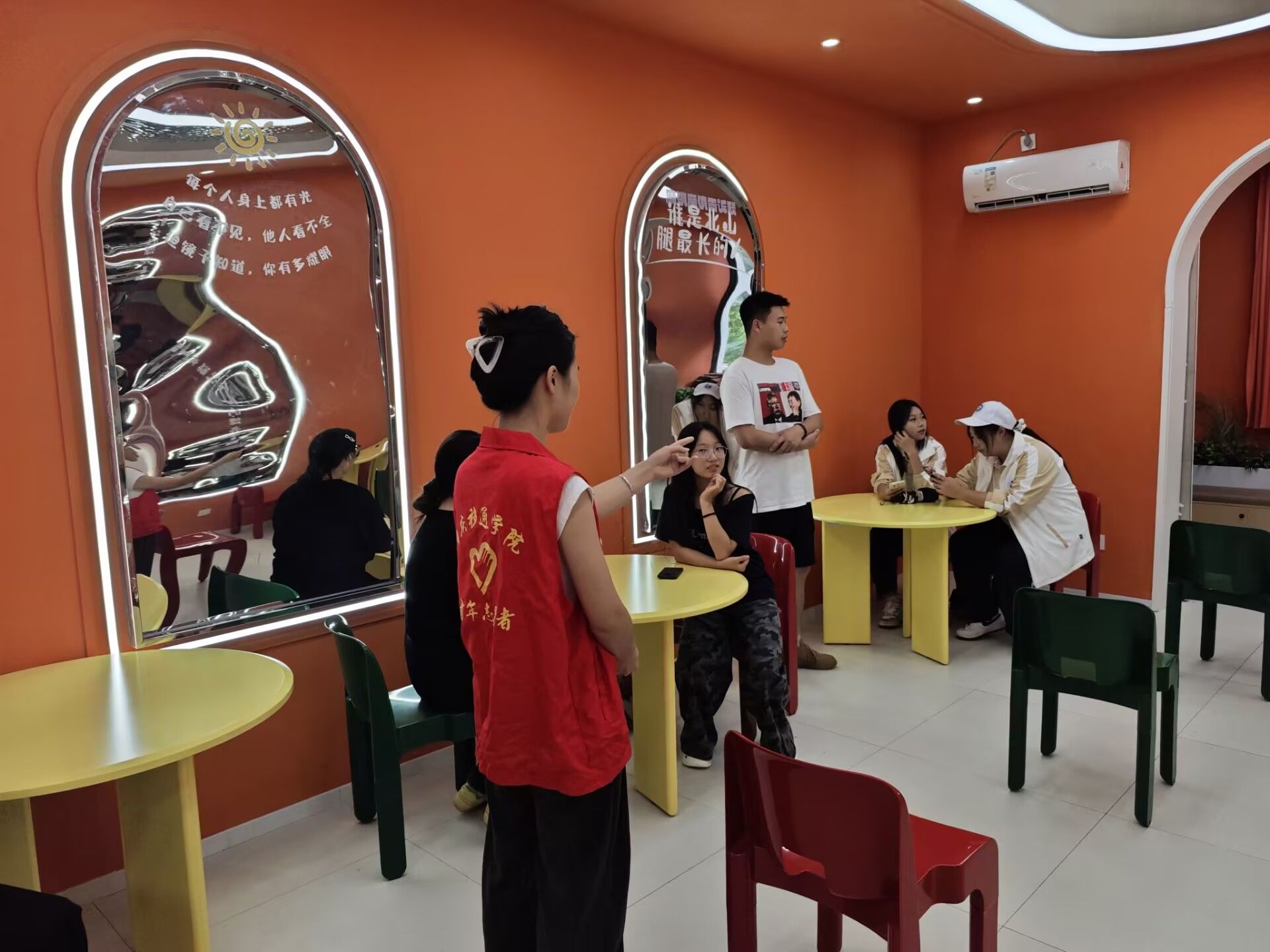 国庆佳节临近,为关注青年心理健康、营造温暖节日氛围,重庆移通学院外国语学院青年志愿者协会安心支队,于2025年9月29日下午,在北山书院情绪哈哈镜开展心理志愿服务活动,以交流谈心、游戏互动、心愿寄语为核心环节,旨在通过沉浸式体验,让同学们在互动中打破隔阂、拥抱自我,收获温暖与成长。