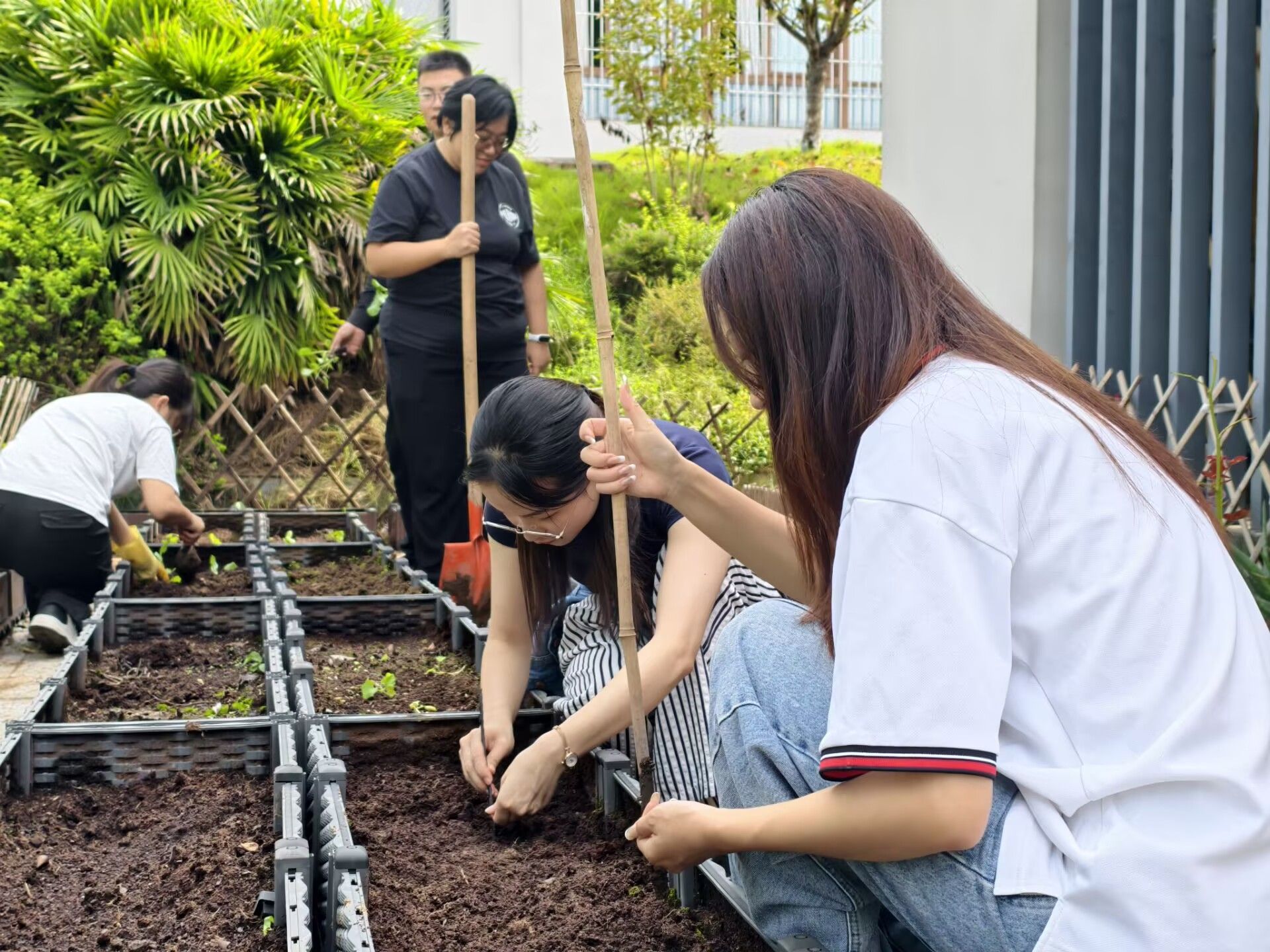 为提升作物成活率、保障劳动实践成效,外国语学院创新采用“育苗先行、移栽跟进”的种植策略,分阶段推进劳动实践基地建设。
