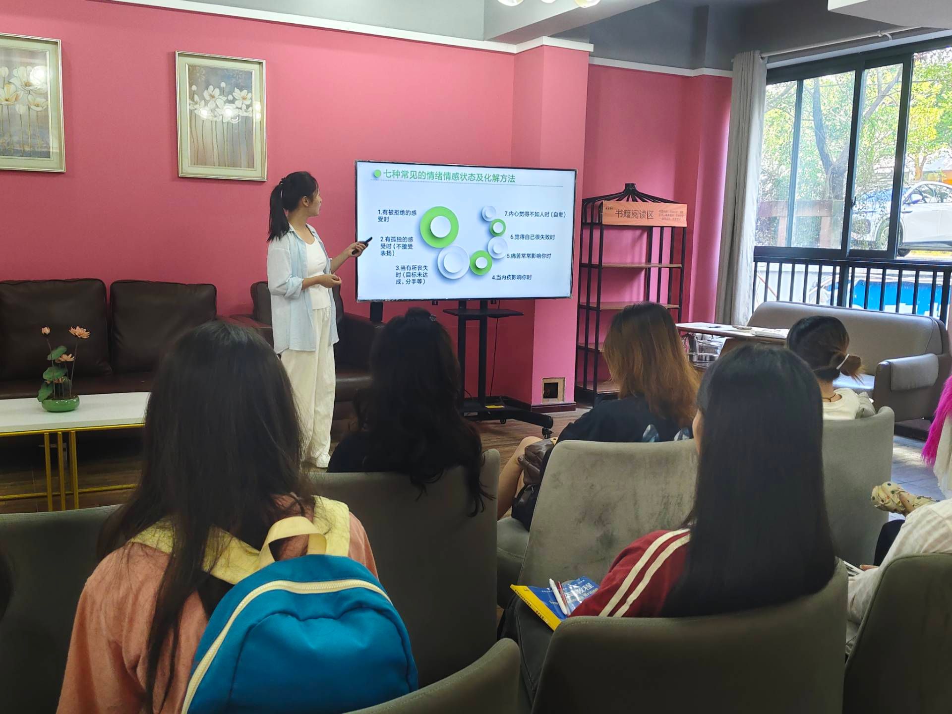 廖春花老师围绕七种常见的情绪情感状态及化解方法作了分享,分别是:有被拒绝的感受时、有孤独的感受时、当有所丧失时、当内疚影响你时、痛苦常常影响你时、觉得自己很失败时、内心觉得不如人时(自卑)。之后廖老师又向同学们分享了四个常用的情绪管理台阶:一是要避免情绪积压,二是要定期清理情绪,三是要适当表达情绪,四是要合理释放情绪。