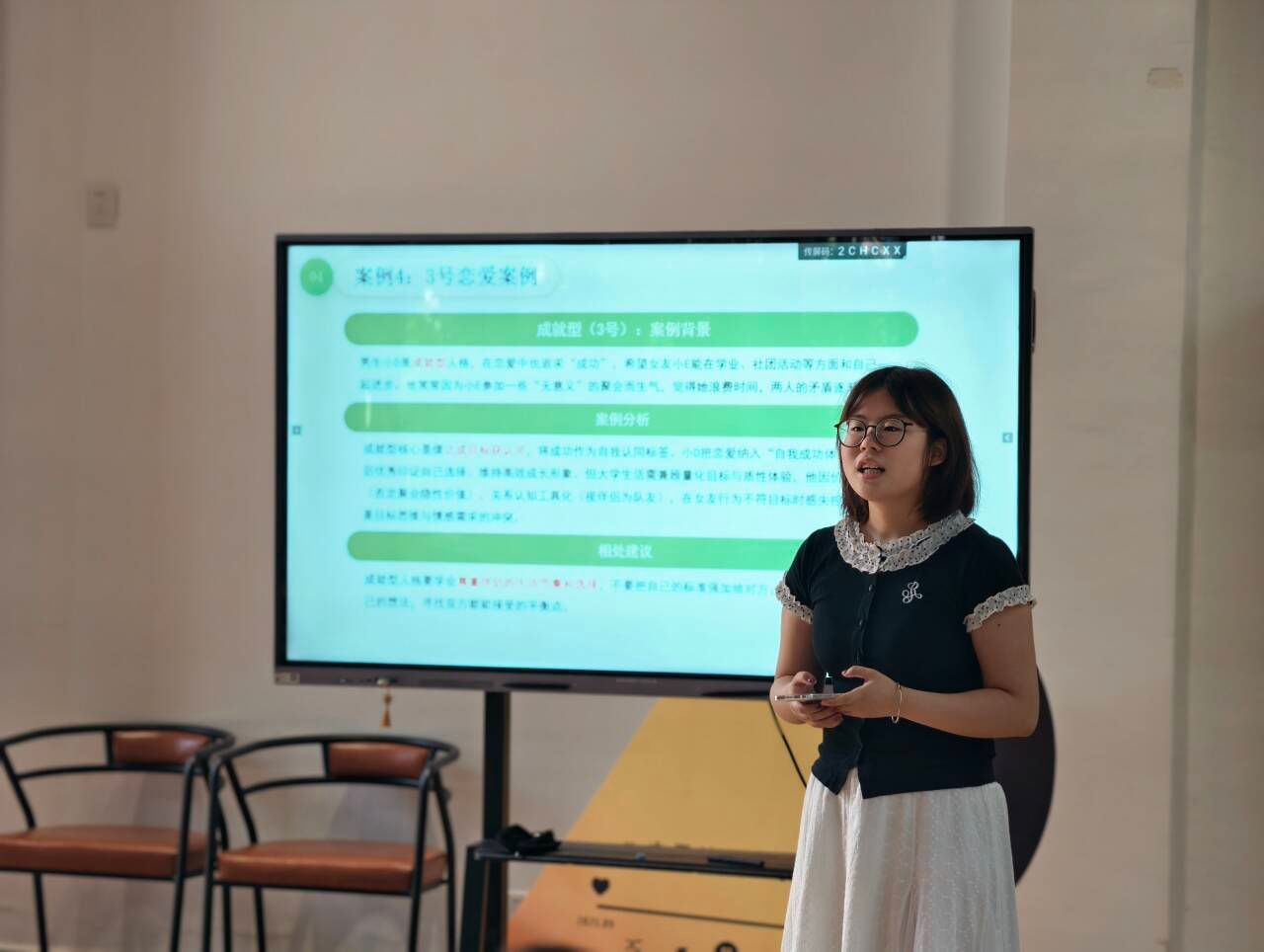 培训会后段,阳果老师以 “完满人格恋爱观” 为主题,结合大学生情感特点与外语学子社交特质展开:强调恋爱需以 “自我完整” 为前提,明确 “尊重边界、理性沟通、共同成长” 原则,教大家识别情感困扰信号,分享支持技巧;随后心社社长阐述心社使命 —— 营造校园心理文化氛围、提升同学心理素质,介绍其秉持温暖守护理念及开展的心理活动,说明宣讲围绕心社使命、工作内容及与心理委员工作联系展开,最后提及心理委员将与心社 “筑梦同行”,共护外院同学心理健康。