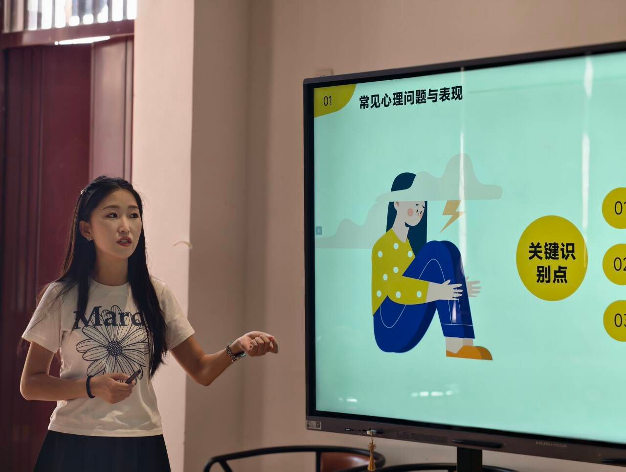 培训会上,李然老师从四方面展开讲解:一是 “常见心理问题与表现”,列举大学生抑郁倾向、焦虑障碍等问题,并说明其在行为、情绪、思维上的具体表现;二是 “三察三问” 法,“三察” 为观察同学状态、言语、环境,“三问” 是询问性格、近况、心情;三是 “分级响应机制”,在面对同学们有轻微、中度心理问题时,心理委员需及时沟通、关心陪伴,同时指出心理委员要准确判断、及时上报及定期参与心理督导减压;四是 “重要注意事项”,包括沟通时的态度方式、尊重同学隐私感受,以及自身心理调适的重要性。