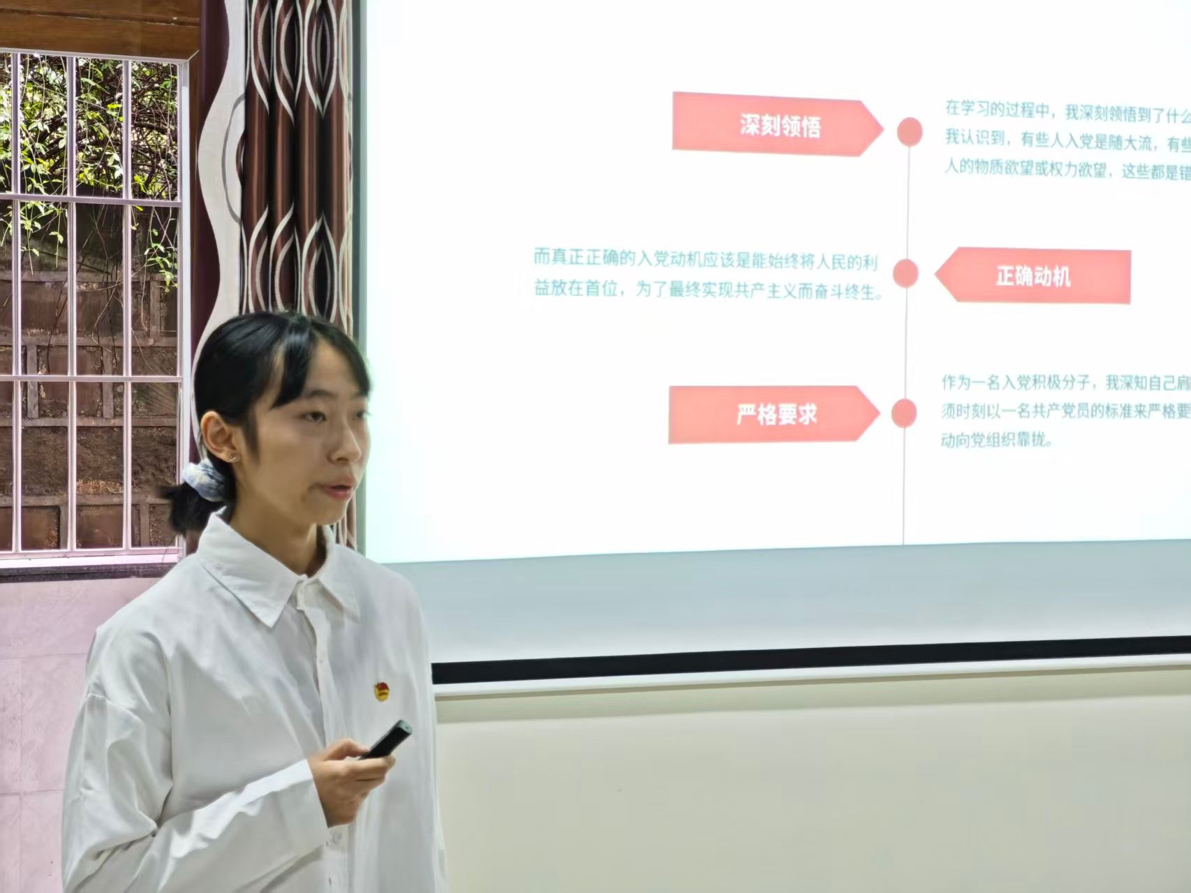 最后,党总支副书记马喆同志为本次入党积极分子答辩作总结讲话。他首先肯定了参与答辩的积极分子的整体表现,明确党组织对入党积极分子标准严格,希望大家进一步厘清入党动机、端正入党态度。马喆同志强调,入党动机是检验个人是否真正符合党员条件的关键标尺,唯有树立为共产主义事业奋斗终身的坚定信念,才能在未来征程中经受住各类考验。同时,他对入党积极分子提出三点要求:一是持续提升政治觉悟,认真研习党的理论知识,密切关注时事政治,始终同党中央保持高度一致;二是全力认真备考,坚守诚信考试准则,以扎实的知识储备和优良的道德品质迎接党组织的考察;三是主动参与党支部活动,在实践中锤炼自我、提升能力,增强组织观念与集体荣誉感,以实际行动向党组织靠拢。
