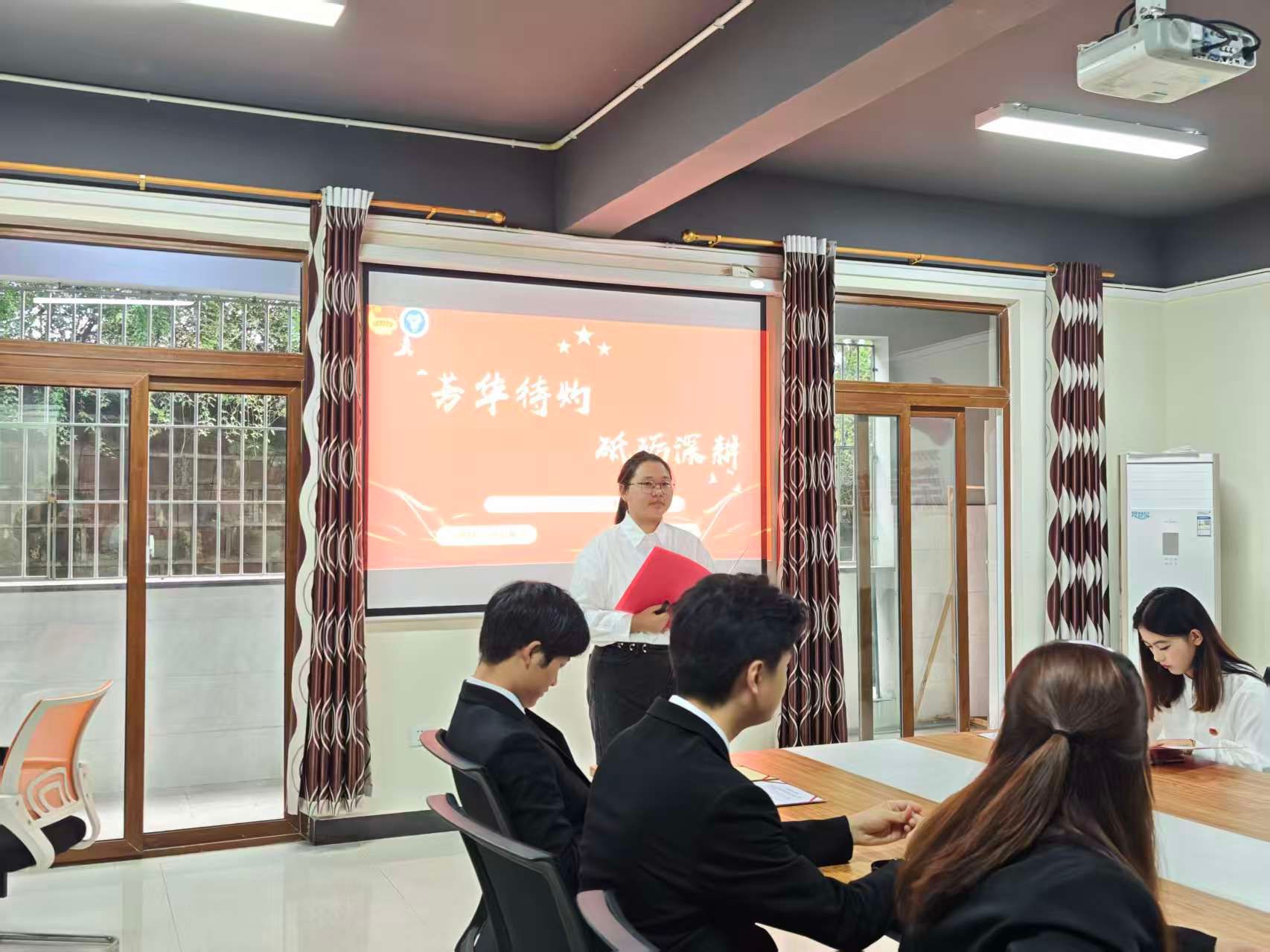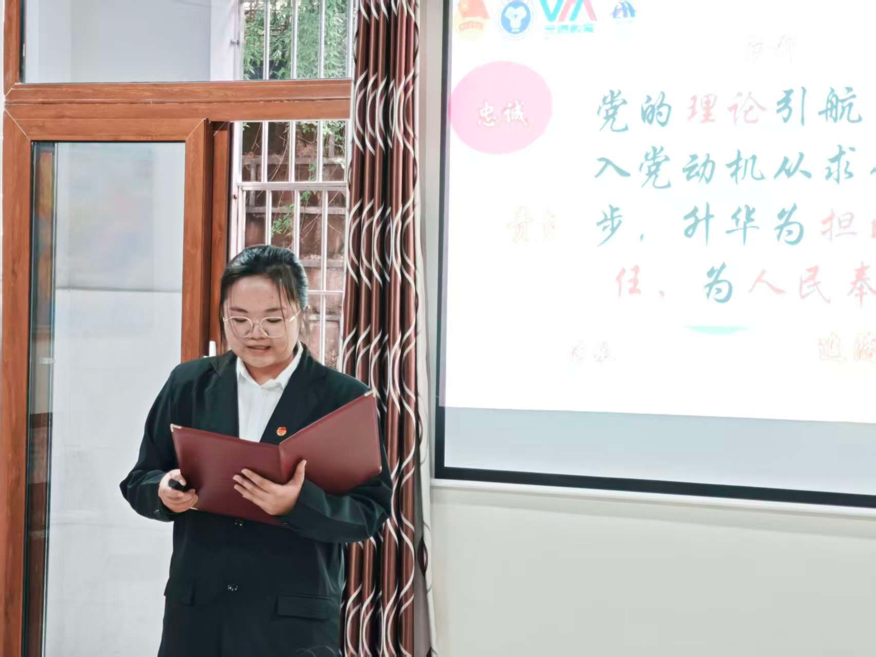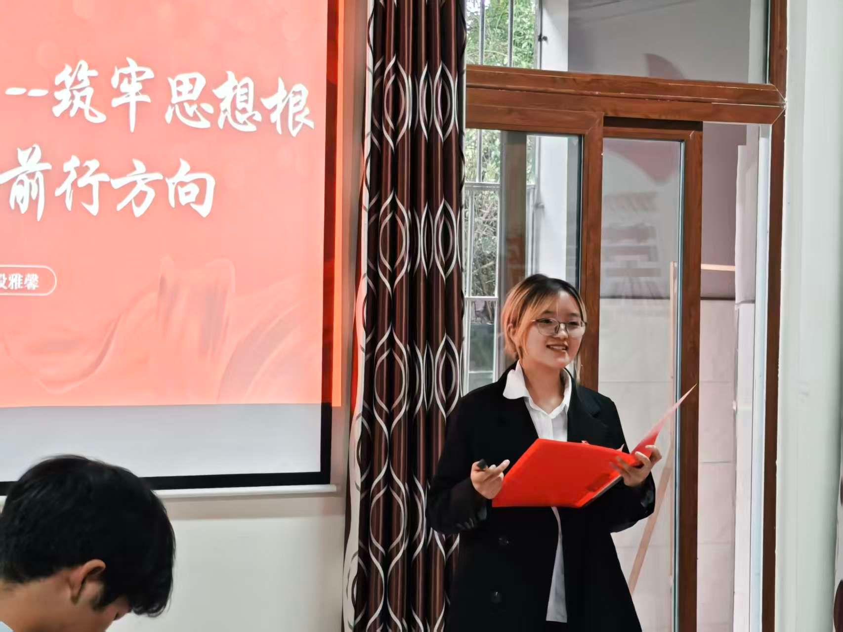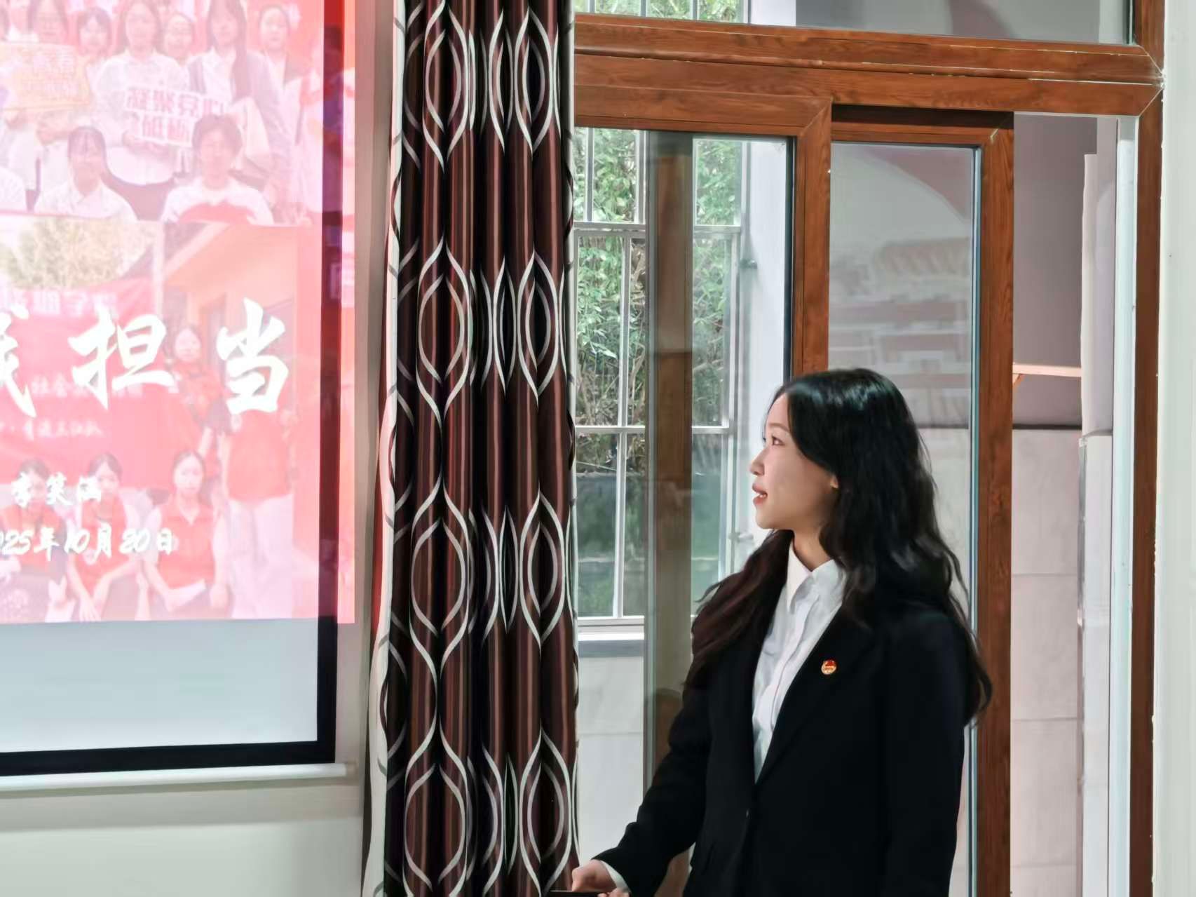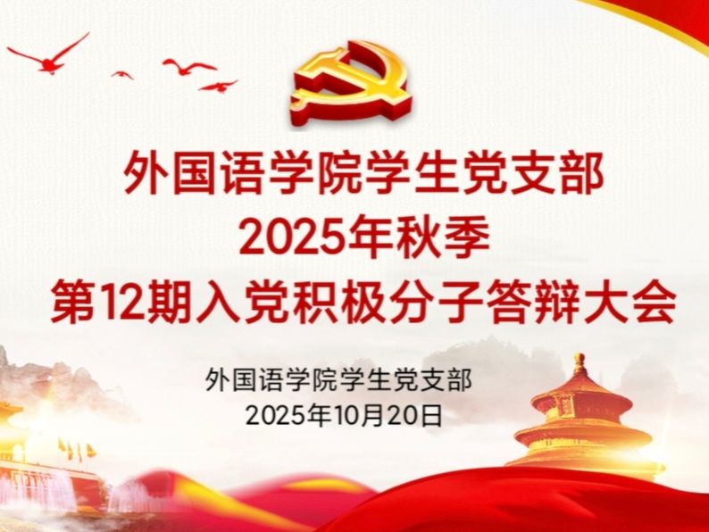 近日,外国语学院学生党支部 “铸魂强信念,笃行砺成长”2025 年秋季入党积极分子答辩大会于2025年10月20日在荷悦会议室顺利召开。本次大会以严把党员发展 “入口关”、筑牢入党积极分子思想根基为目标,通过答辩考察入党积极分子的理想信念、理论素养、实践表现及入党动机,为党组织选拔储备优秀后备力量,进一步强化支部党员队伍建设。