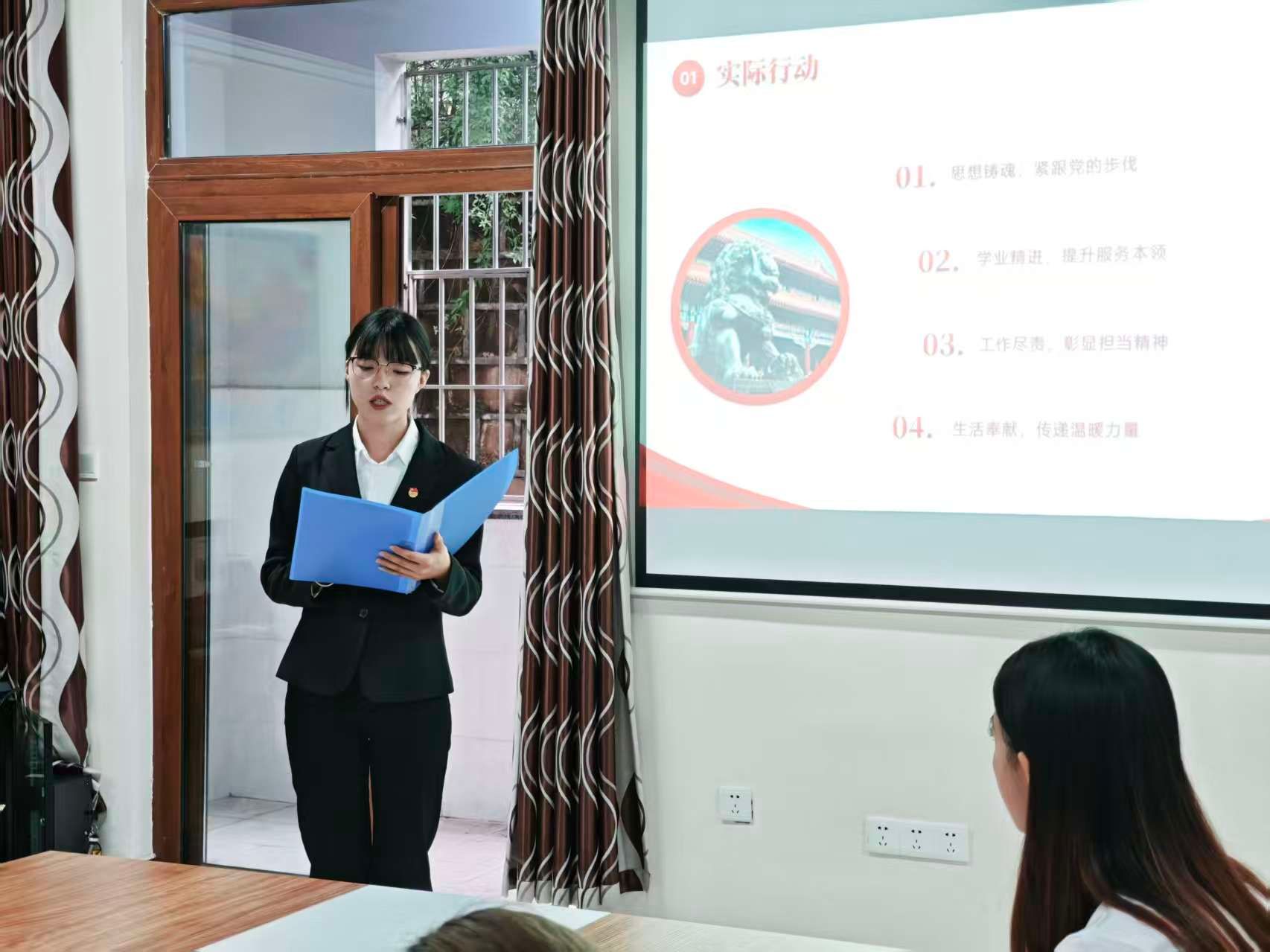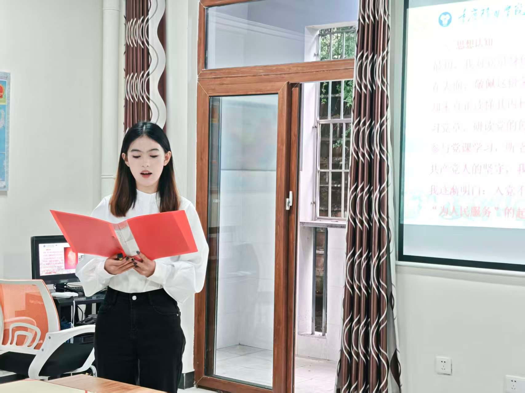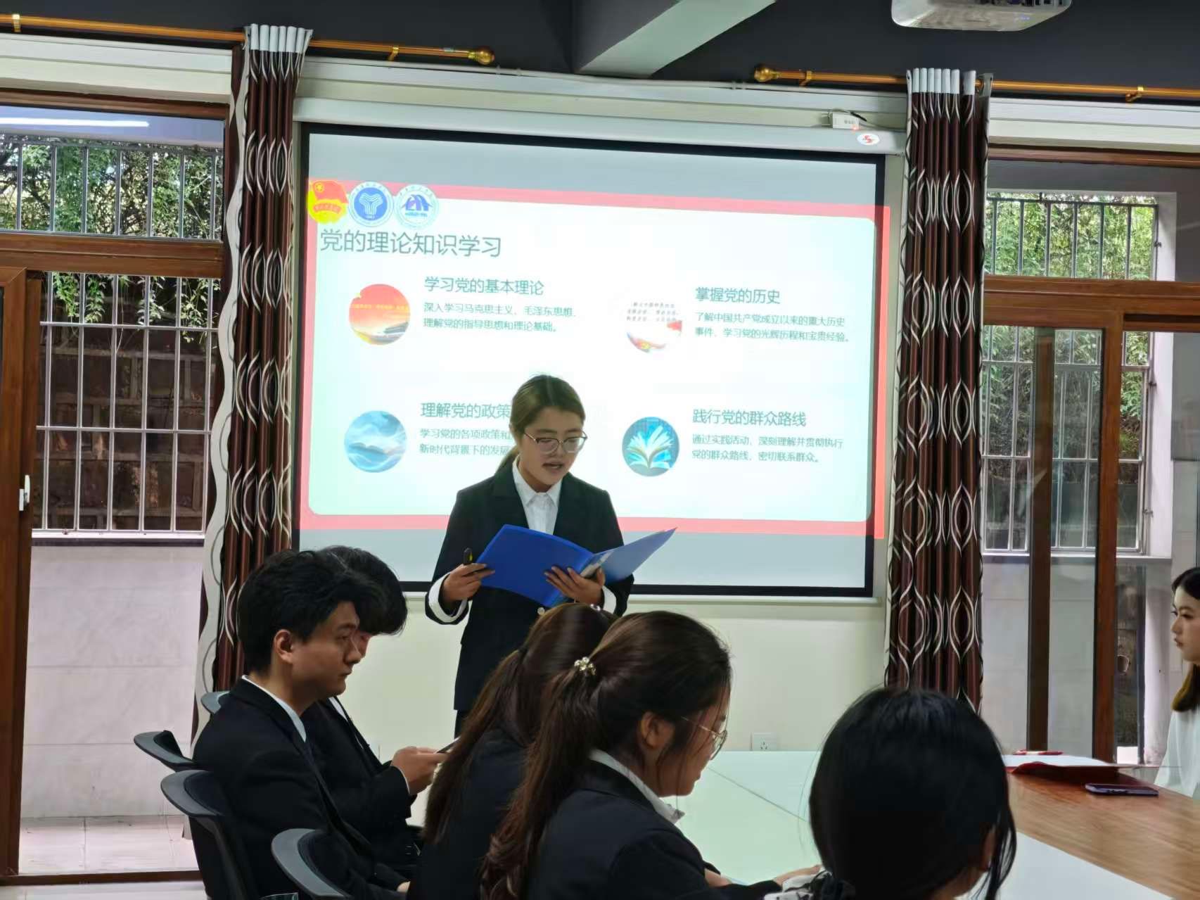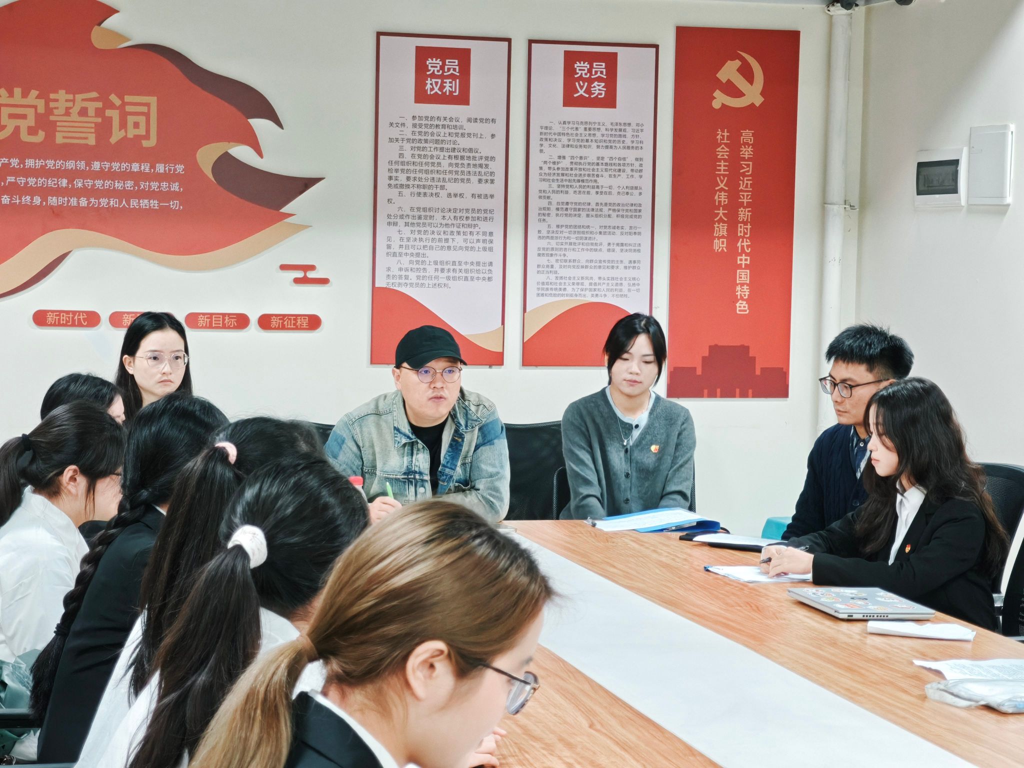 近日,外国语学院学生党支部 “铸魂强信念,笃行砺成长”2025 年秋季入党积极分子答辩大会于2025年10月20日在荷悦会议室顺利召开。本次大会以严把党员发展 “入口关”、筑牢入党积极分子思想根基为目标,通过答辩考察入党积极分子的理想信念、理论素养、实践表现及入党动机,为党组织选拔储备优秀后备力量,进一步强化支部党员队伍建设。