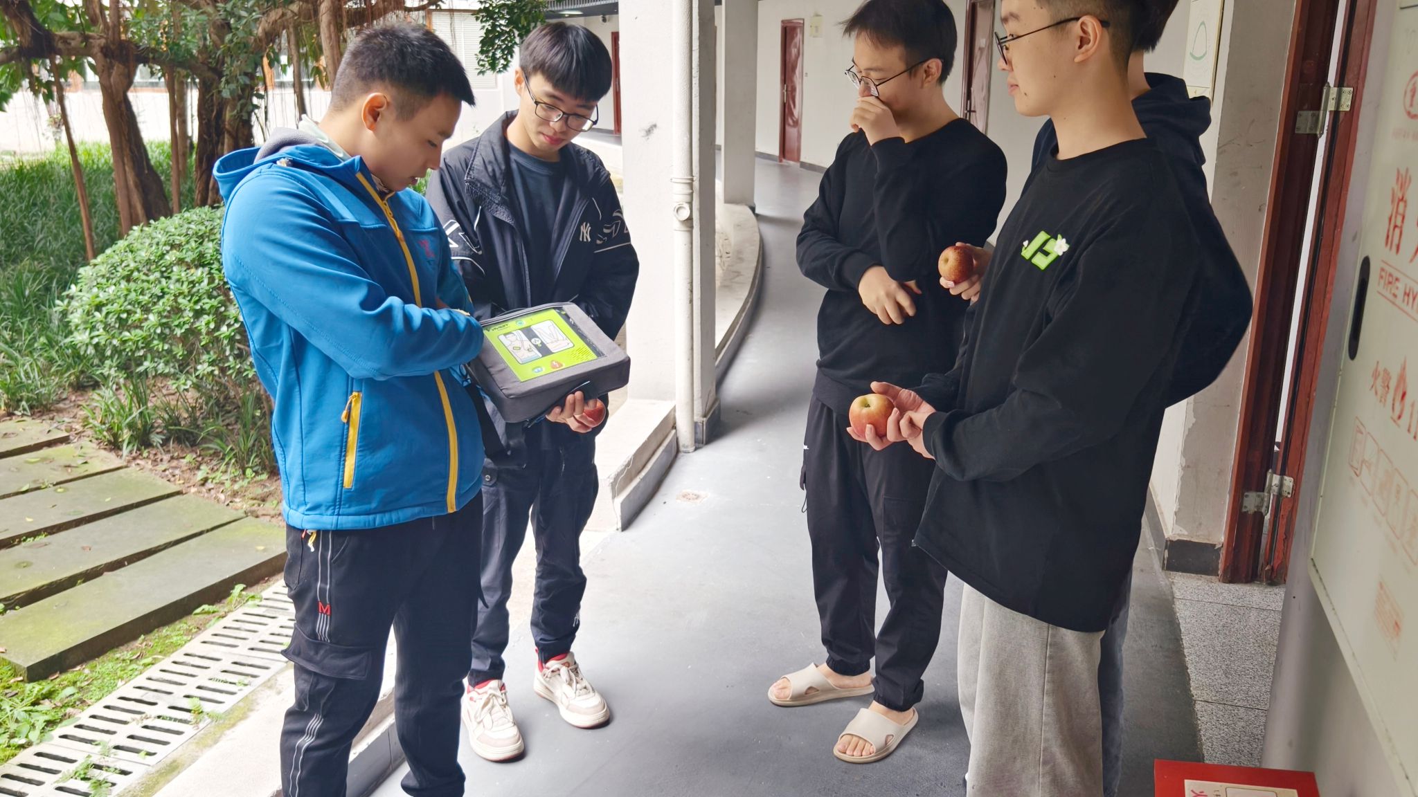 在竹逸书院的交流现场,田威异科导师以轻松亲切的口吻开启了话题,结合近期网络关注到的急救案例,自然地引入AED知识的分享。他没有采用严肃的授课形式,而是像朋友聊天般,生动讲解了AED在突发心脏骤停急救中的重要性,以及黄金抢救4-6分钟的关键意义。为了让大家更容易理解,他还简单演示了AED的基本操作流程,重点强调了设备的使用核心要点与安全注意事项,同时耐心解答同学们提出的各类疑问,现场氛围轻松愉悦,大家在交流中逐渐掌握了基础的AED知识。随后在天渠书院的分享中,田老师特别告知了同学们AED设备具体存放位置与取用方式,方便大家在紧急情况下能及时找到并使用。