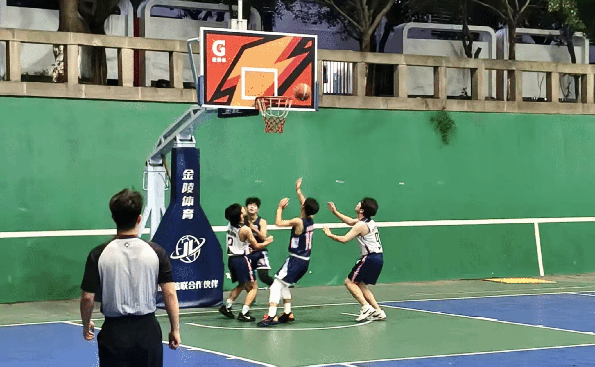 当比赛正式拉开帷幕,整个球场的氛围瞬间升温。外院代表队身着整齐战袍,队员们神情专注、眼神坚定,急促交错的脚步声中,每一次触球都凝聚着全队的希望与努力。面对对手的快速推进,外院球员迅速回防、默契配合,一人前压干扰、一人补位协防,双人夹击的动作干净利落、衔接无缝。篮下的争夺更是激烈万分,队员们臂膀相抵、呼吸急促,鞋底摩擦地面的“吱吱”声在体育馆内回荡,每一次严密防守都是一场无声却激烈的较量,每一次成功拦截都凝聚着全队的信任与协作。尽管比分曾一度落后,但队员们始终未曾退缩,一次次奋力冲向对方篮下、积极寻找进攻机会,用实际行动诠释着外院学子顽强拼搏、永不言弃的精神。观众席上此起彼伏的加油声、喝彩声与场上的紧张氛围相融,共同勾勒出一幅青春激昂、热血澎湃的动人画卷。每一次精准传球、每一次默契配合,都彰显着团队的力量,也让在场的每一个人深刻感受到体育运动所蕴含的激情与魅力。