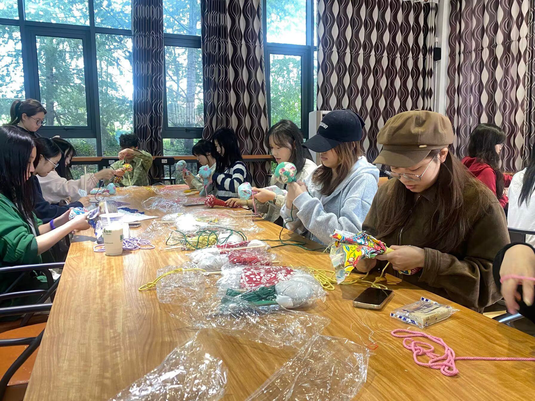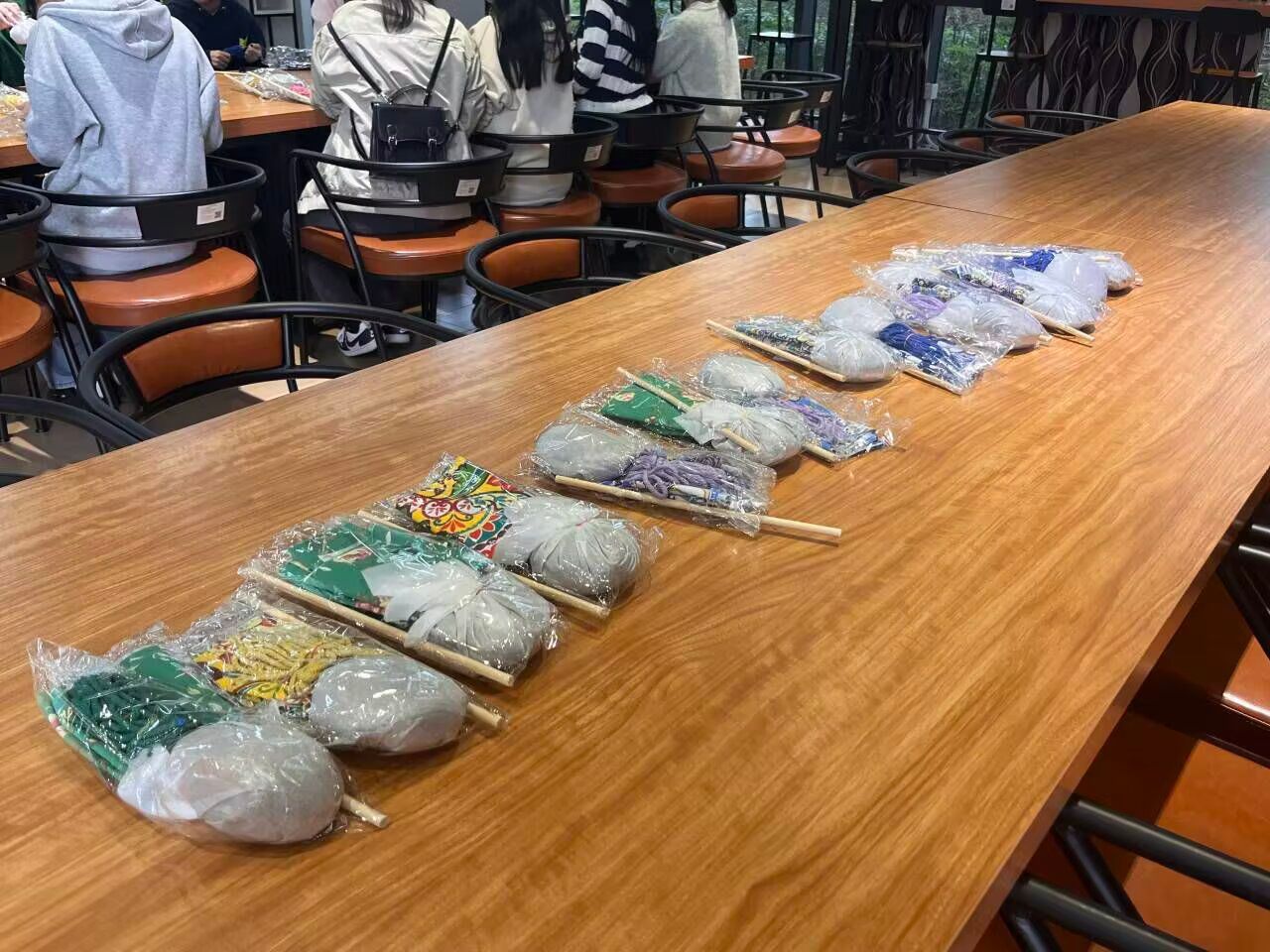 活动现场,布料的摩挲声、工具的碰撞声与团员们的交流声交织——有的小组分工协作,一人负责均匀填充艾绒,一人专注调整布料造型;有的同学为艾草锤搭配了特色挂绳,方便日常携带;还有的团员在锤身贴上了手绘贴纸,让每一个艾草锤都成为独一无二的“文化手作”。当一个个饱满的艾草锤完成收尾,不少同学拿起自己的作品轻敲肩颈,在艾草的清香中直观感受到传统养生工具的实用价值。