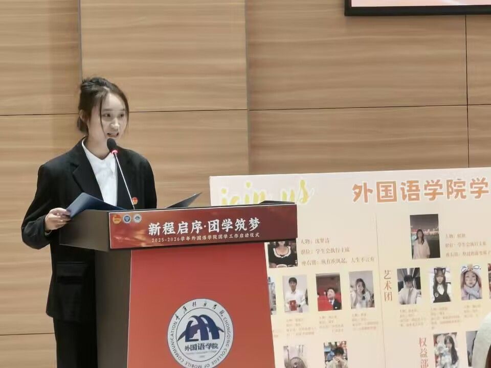 秋意渐浓,使命在肩。2025年10月23日,外国语学院隆重举行以“新程启序,团学助力”为主题的2025-2026学年团学工作启动仪式。整场活动以“传承·启航·担当”为主线,通过十大环节层层推进,展现团学组织的精神脉络与青春力量。