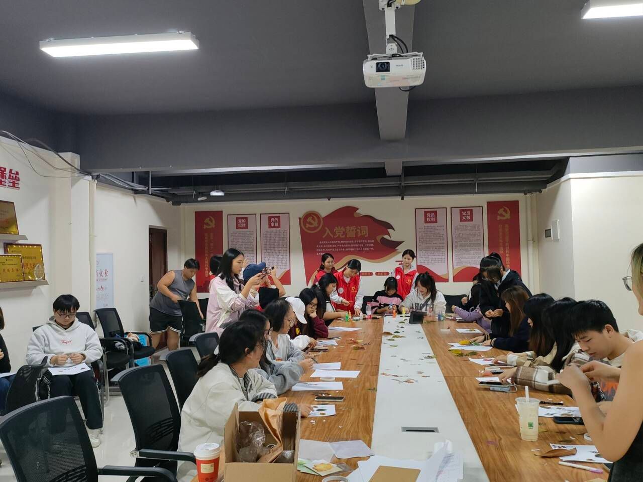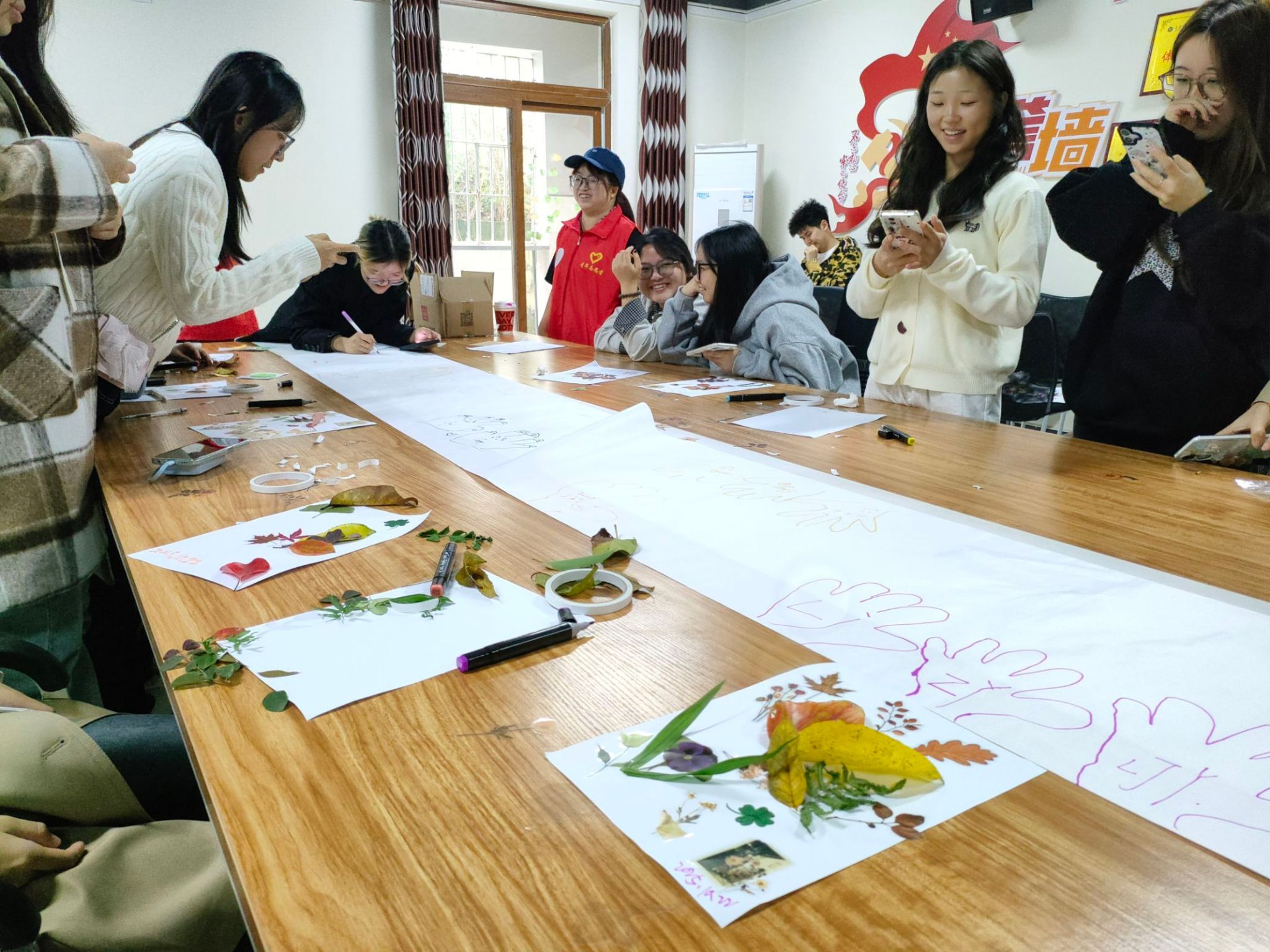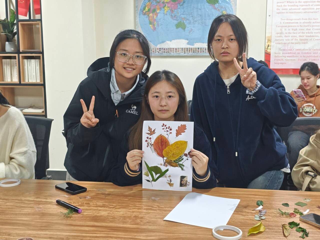 为帮助同学们有效释放压力、学会关注与表达自身情绪,同时搭建同学间情感沟通的桥梁,打破社交壁垒,特与2024级英语3班共同策划本次“解压拾光,情绪同行”班级心理活动。本次活动于2025年10月24日下午,在荷悦书院112多功能室开展,以叶语心画植物贴画创作、女巫的情绪毒药互动环节、情绪手掌集体创作为核心环节,通过趣味互动与协作体验,为大家创造一个轻松、安全的情绪释放与交流空间,助力营造积极、温暖的班级氛围,